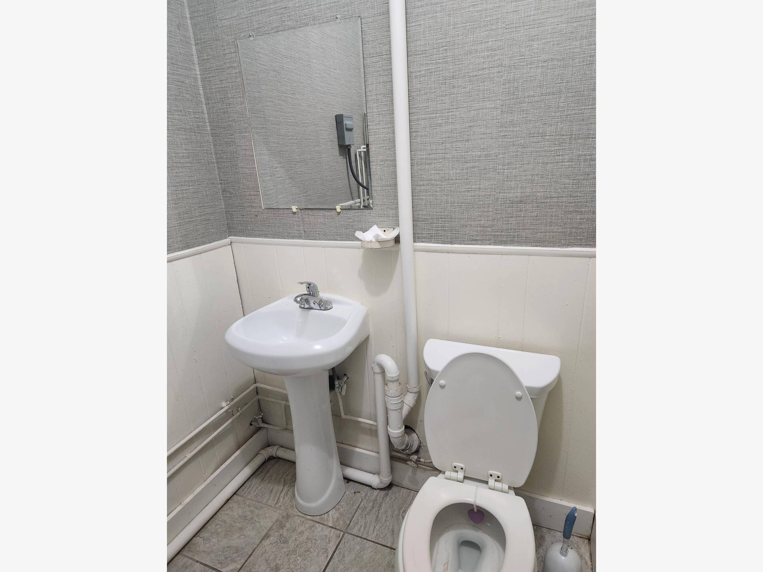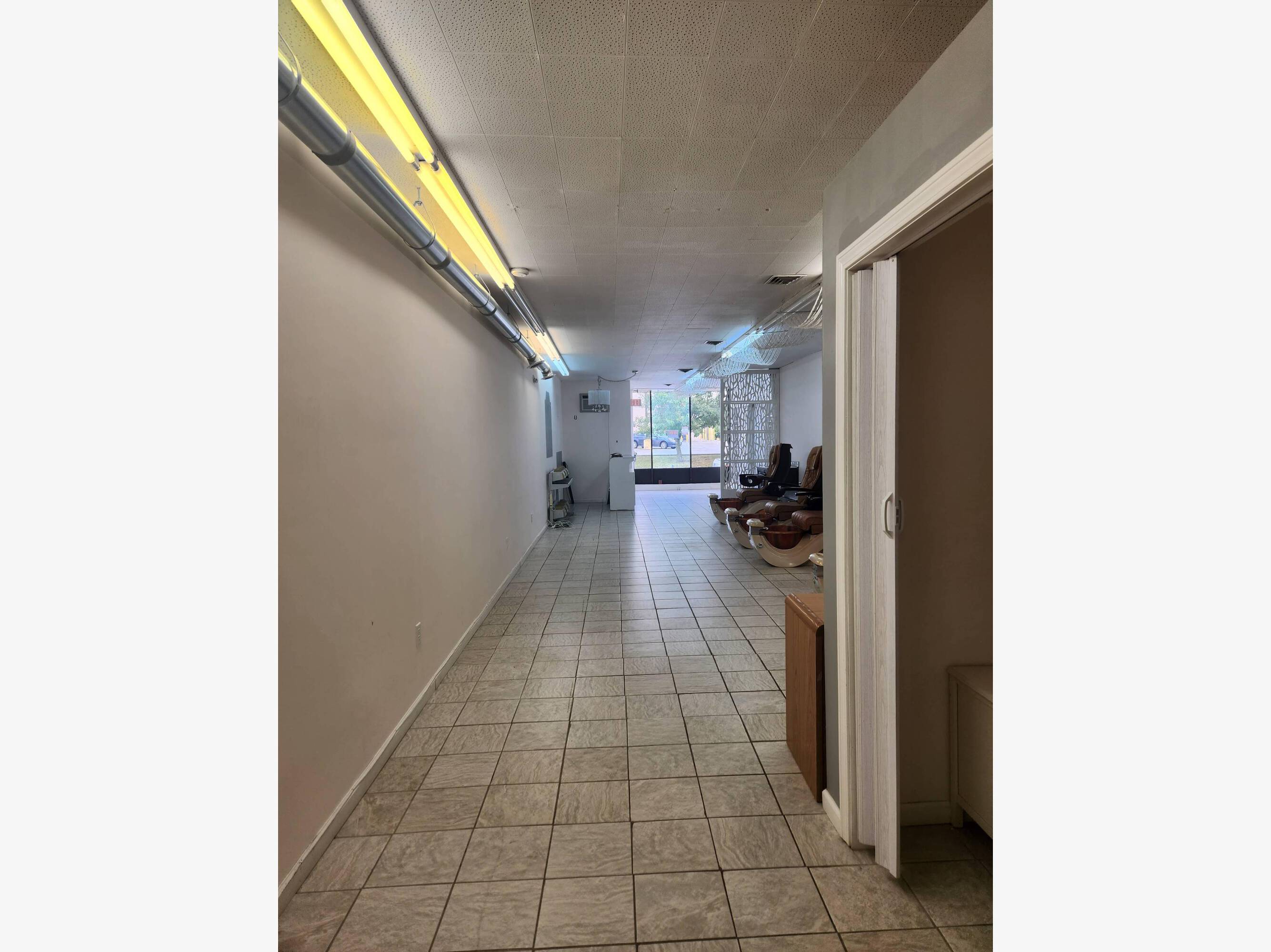 This commercial space is available for rent on Main Street in Torrington, Connecticut, benefiting from high foot traffic. The unit features a back room suitable for storage, two entrances, and a half bathroom for employees and customers. A new heating system has been installed. Previously used as a nail salon, the space is suitable for various retail or office uses. The property includes a shared parking lot and is located next to a laundromat, Latina Market, and a local Walgreens. The location is described as excellent in an up-and-coming area, ideal for business owners. Requirements include two months' security deposit, passing a background and credit check, proof of funds, and previous landlord verification.