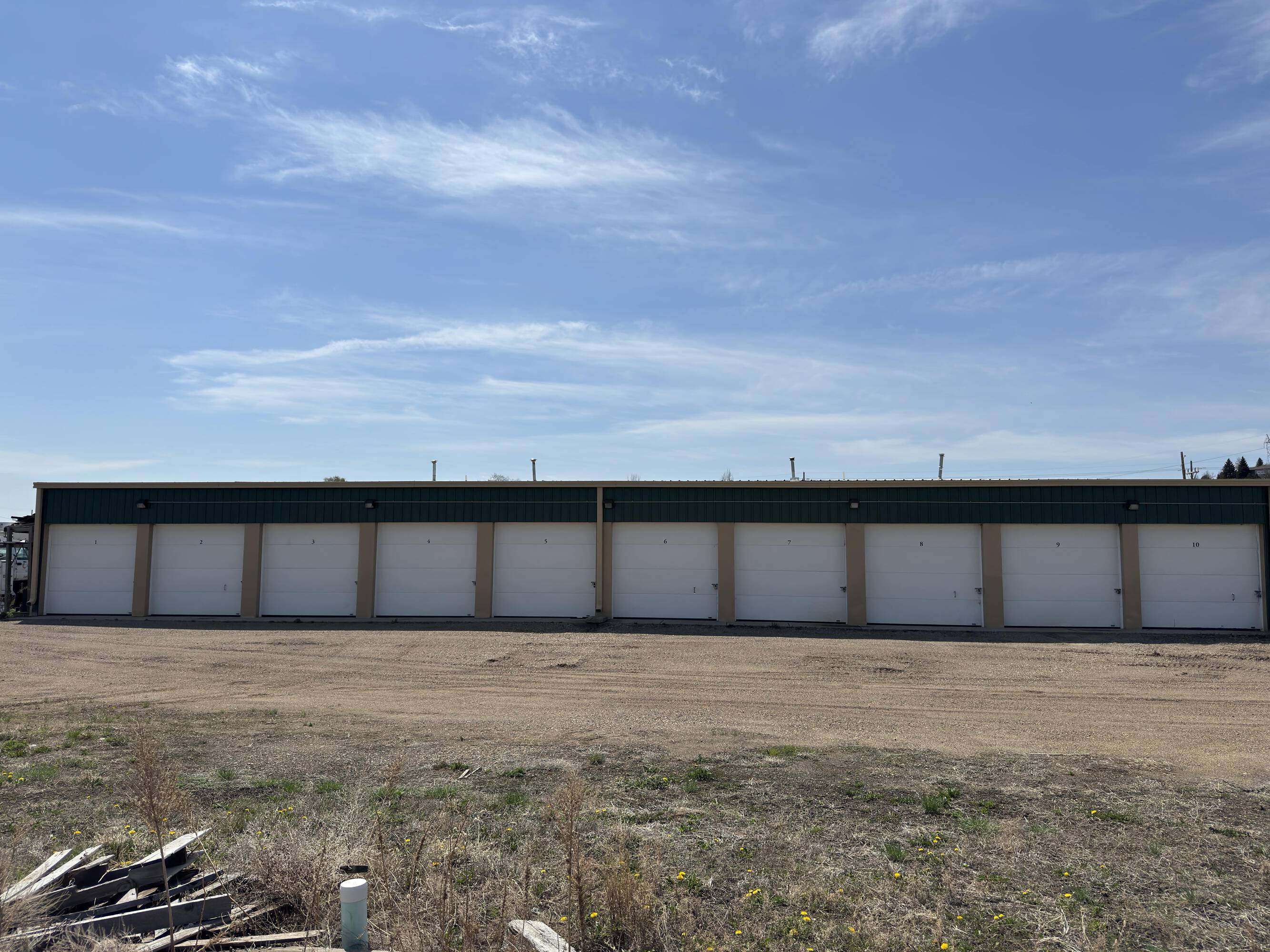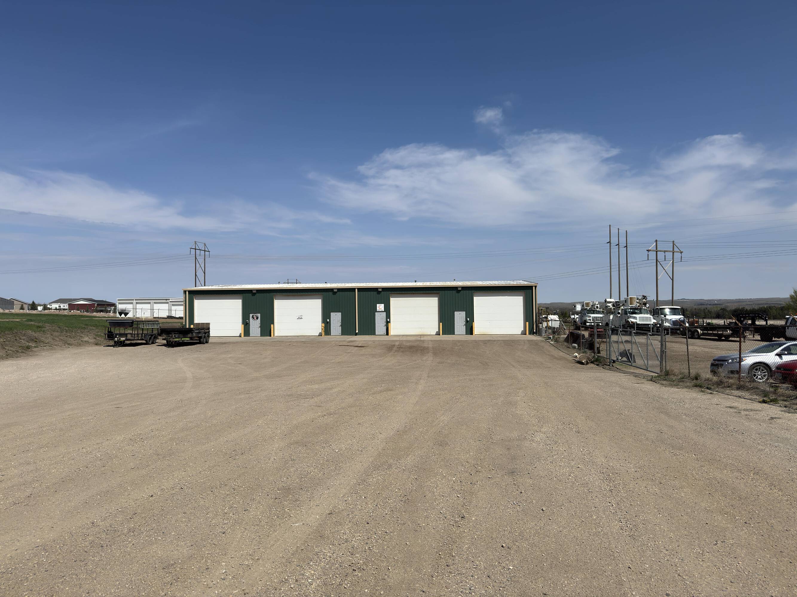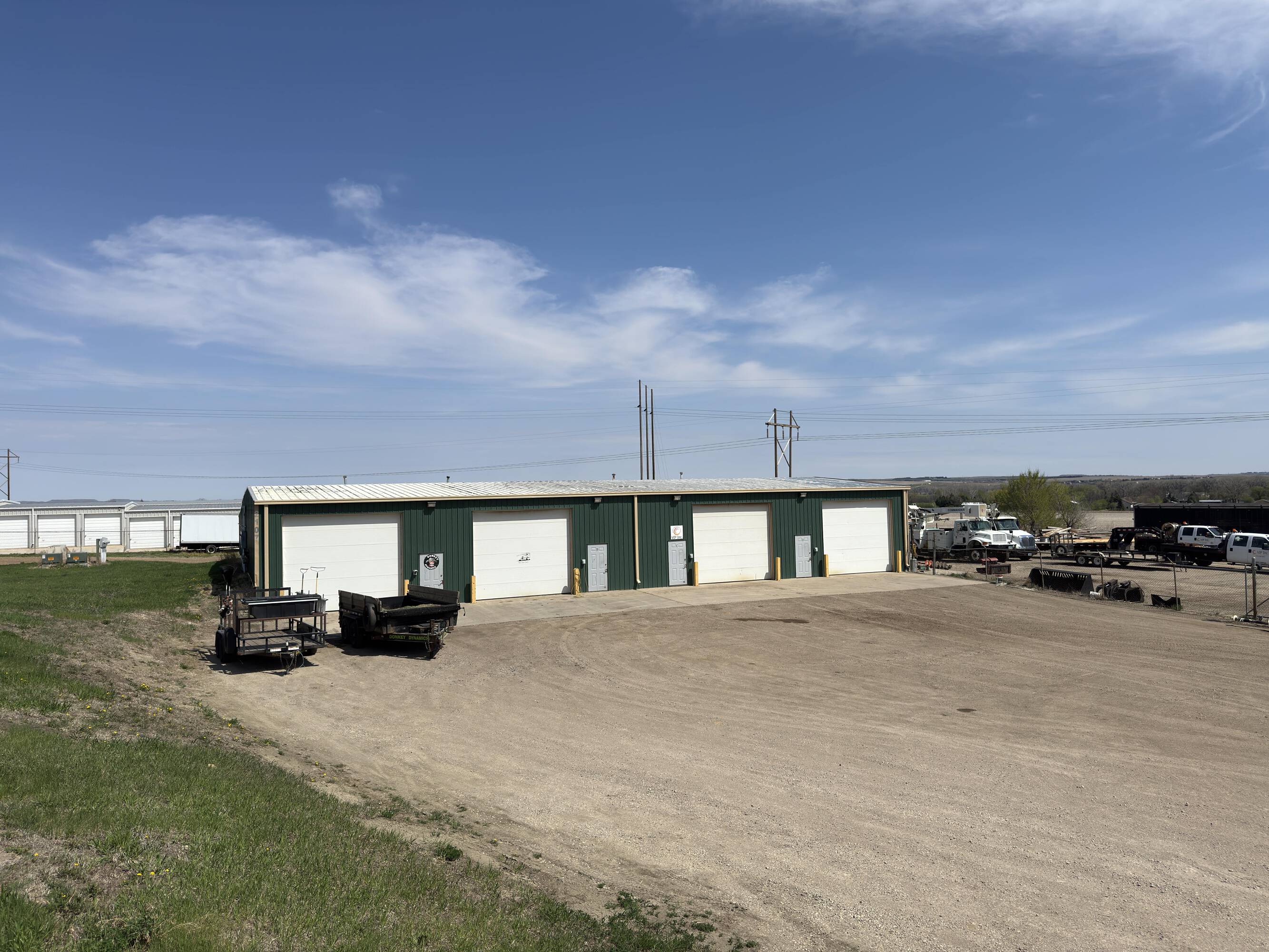 This industrial property, located just north of Mandan, includes heated shops and cold storage units. The property features four heated shops, each measuring 1,250 square feet, and ten cold storage units, each offering 300 square feet of space. Additionally, there is a fenced outside storage area. The property has the potential for additional shops or storage space, subject to county approval. The current annual income is $57,150. The property size is 176418 square feet. Intended uses include self-storage facilities, industrial purposes, and warehouse operations.