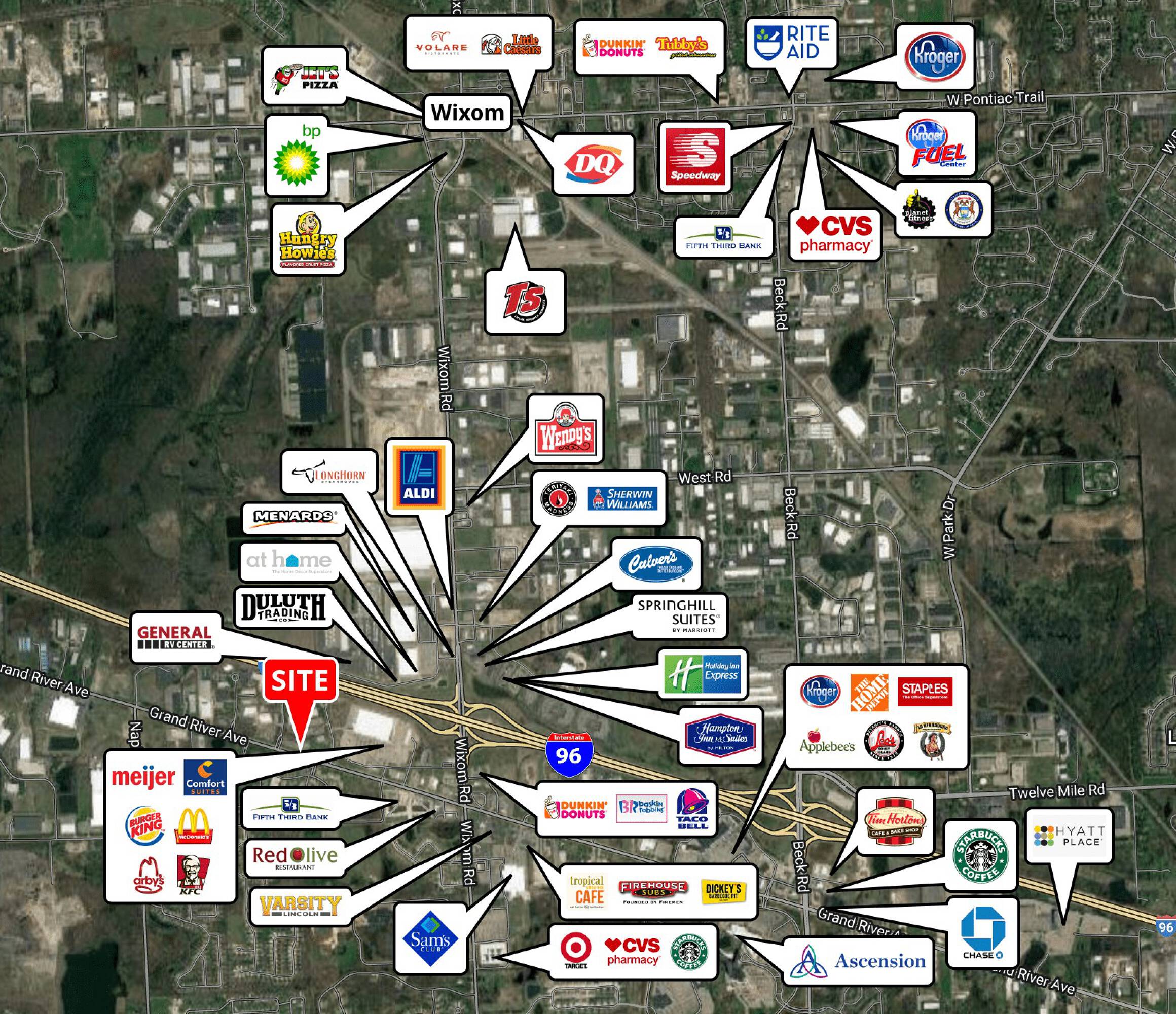 This property features: High visibility with **17,759 passing motorists daily**.; Quick access to I‑96 on/off ramps.; Medical or general office uses allowed.