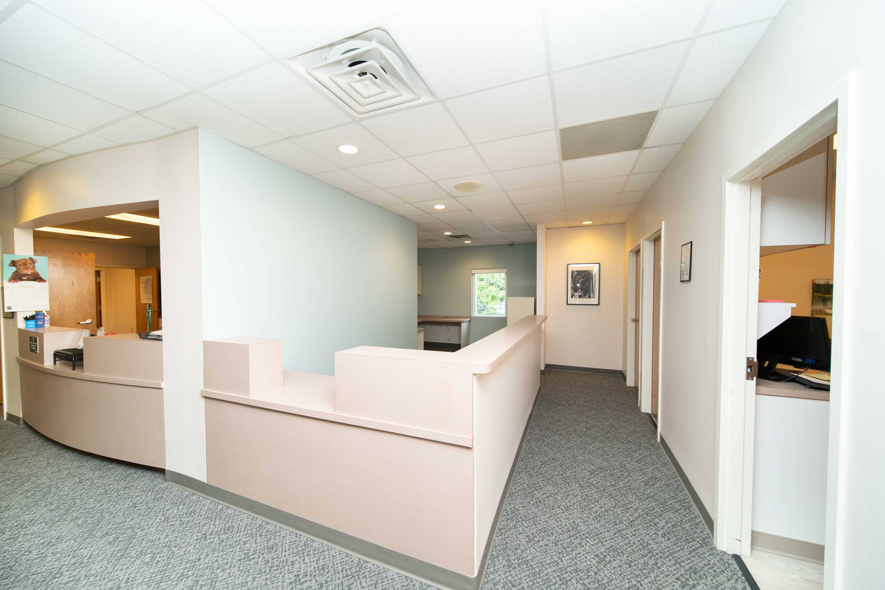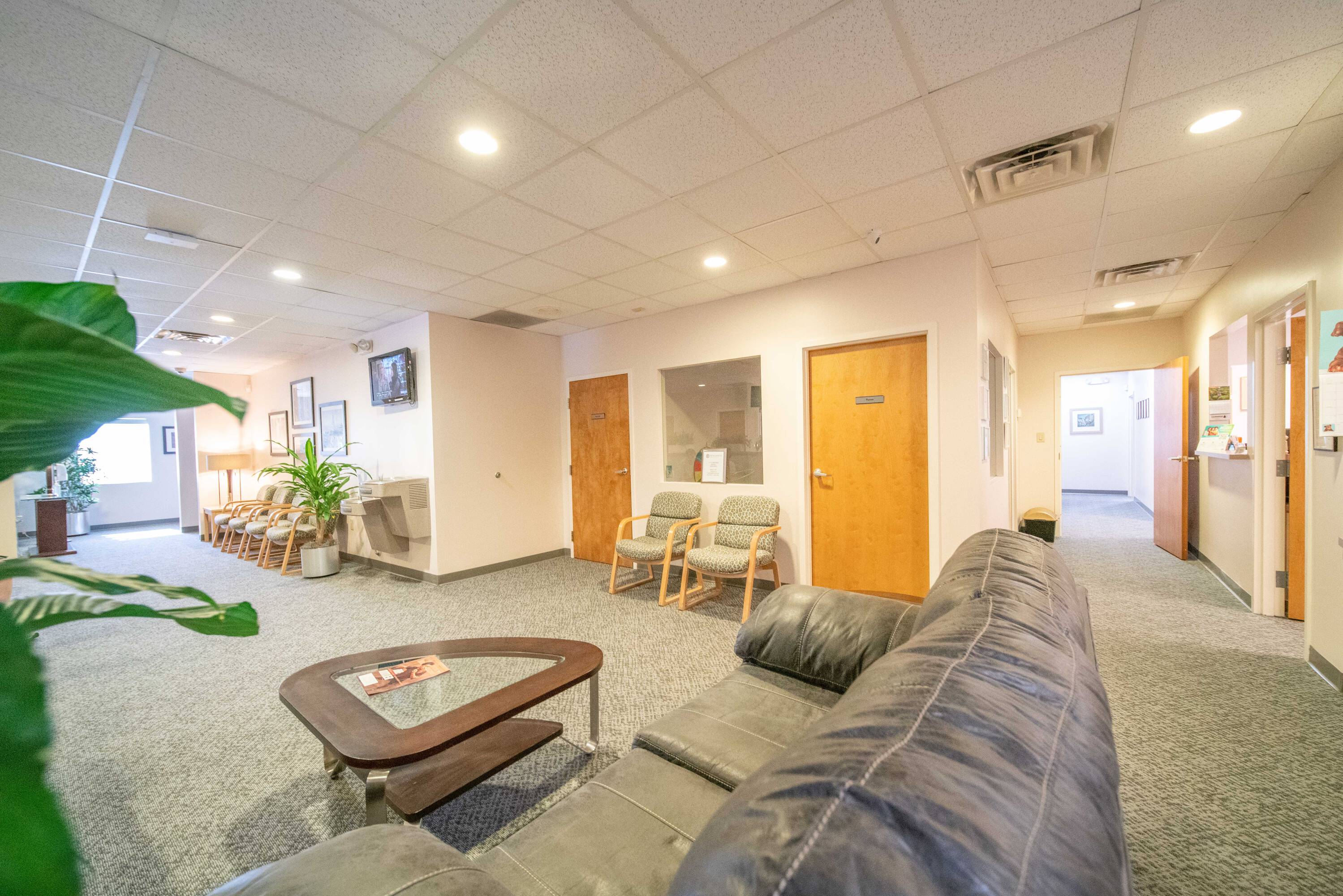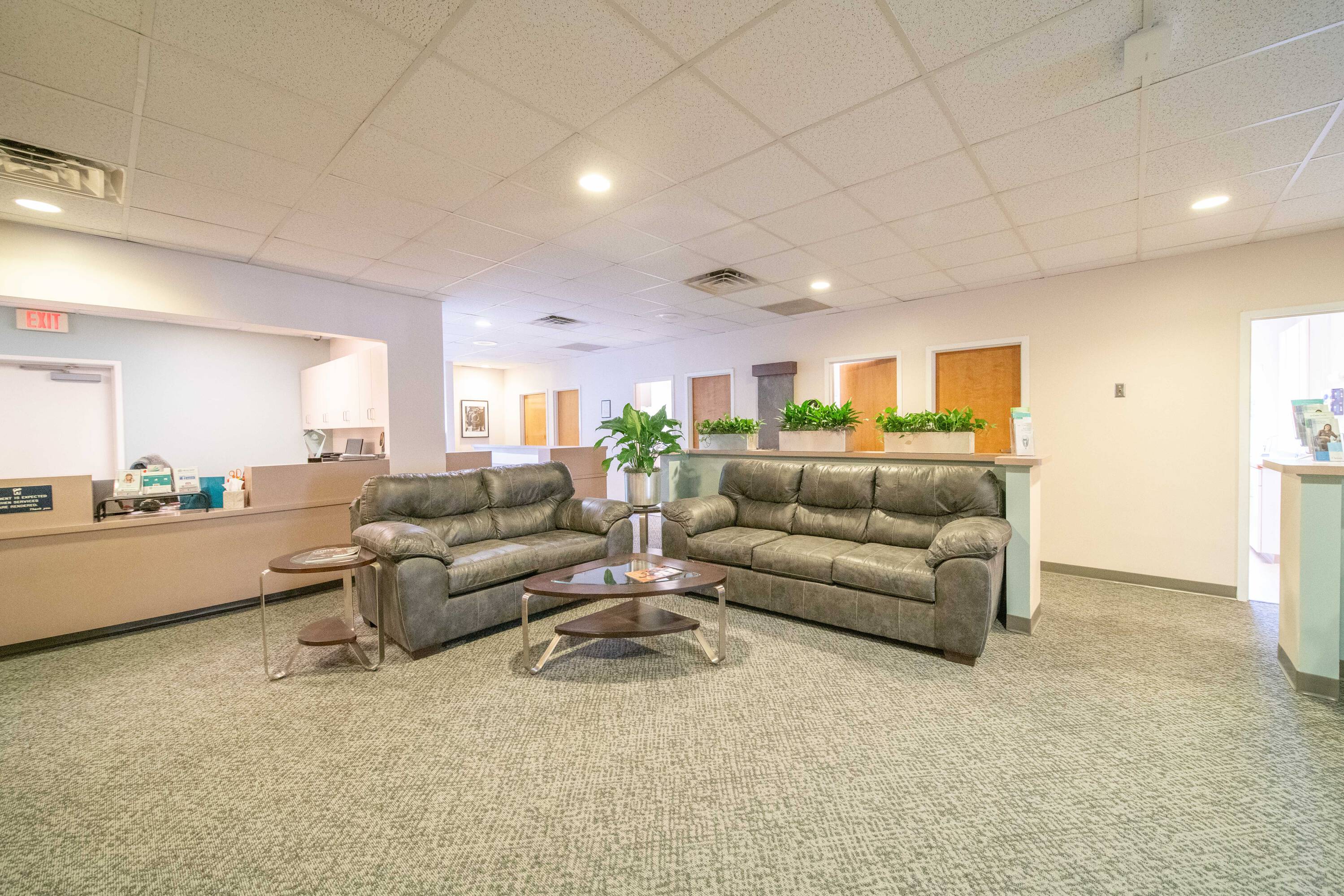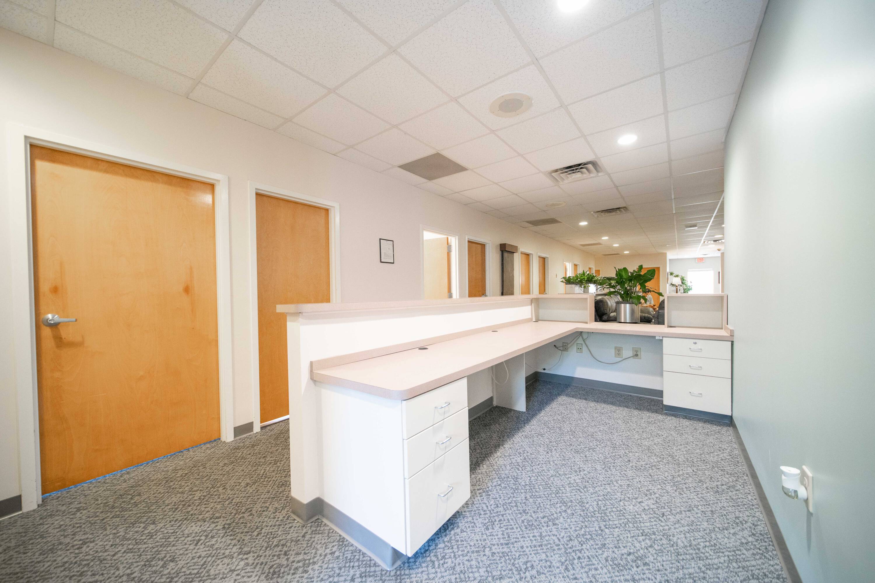 Well-equipped medical office suite with shared waiting area.