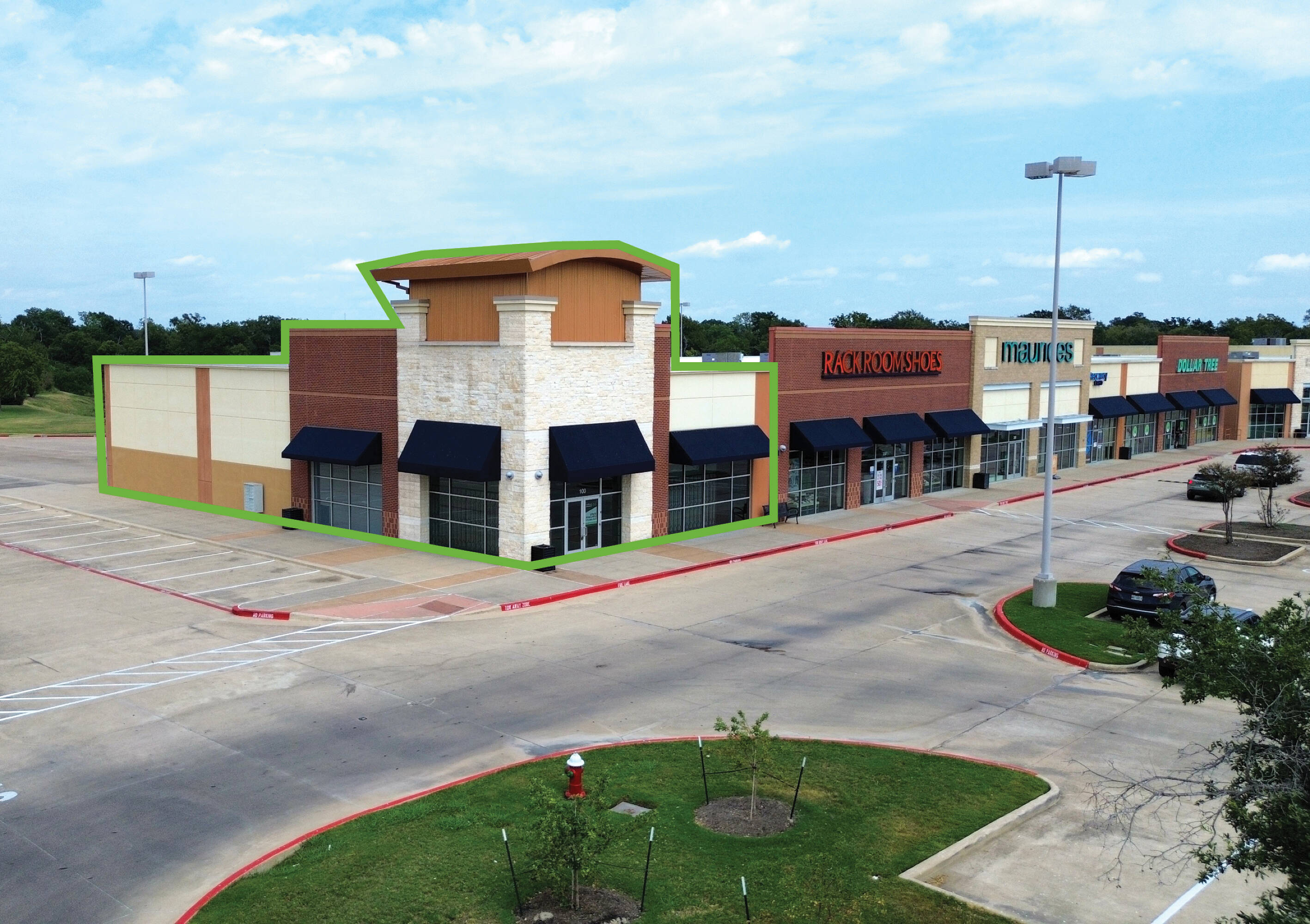 Commercial space available for lease in Bryan, Texas.