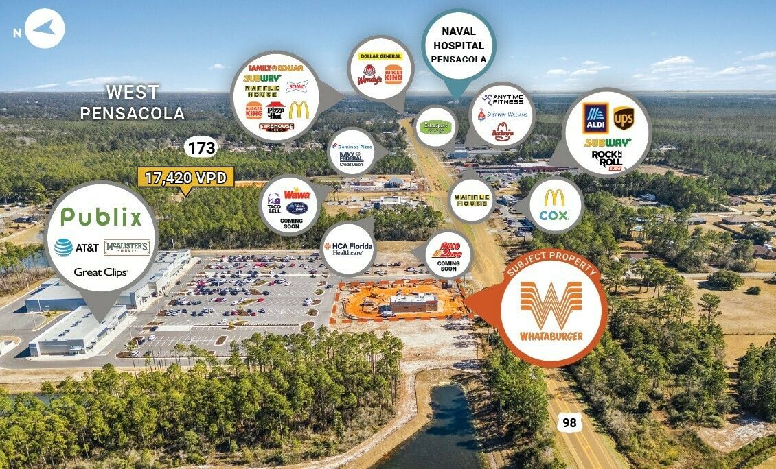 New construction Whataburger ground lease near Naval Air Station Pensacola.