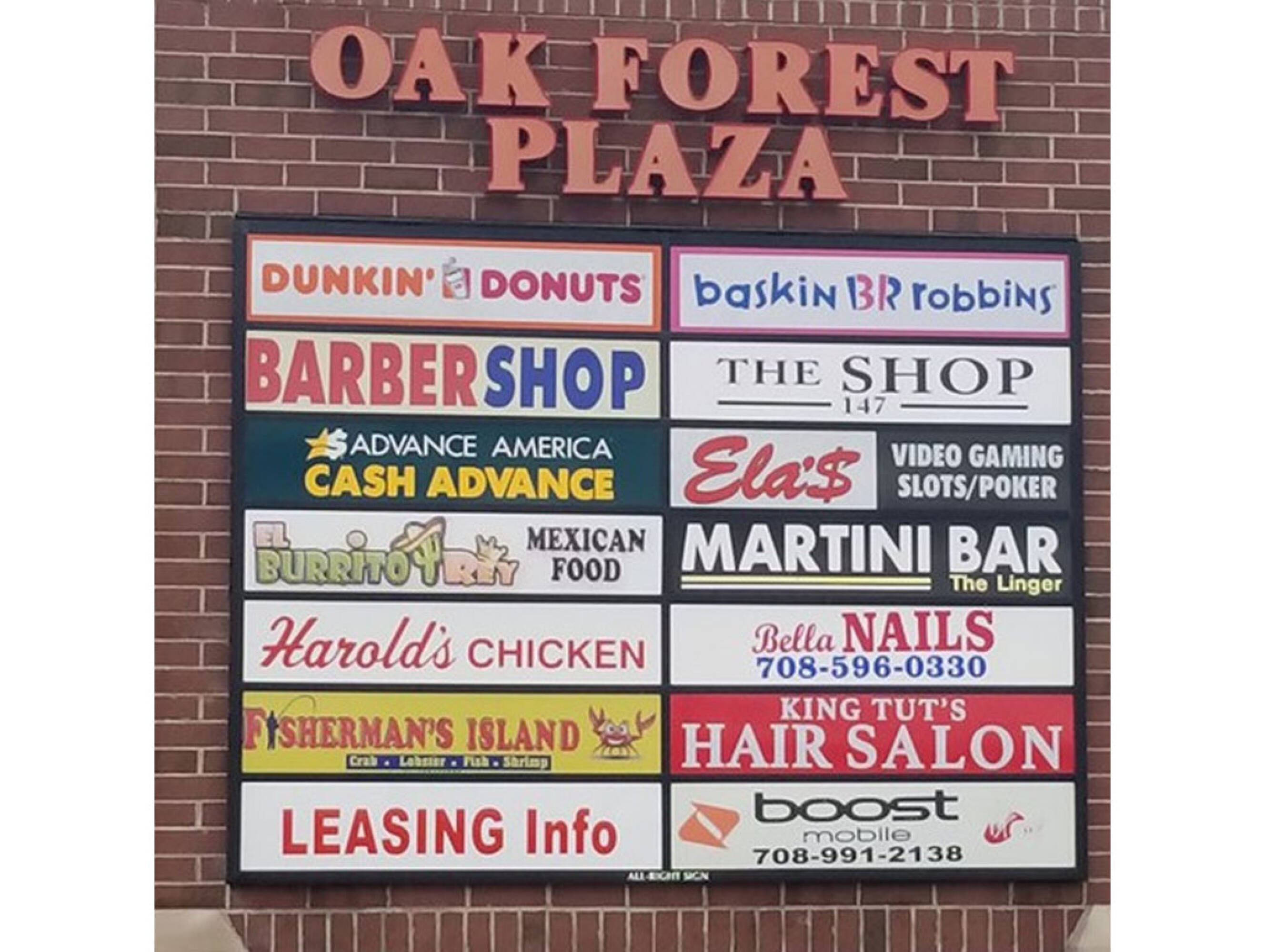 Retail spaces available in high-traffic Oak Forest shopping center.