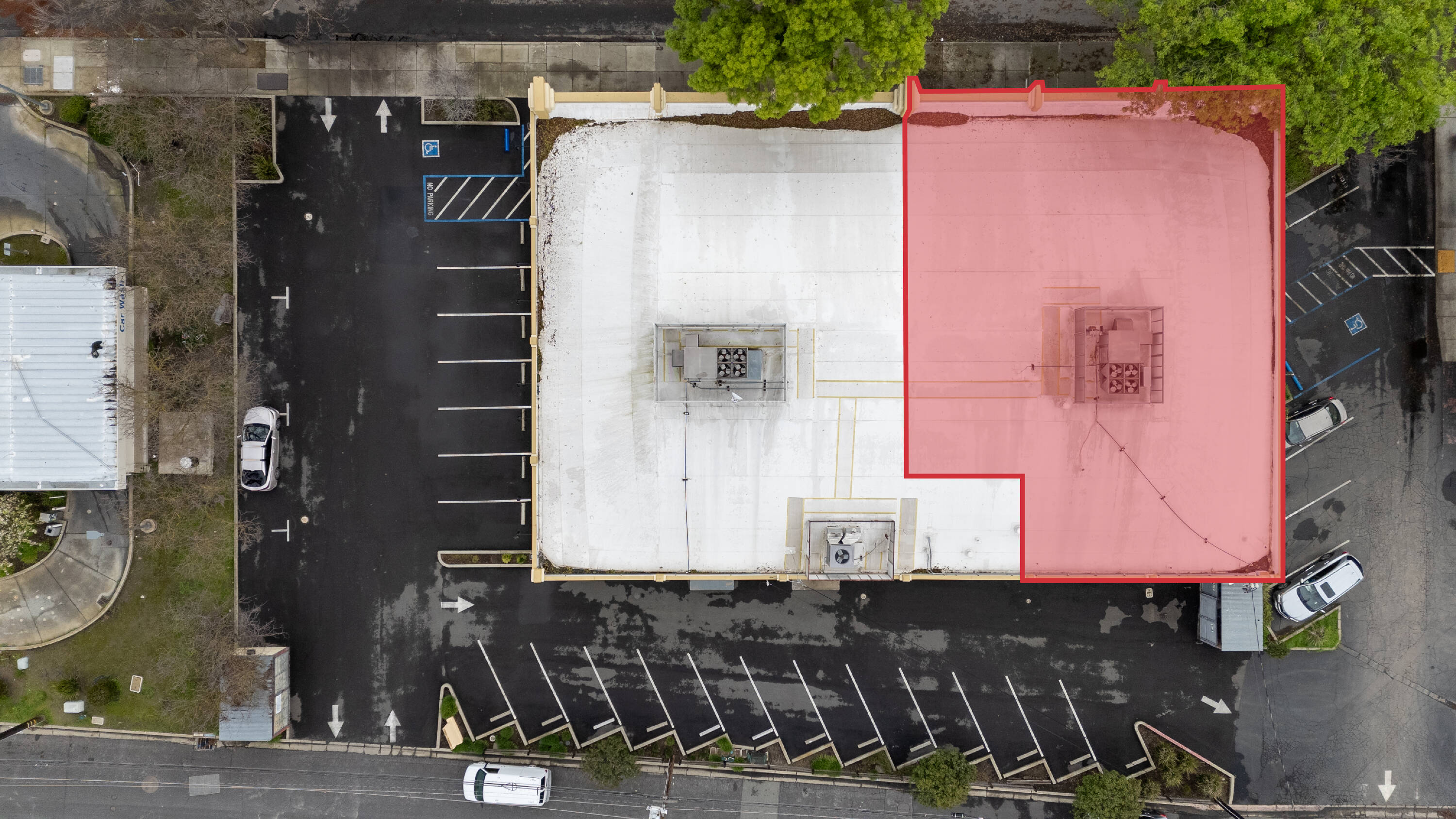 Retail space with high visibility and ample parking.