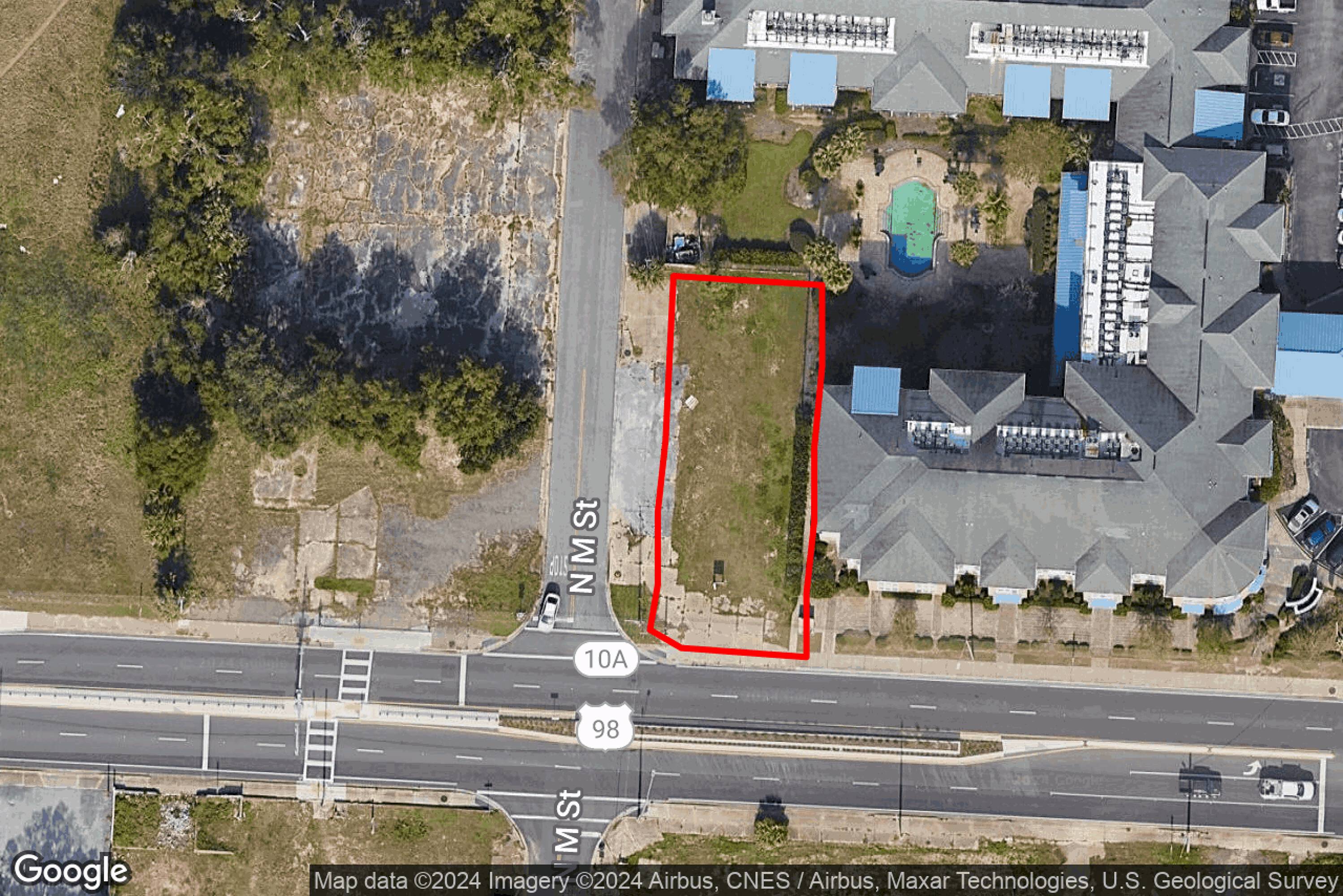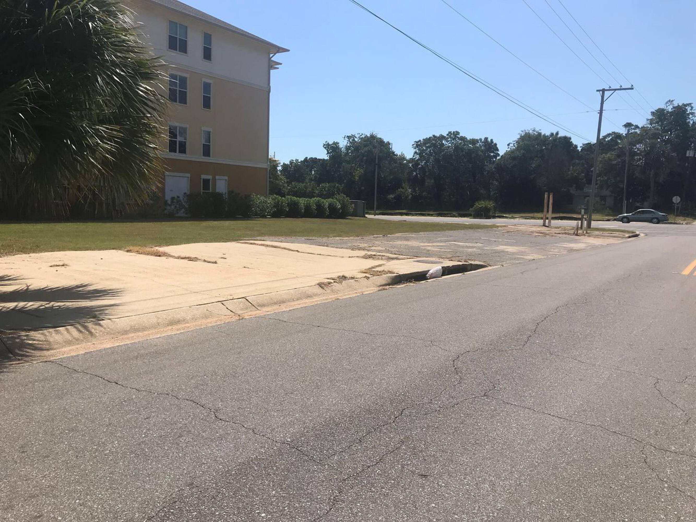 Vacant corner parcel, suitable for parking or redevelopment.