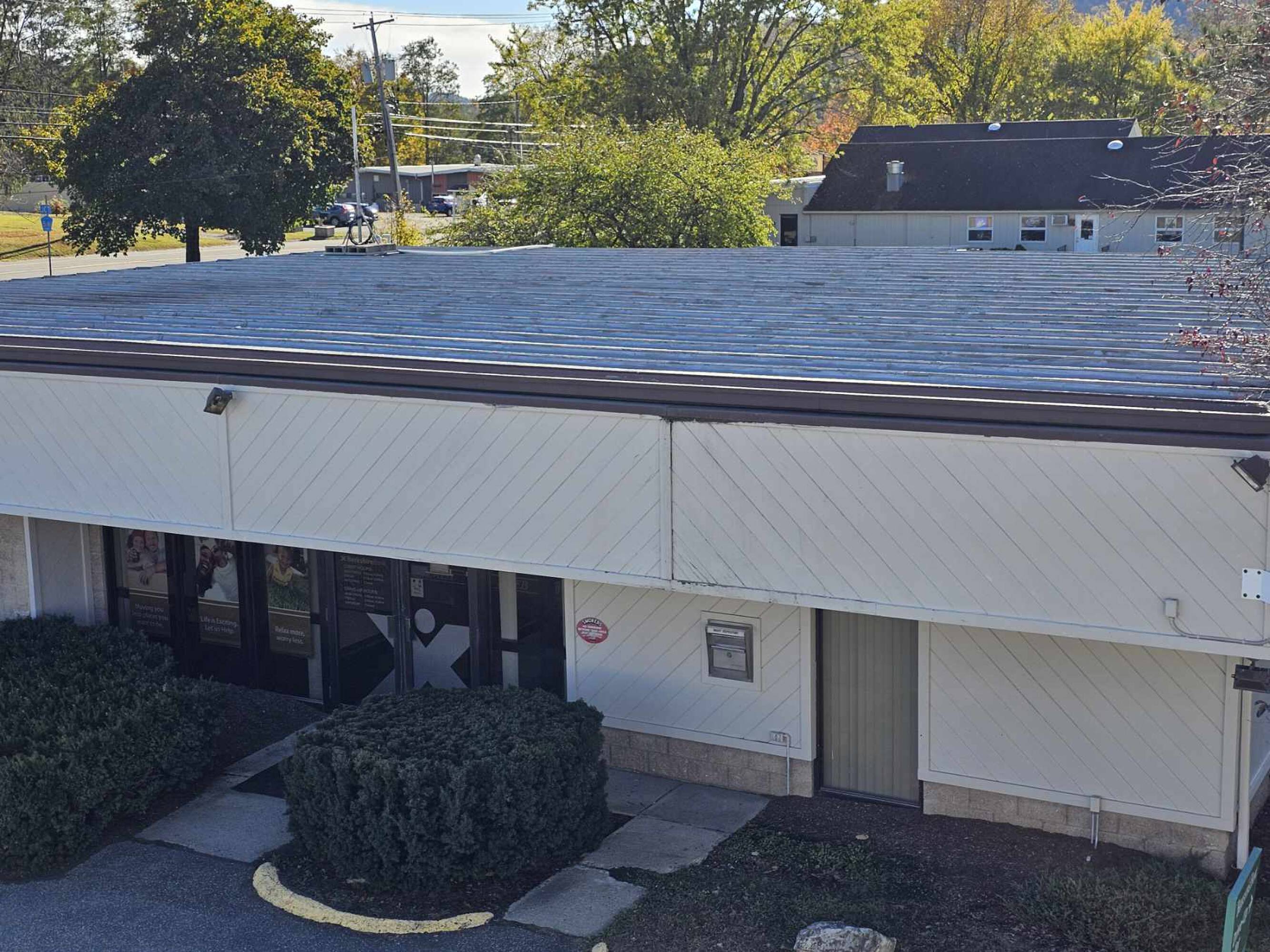 Two buildings with six-unit retail center and bank.