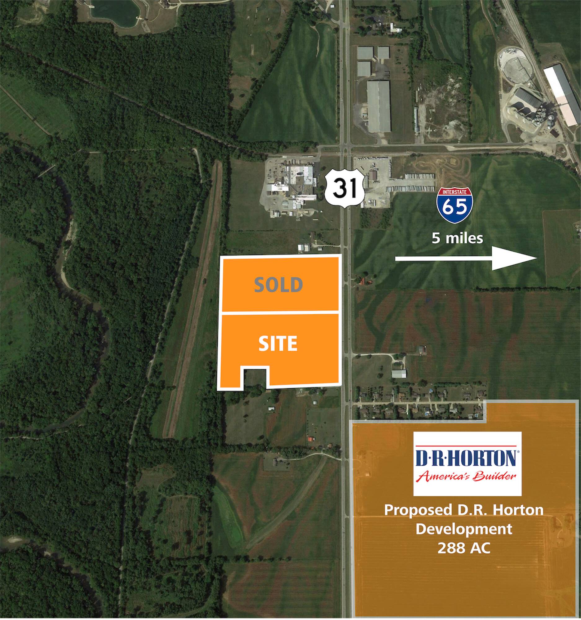 This property features: +/- 27 AC Direct frontage on US 31; Zoned Enclosed Industrial; Adjacent to future 288 AC DR Horton Development