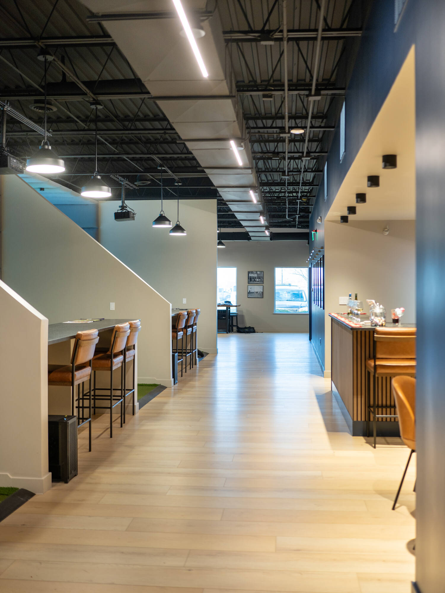 This single-story commercial building features a paved parking area with 37 spaces. It offers connectivity to I-65 and I-465. The property is located within walking distance of downtown Fishers, the Nickel Plate Trail, and the Citywalk high-end residential development. On-site management is available. A Stick & Hack indoor golf simulation business is located in the building.