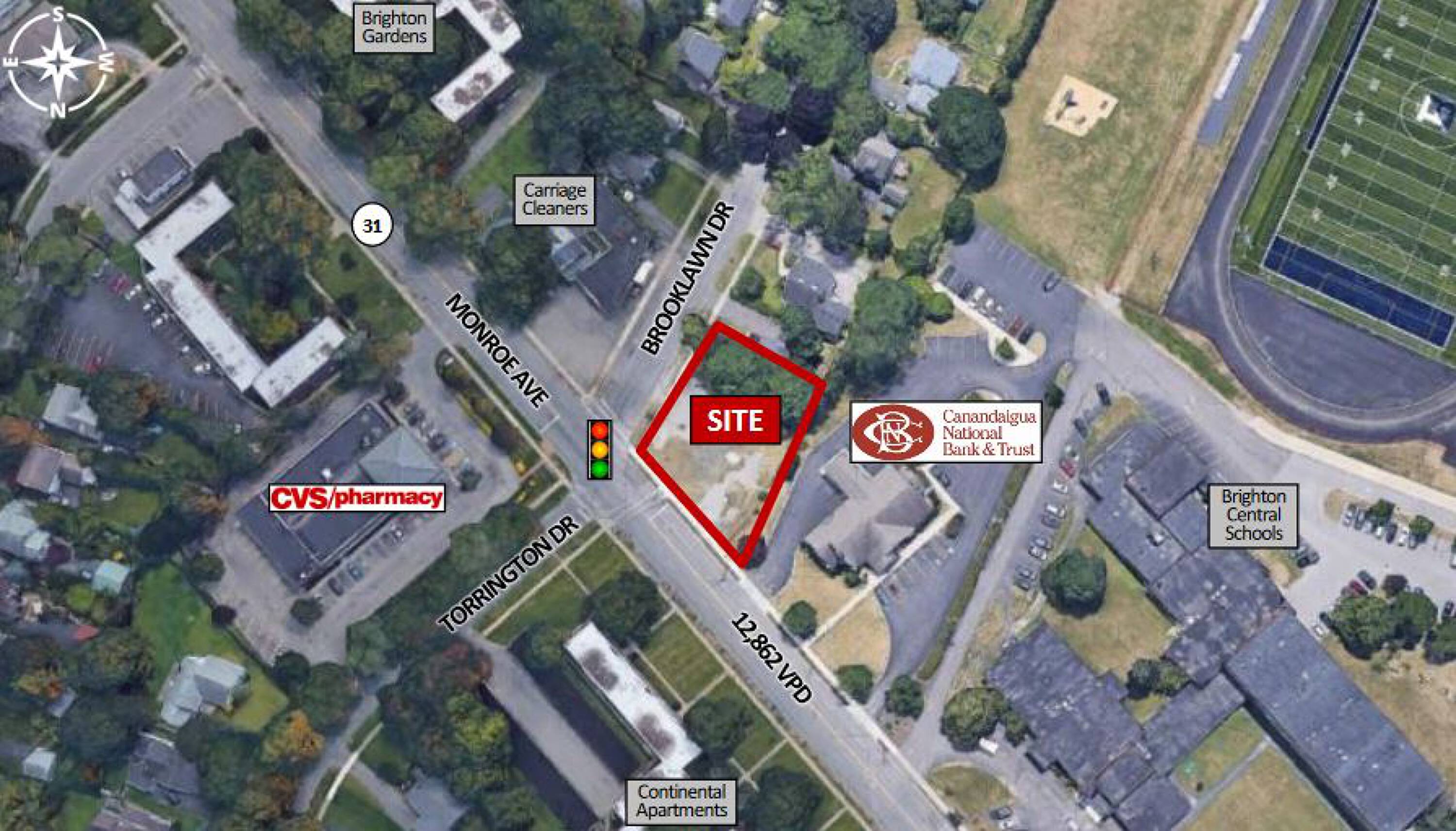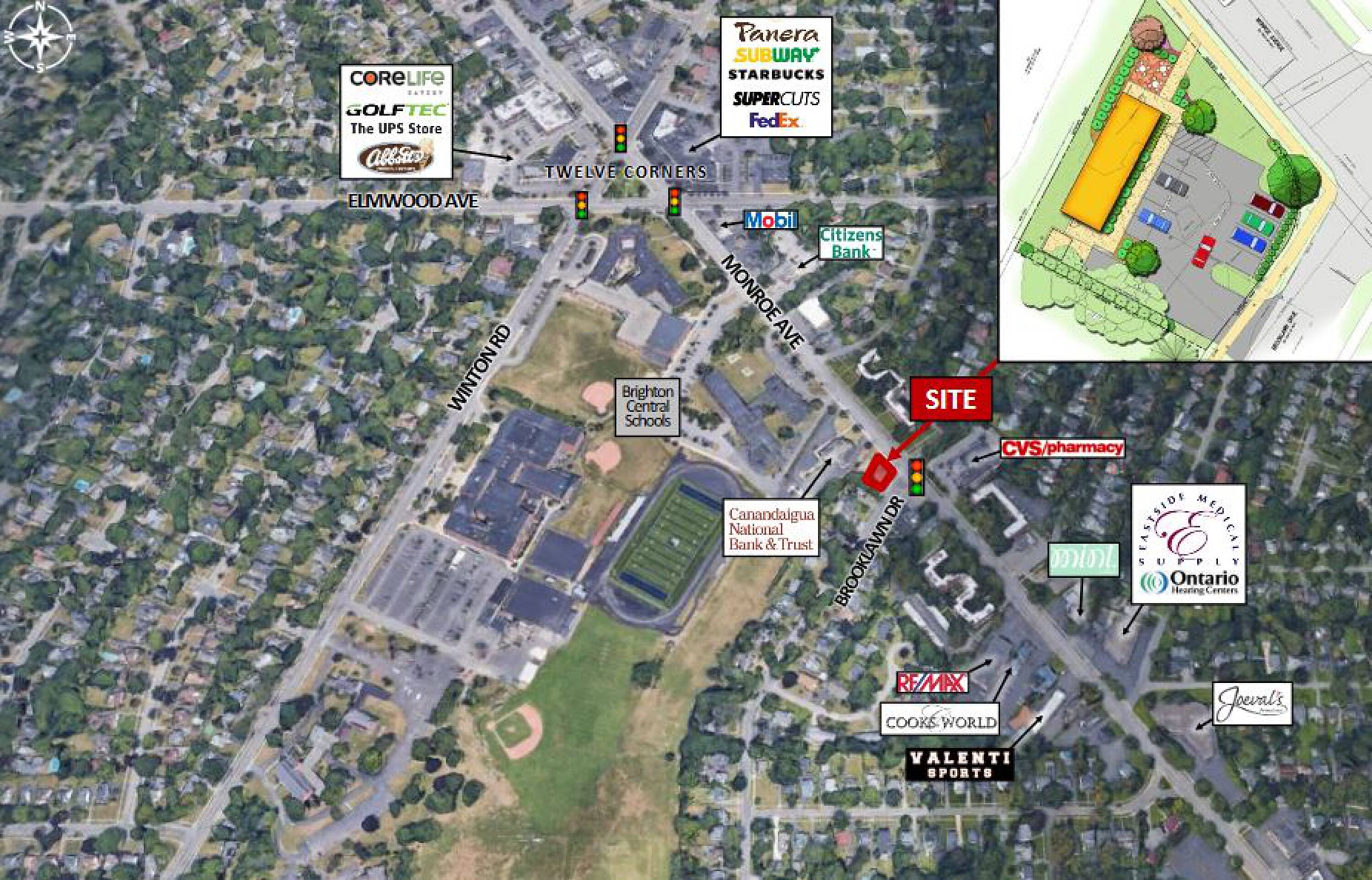 A 0.26-acre commercial site is now available along Monroe Avenue, within Brighton’s business corridor.