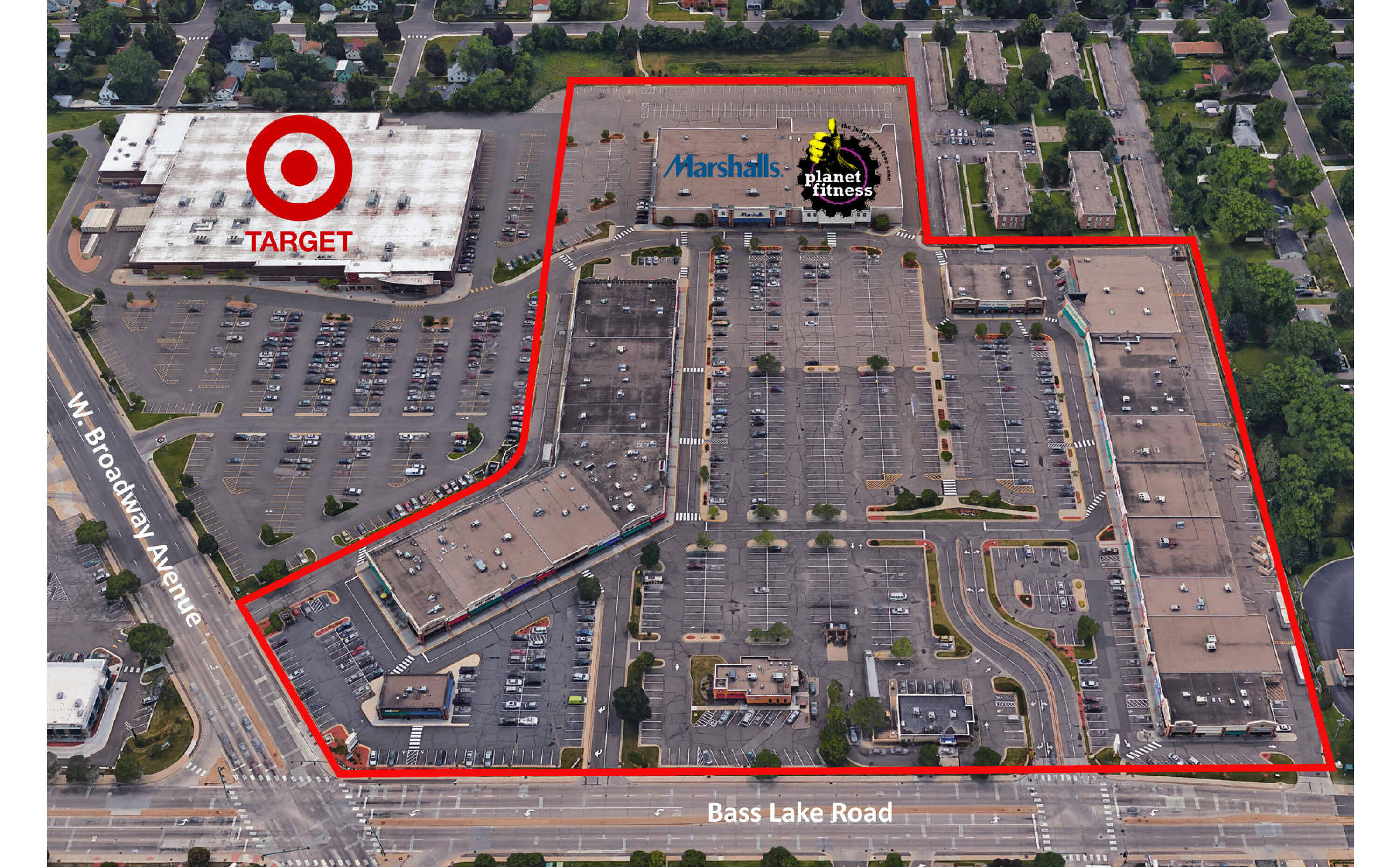 Community center anchored by Target, Marshall’s, and Planet Fitness.