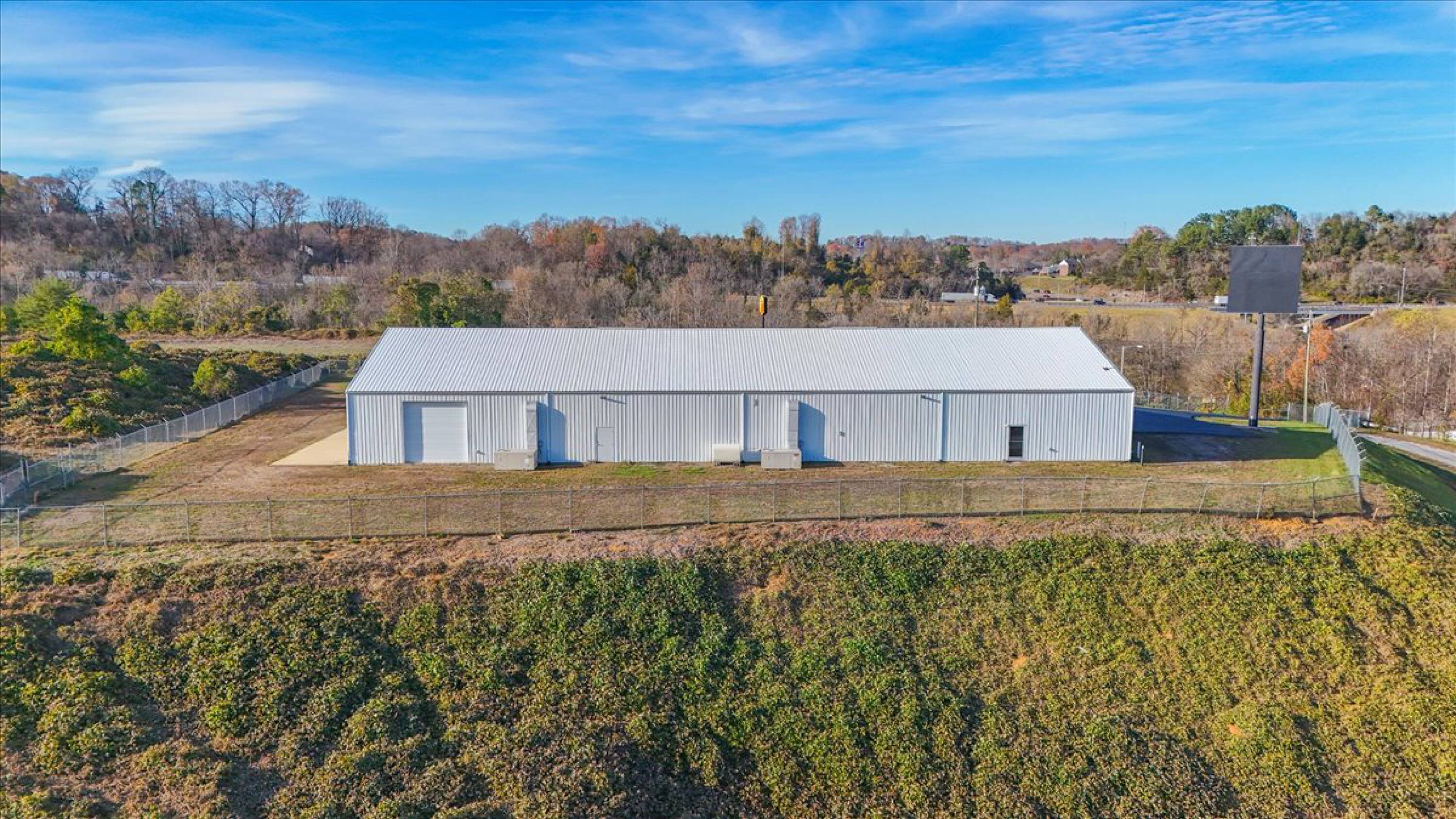 Fenced 3.59-acre property with 14,000 sq. ft. commercial building.