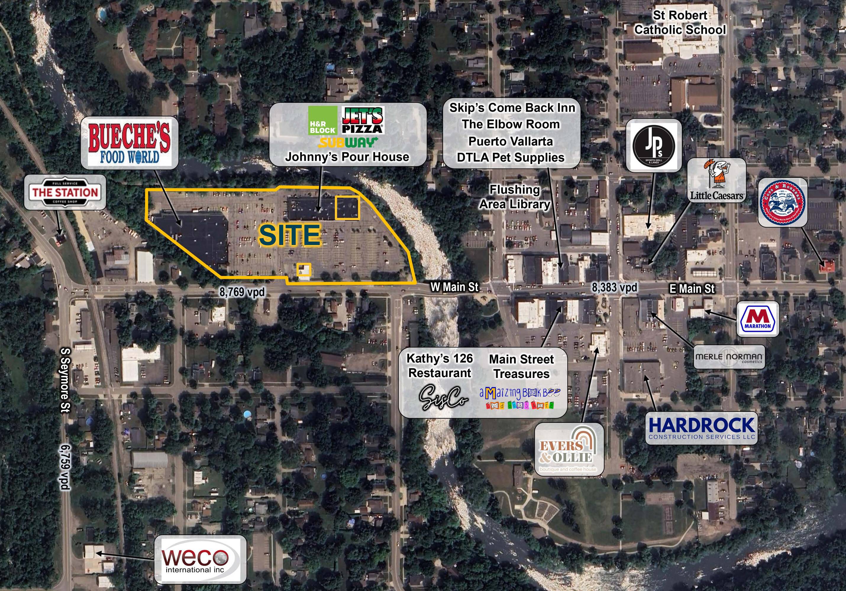 The property is located at 218-300 W Main Street Flushing, MI.
