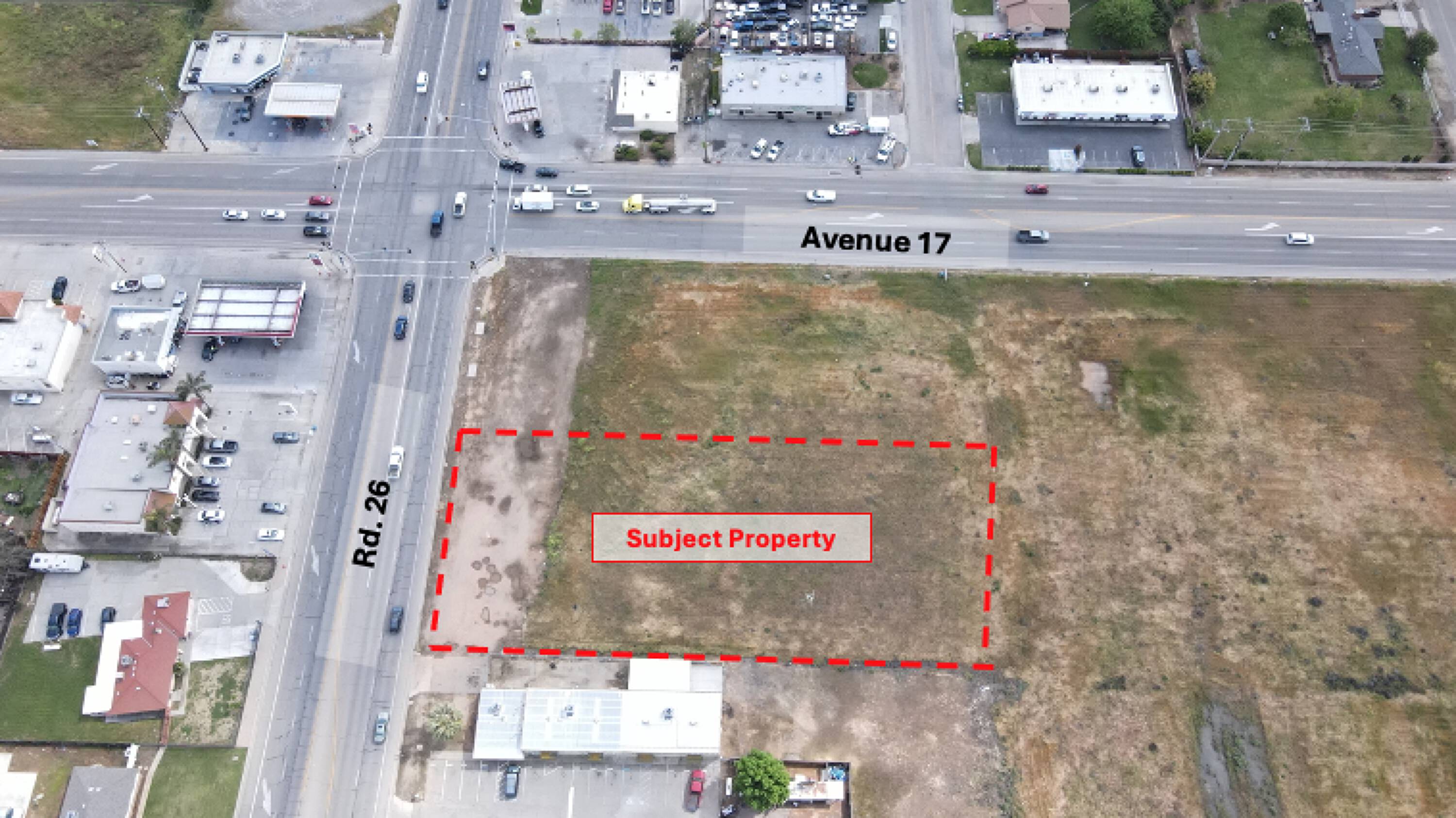 This property features: Prime location at the intersection of Ave 17 and Rd 26 in Madera County.; Close proximity to Matilda Torres High School.; Ample space for development.