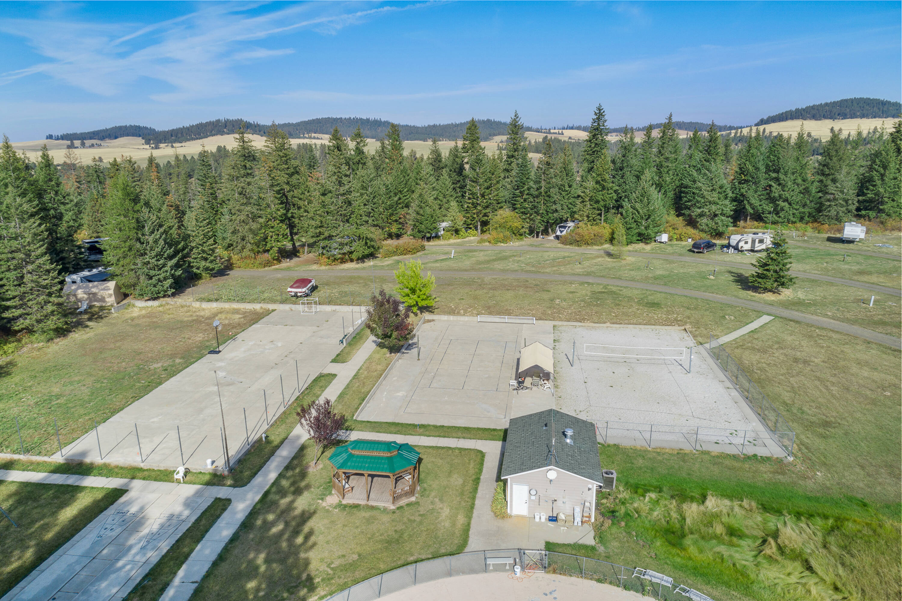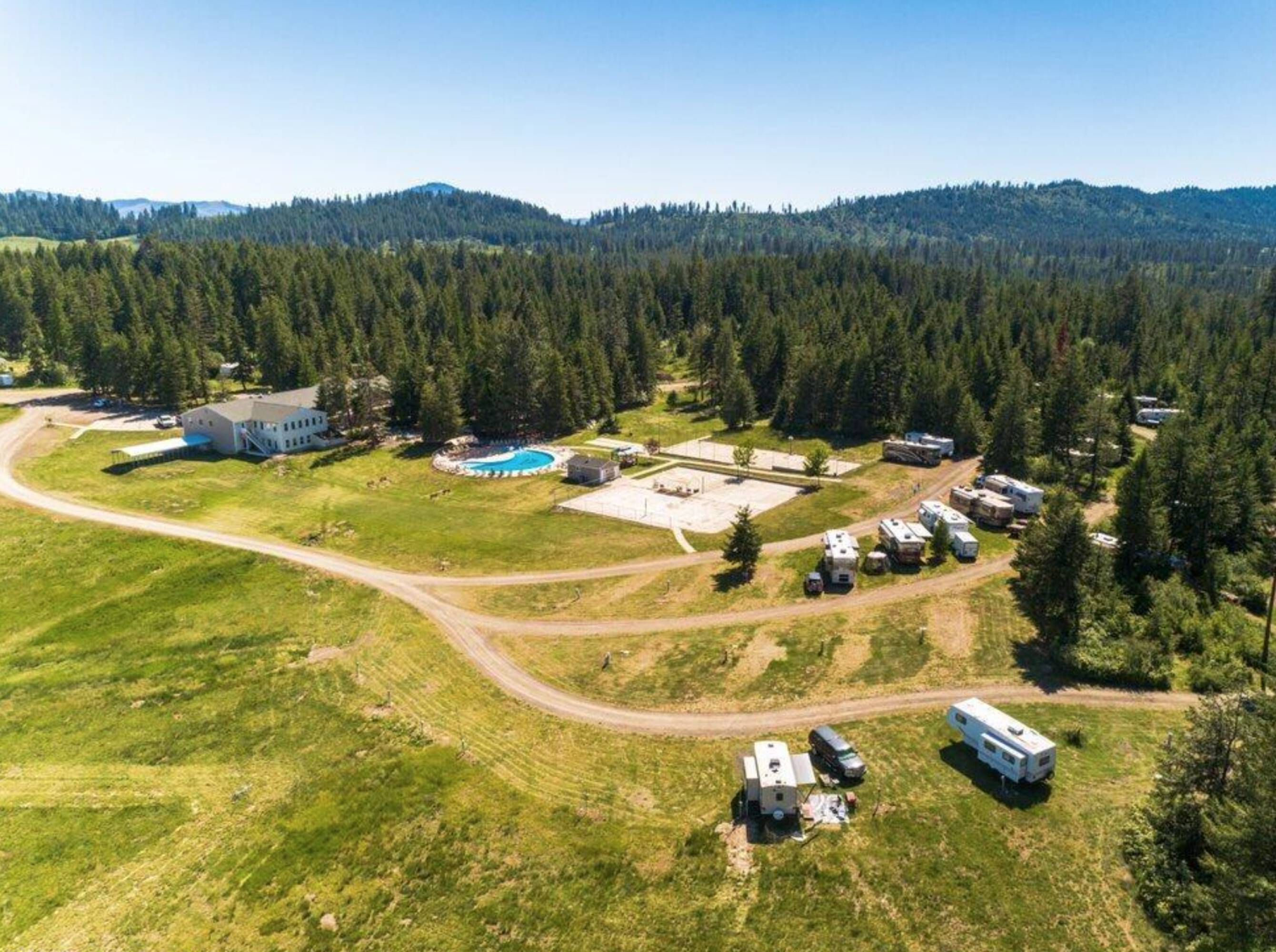 40-acre former RV park and lodge in North Idaho.