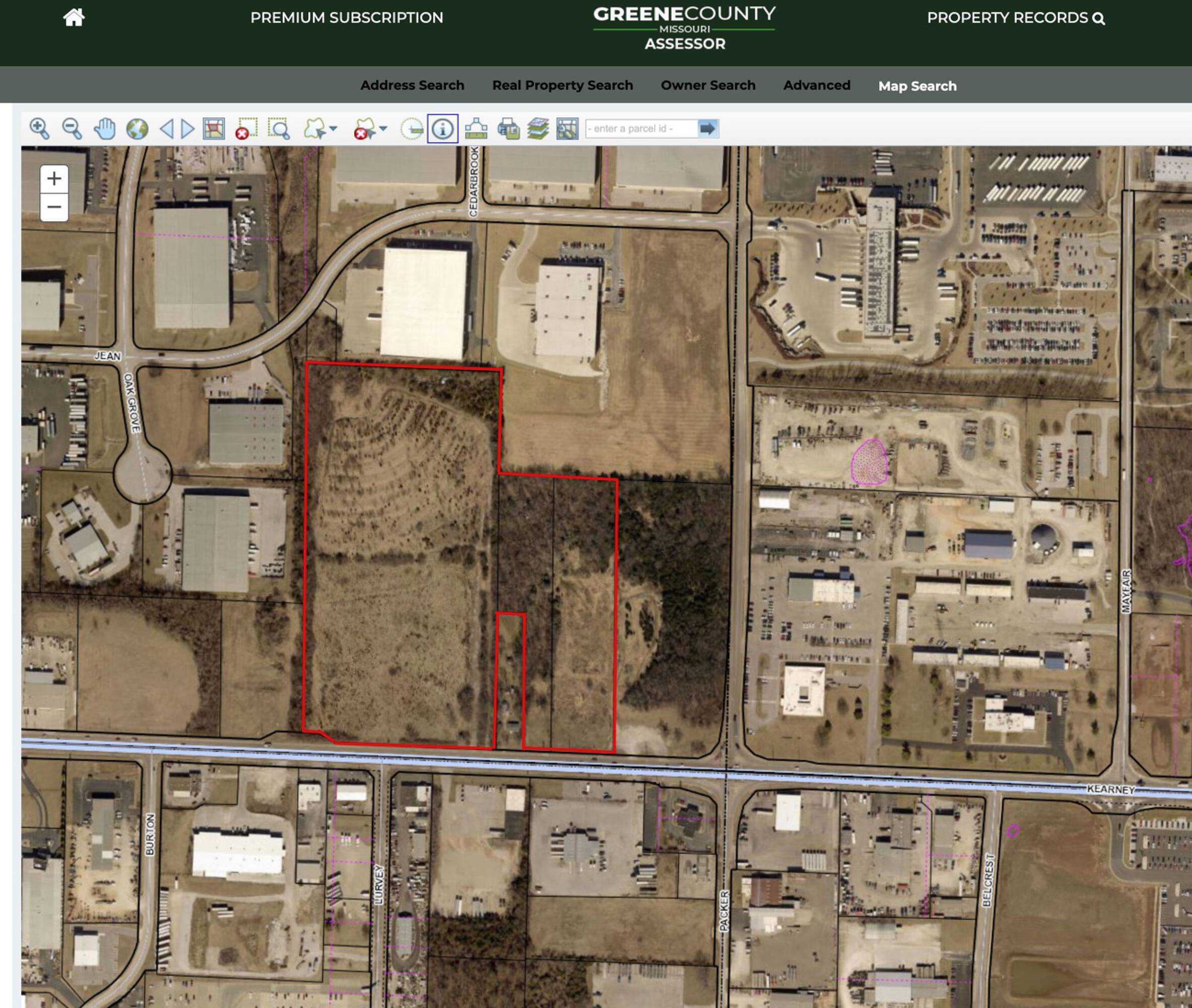 This 26.58-acre lot comprises three parcels and features approximately 1000 feet of frontage on East Kearney Street. Electric, water, and gas utilities are available along the south side of the property on Kearney Street, while sewer access is located along the west side. The property is situated on the north side of East Kearney Street, just west of the intersection of Kearney Street and Packer Road, and approximately one-half mile west of the Highway 65 and Kearney Street interchange, providing convenient access to Interstate 44 to the north.