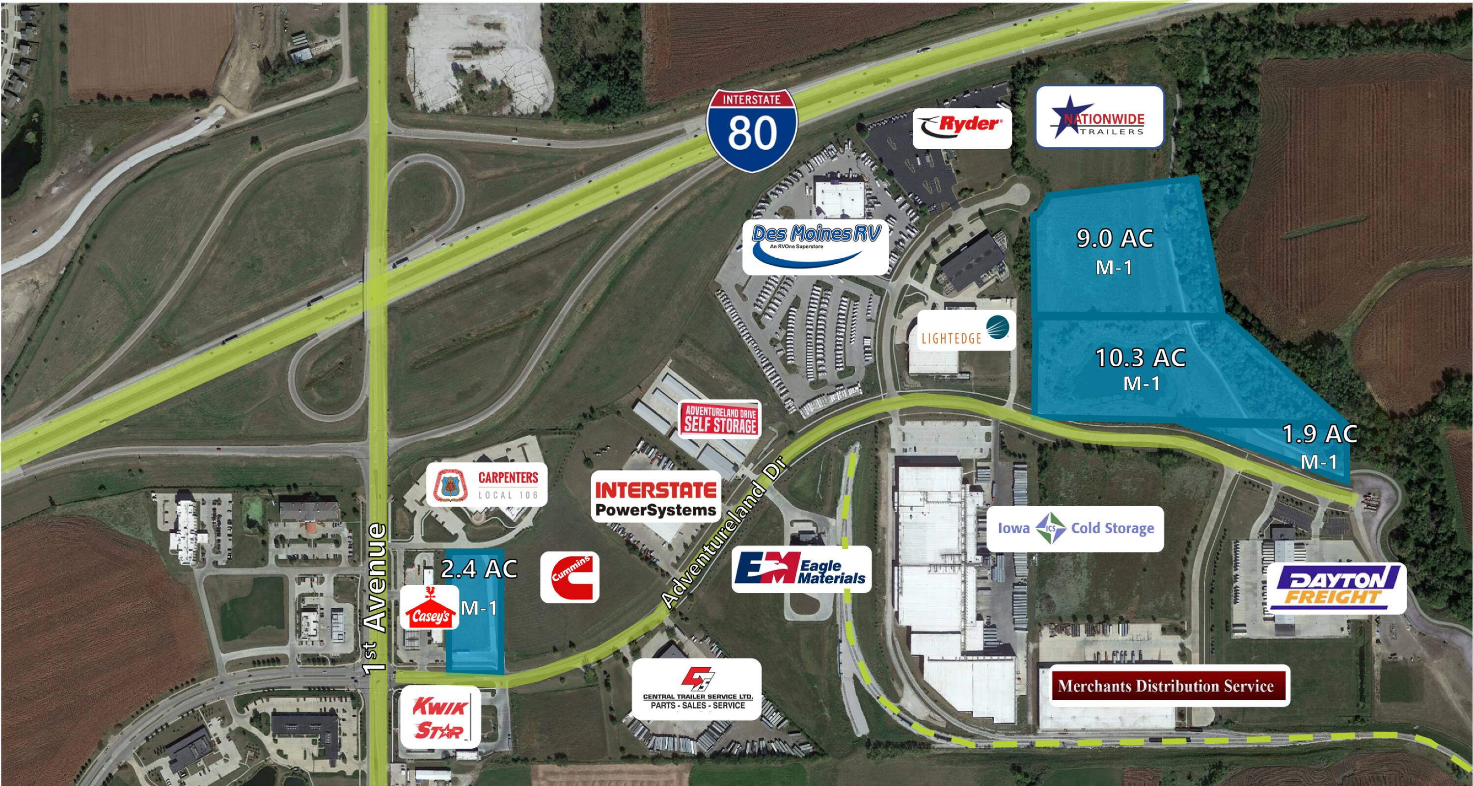 Commercial land for sale near I-35/80 in Altoona, Iowa.