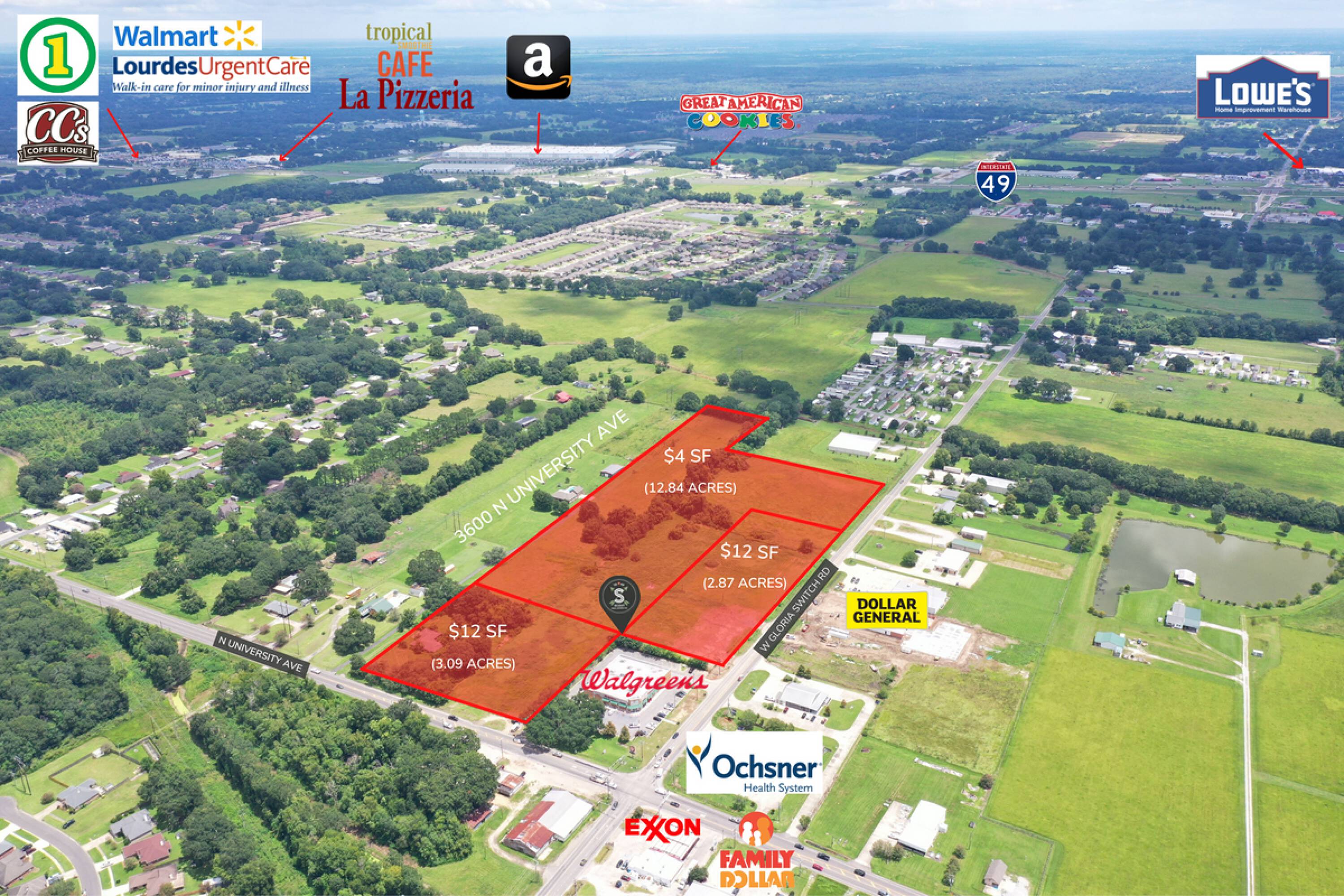 The property is located at 3600 N University Ave Carencro, LA.