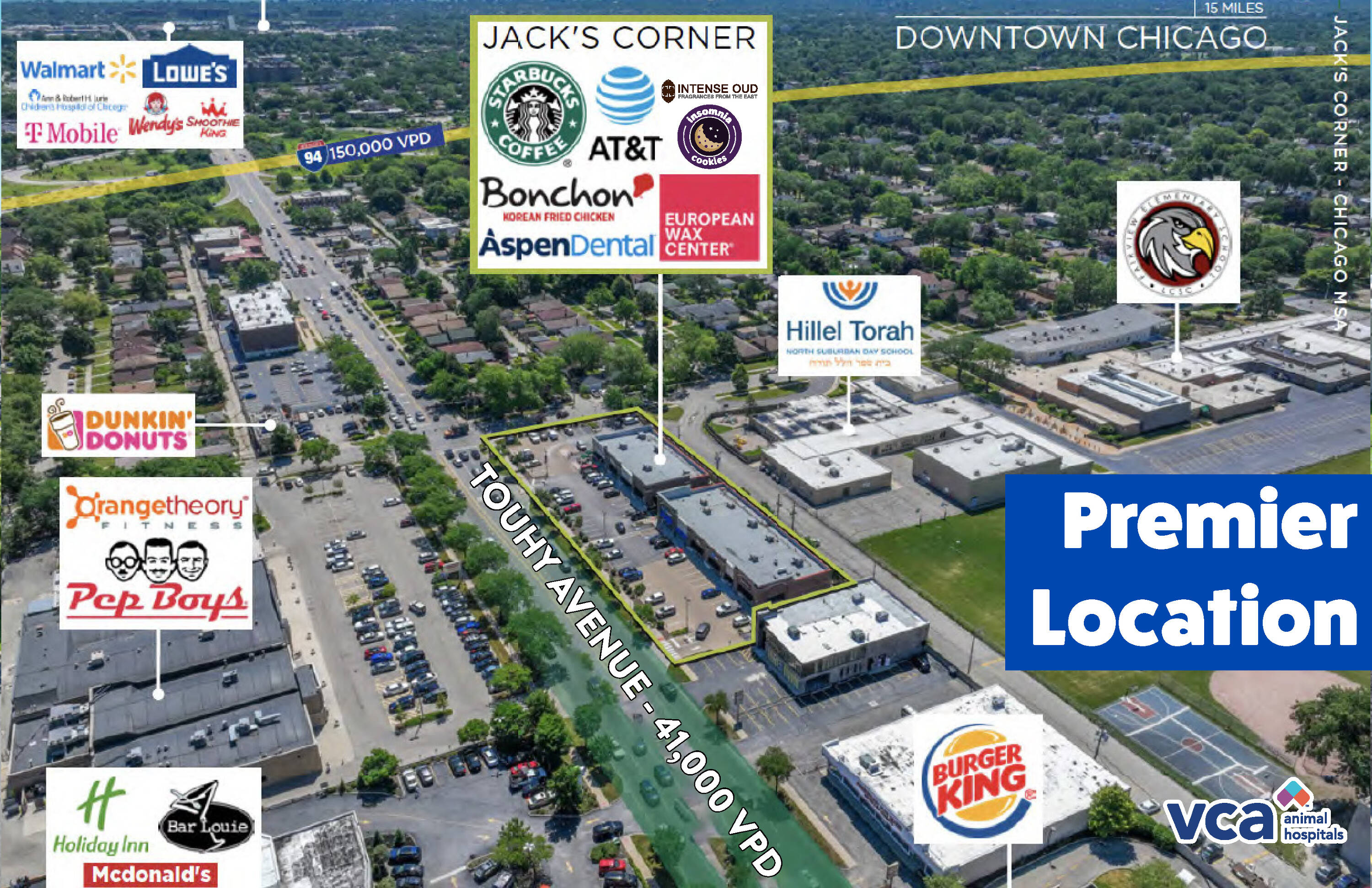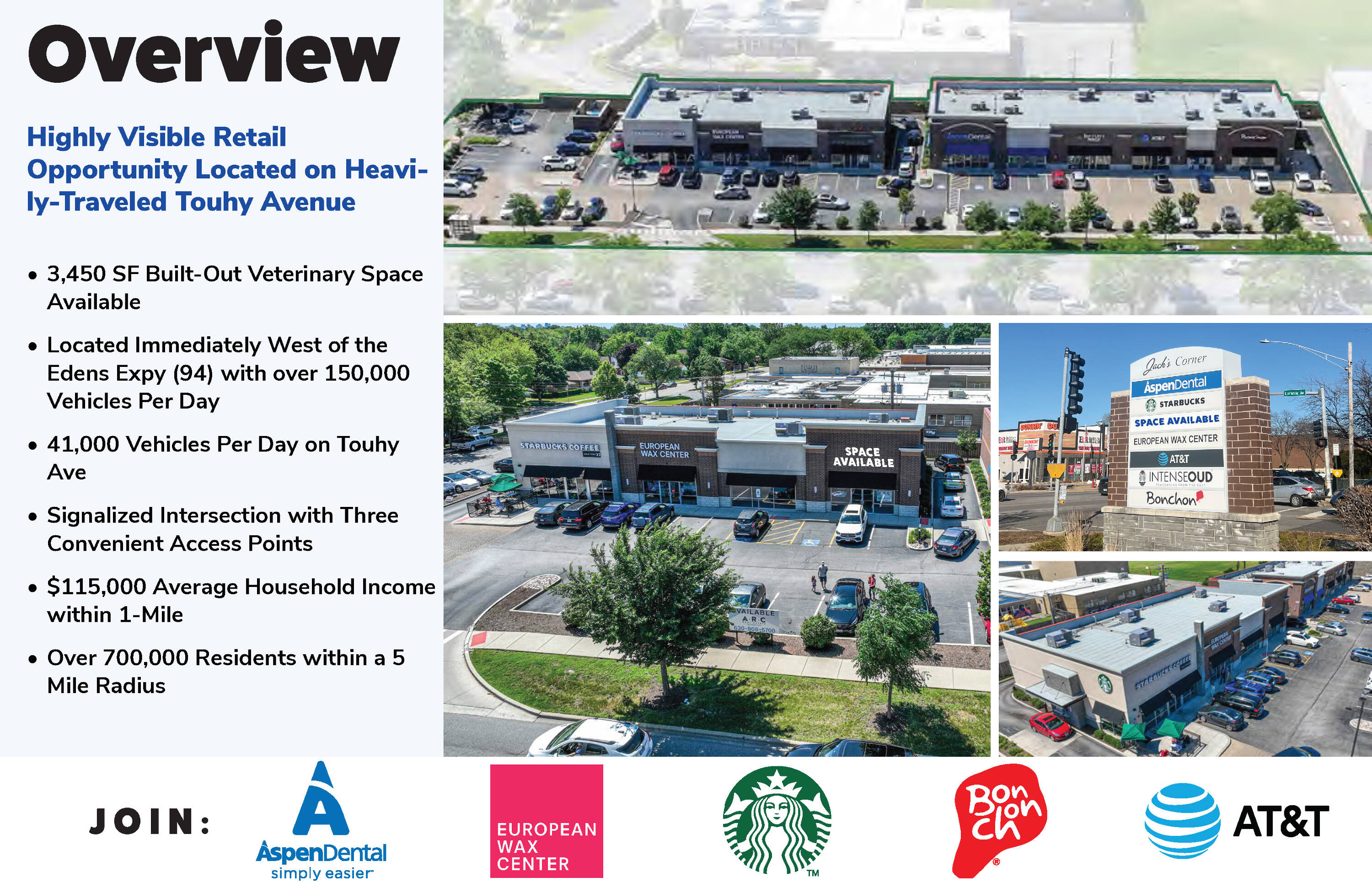 This property features: 3,450 SF Built‑Out Veterinary Space; High Traffic Location: Over 150,000 Vehicles Per Day on Edens Expy (94); 41,000 Vehicles Per Day on Touhy Ave