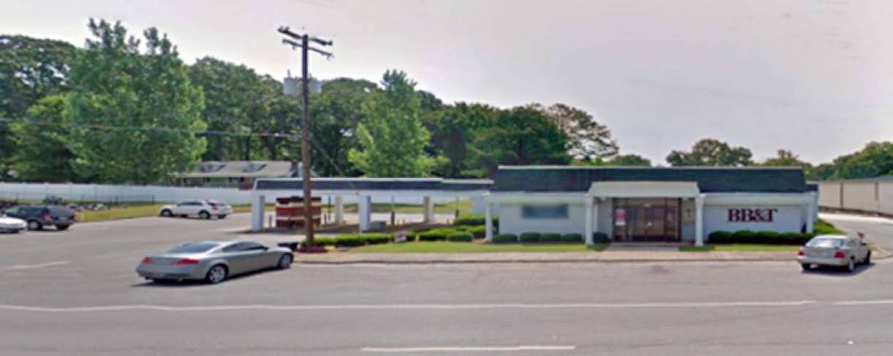 Commercial property with drive-thru lanes and onsite parking.