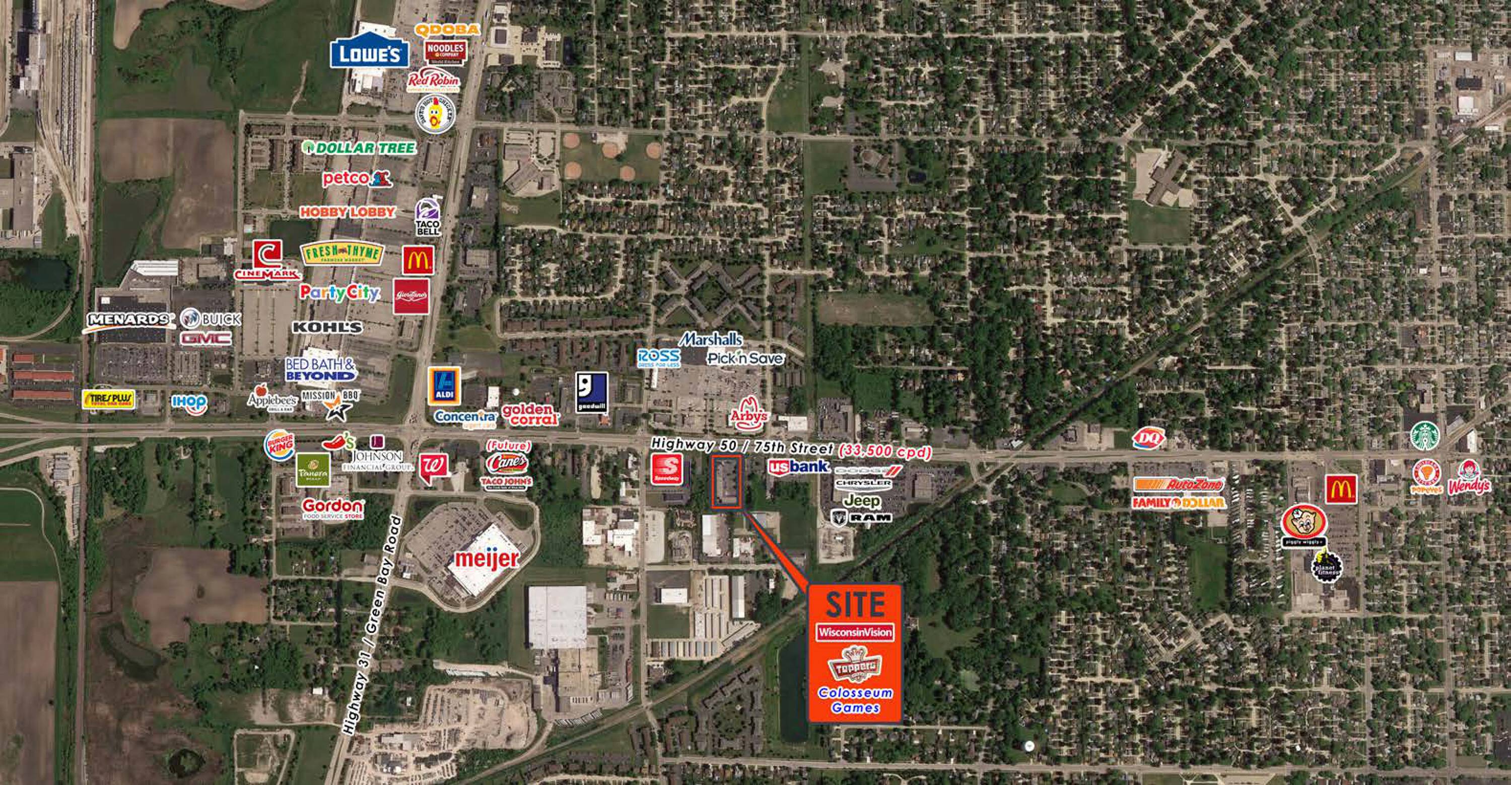 Retail space available for lease in Kenosha, Wisconsin.