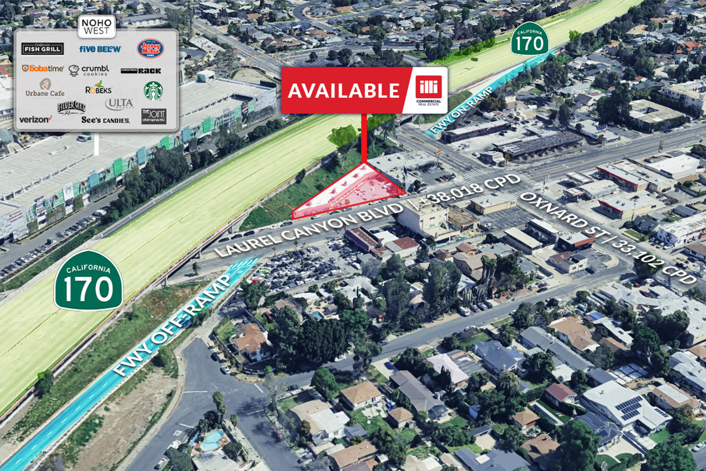 This property features: High‑visibility location at the signalized intersection of Laurel Canyon and Oxnard.; Exceptional street frontage and freestanding building in a vibrant North Hollywood submarket.; Close proximity to the 170 Freeway on- and off‑ramps.