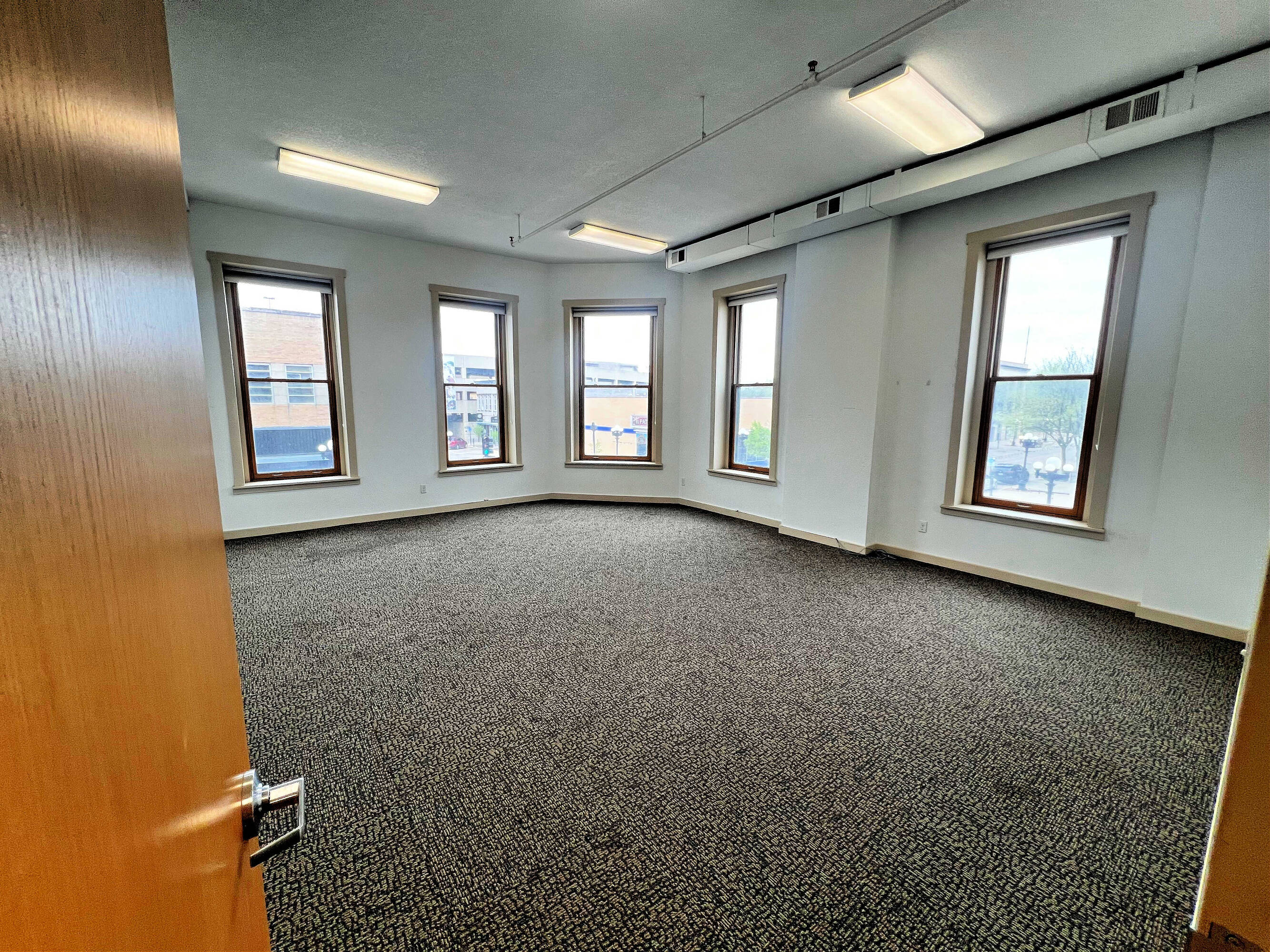 Second-story office space with downtown views and parking.