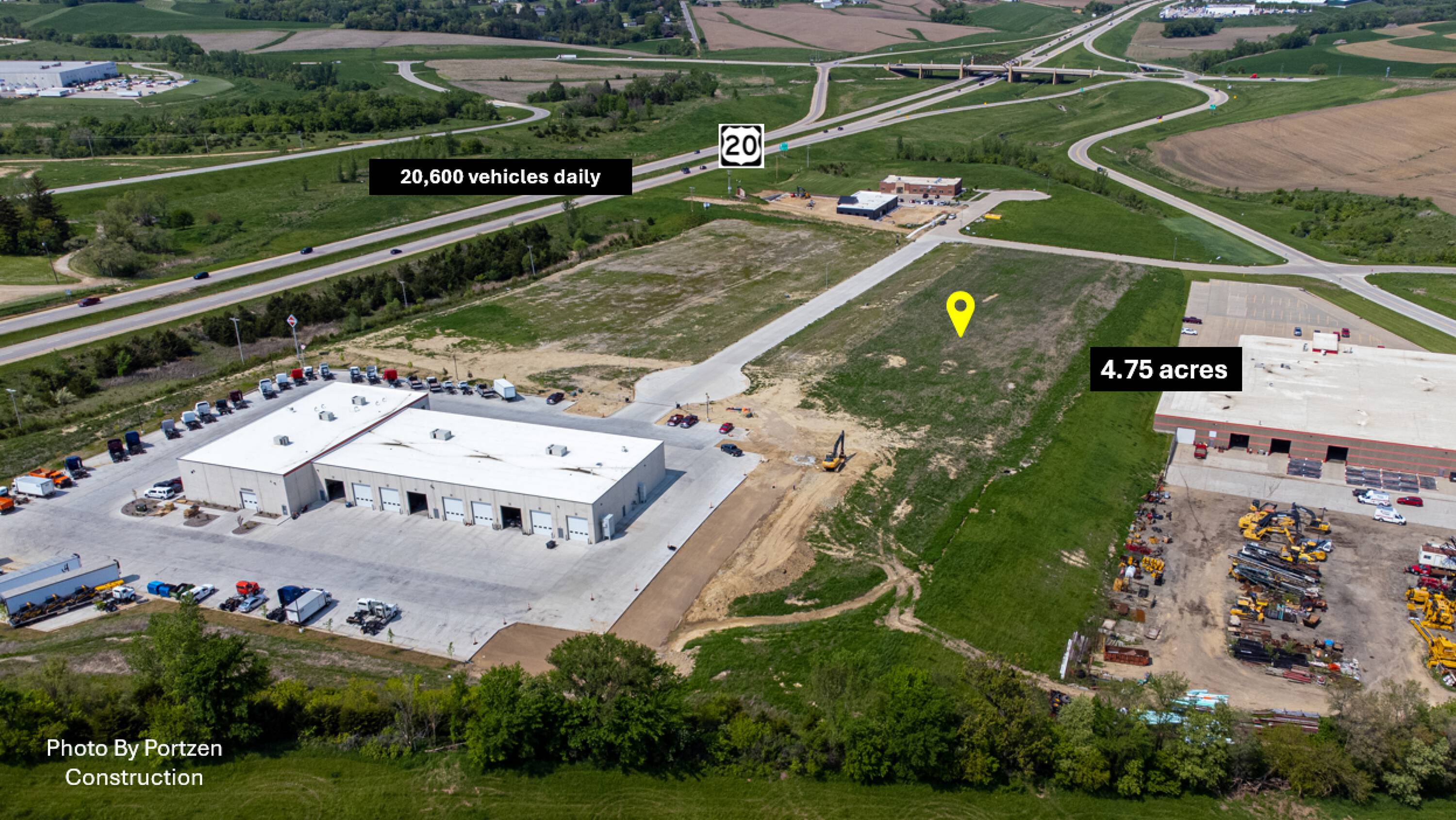 This property features: Highway 20 frontage with **high traffic volume (21,000+ vehicles daily)**.; Located in Dubuque's growing west end business hub.; C‑3 zoning permits diverse commercial uses (medical, office, restaurants, etc.).