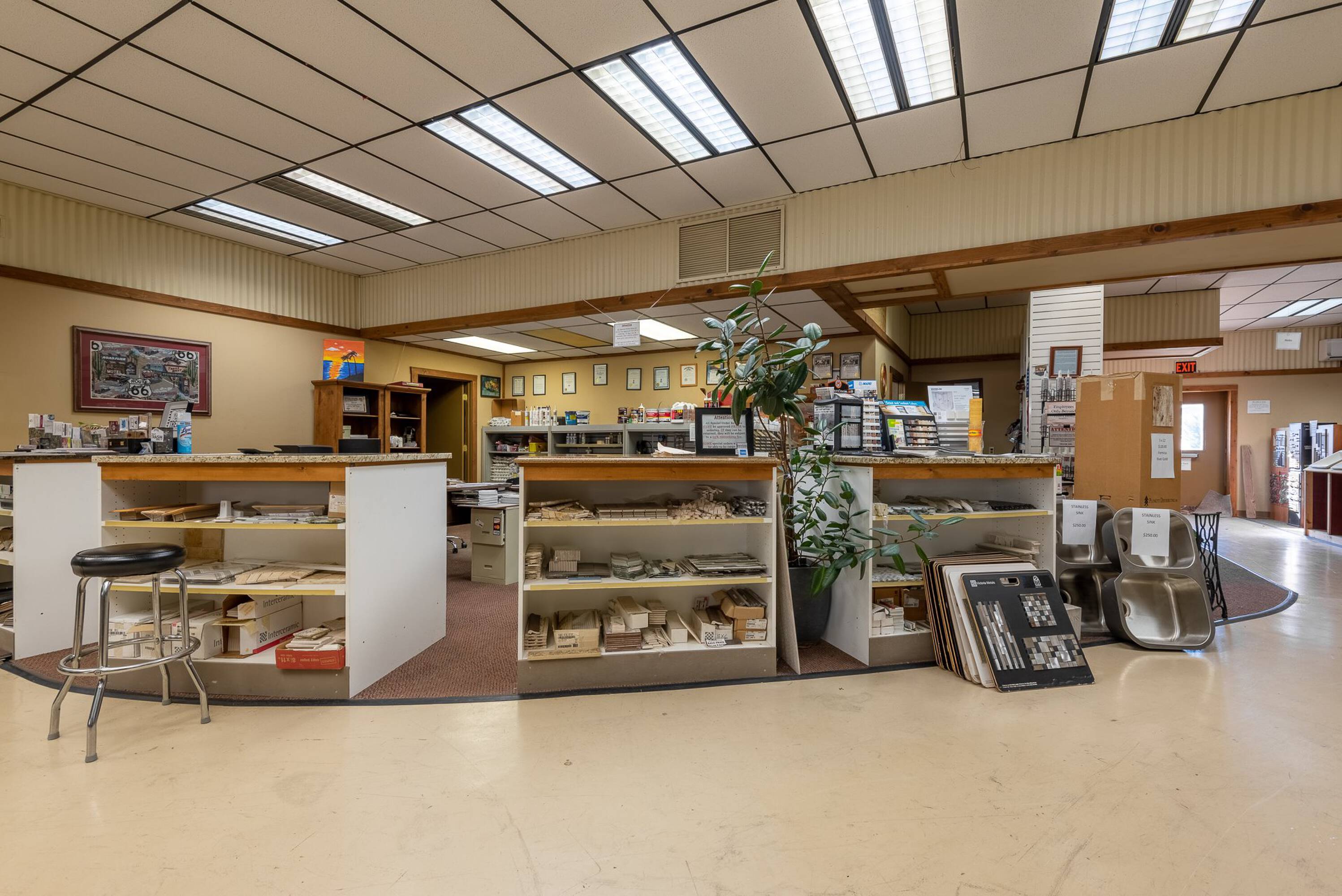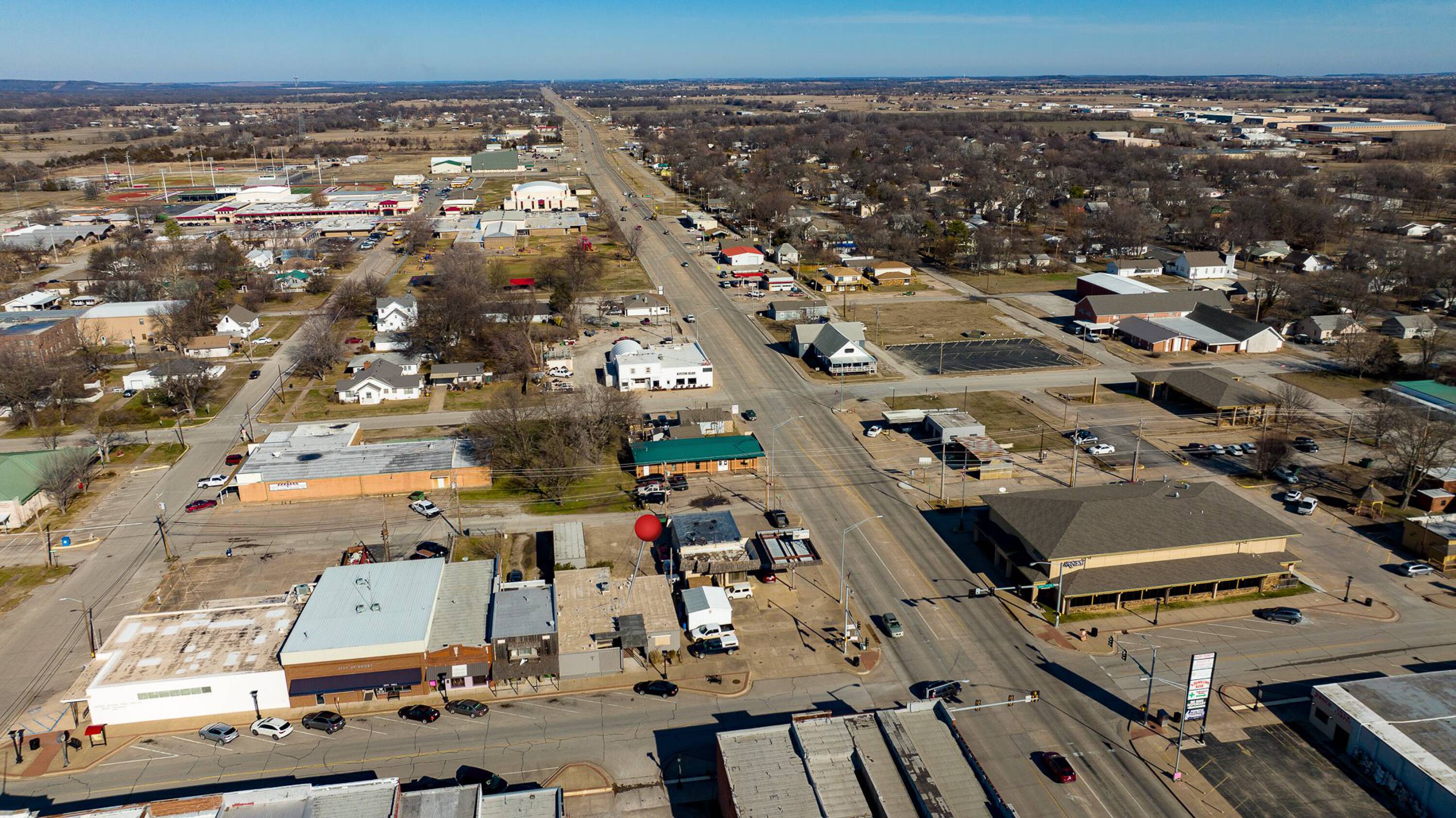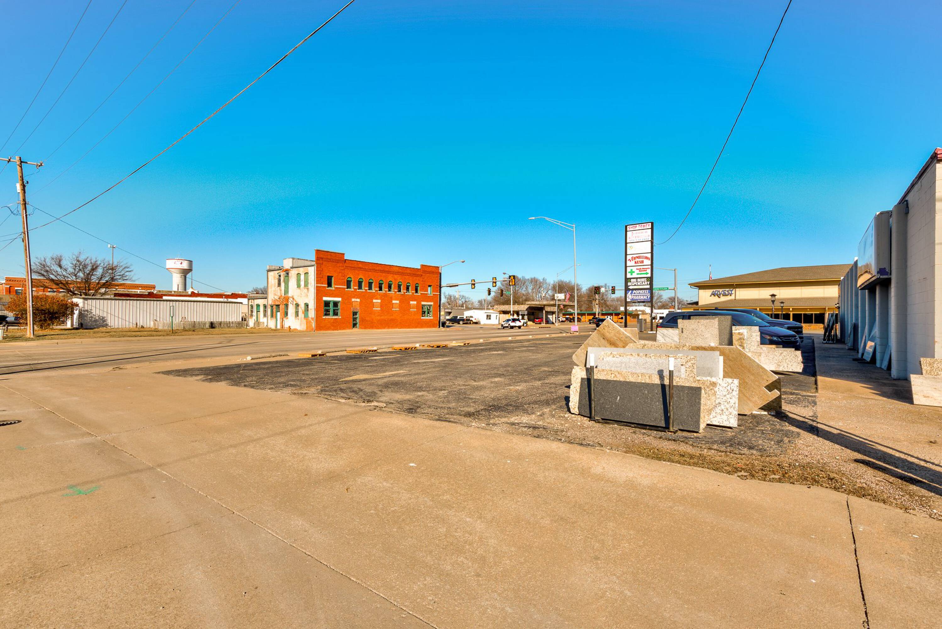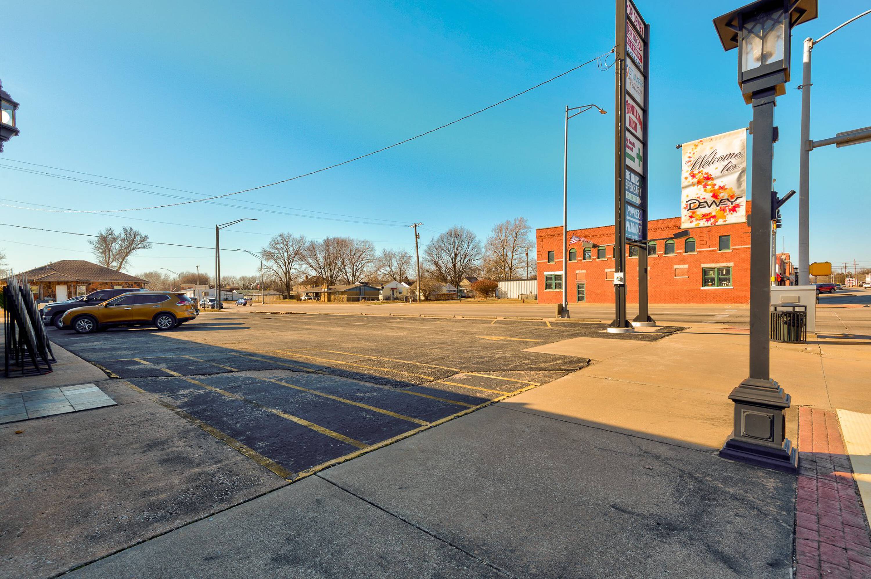 This property presents an investment opportunity with potential for expansion. Located in a desirable location with excellent visibility and easy access, the property benefits from its strategic positioning in a high-traffic area. The property provides ample space and flexibility for expansion and diversification, offering opportunities to scale up and explore new avenues for growth. A large 6-panel corner lot sign generates income, with each panel blank leasing for $1200 per year. The 7184 SF building features a complete new roof installed August 14, 2025, and has no deferred maintenance. Dewey is on the edge of major development in their industrial park, bringing in new jobs and revenue to the town, which features a low cost of living, a great school system, and opportunities for home ownership.