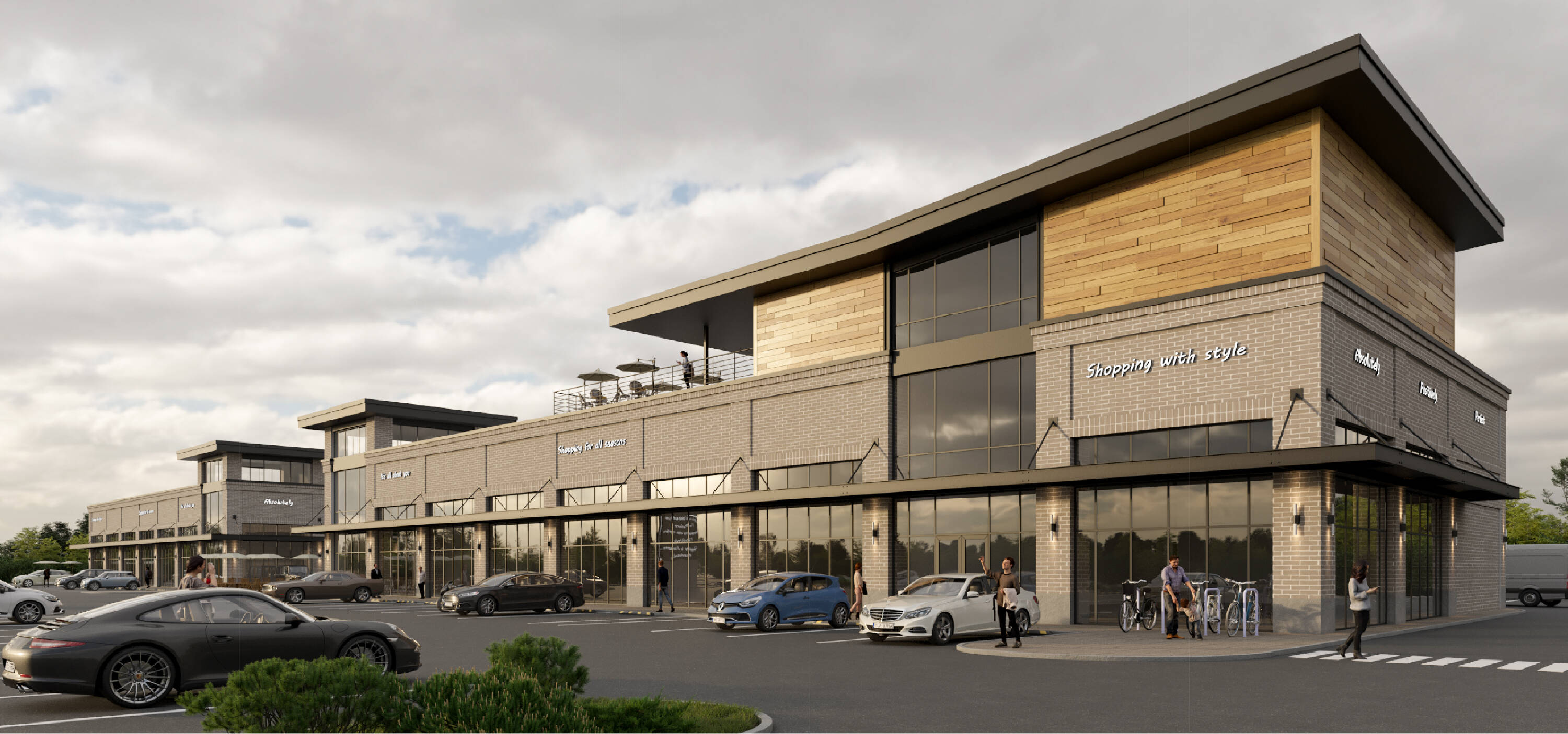 New construction retail development with drive-thru and rooftop options.