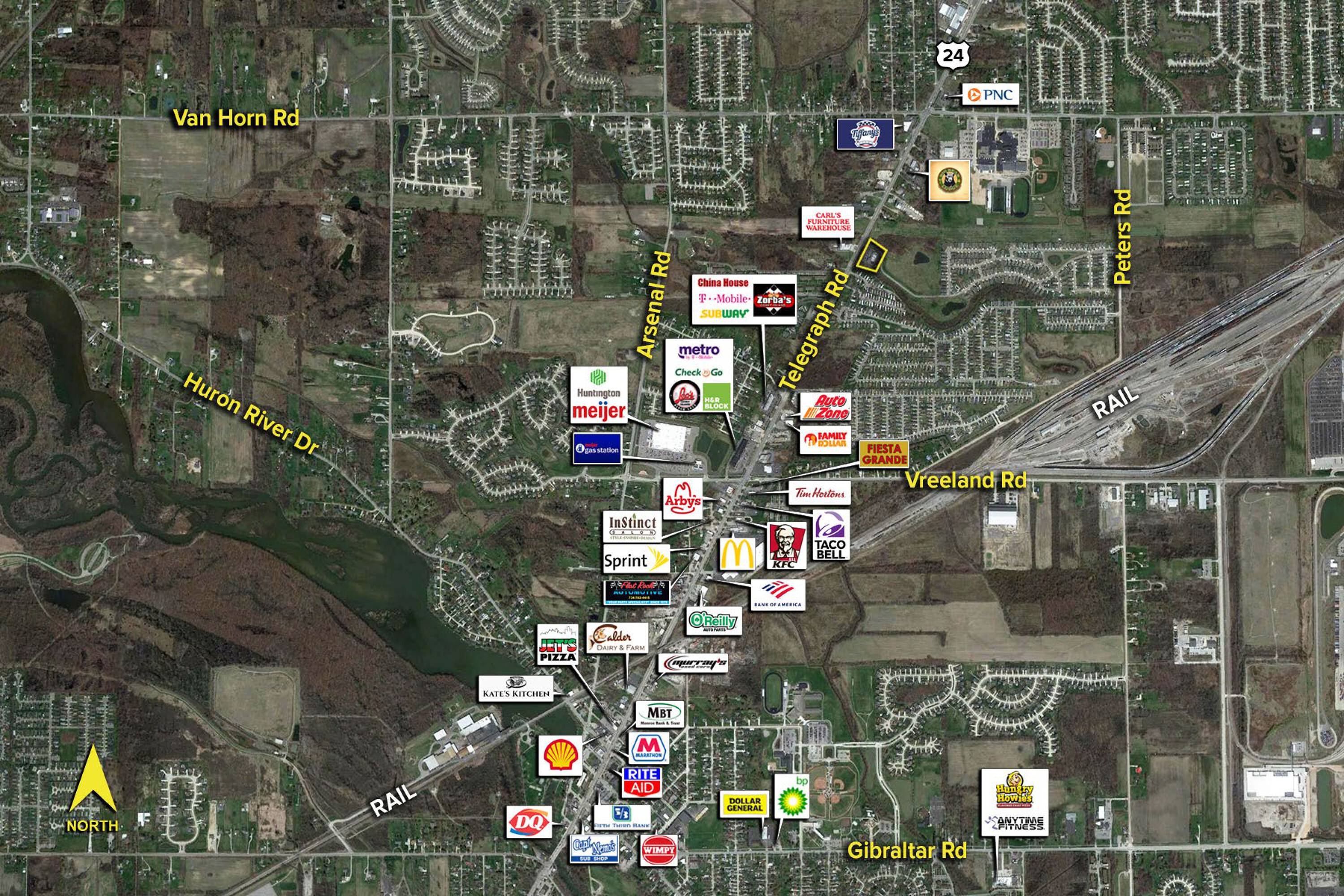The property is located at 25731-25755 Telegraph Road Flat Rock, MI.