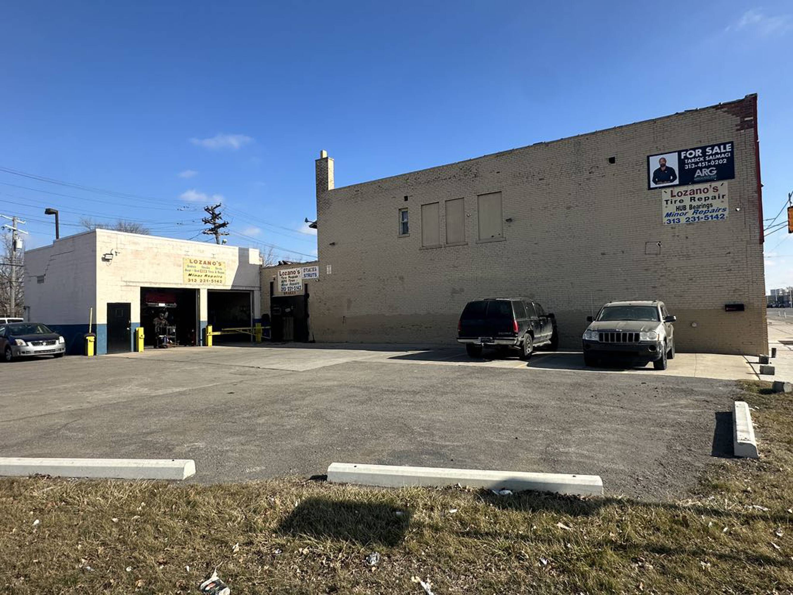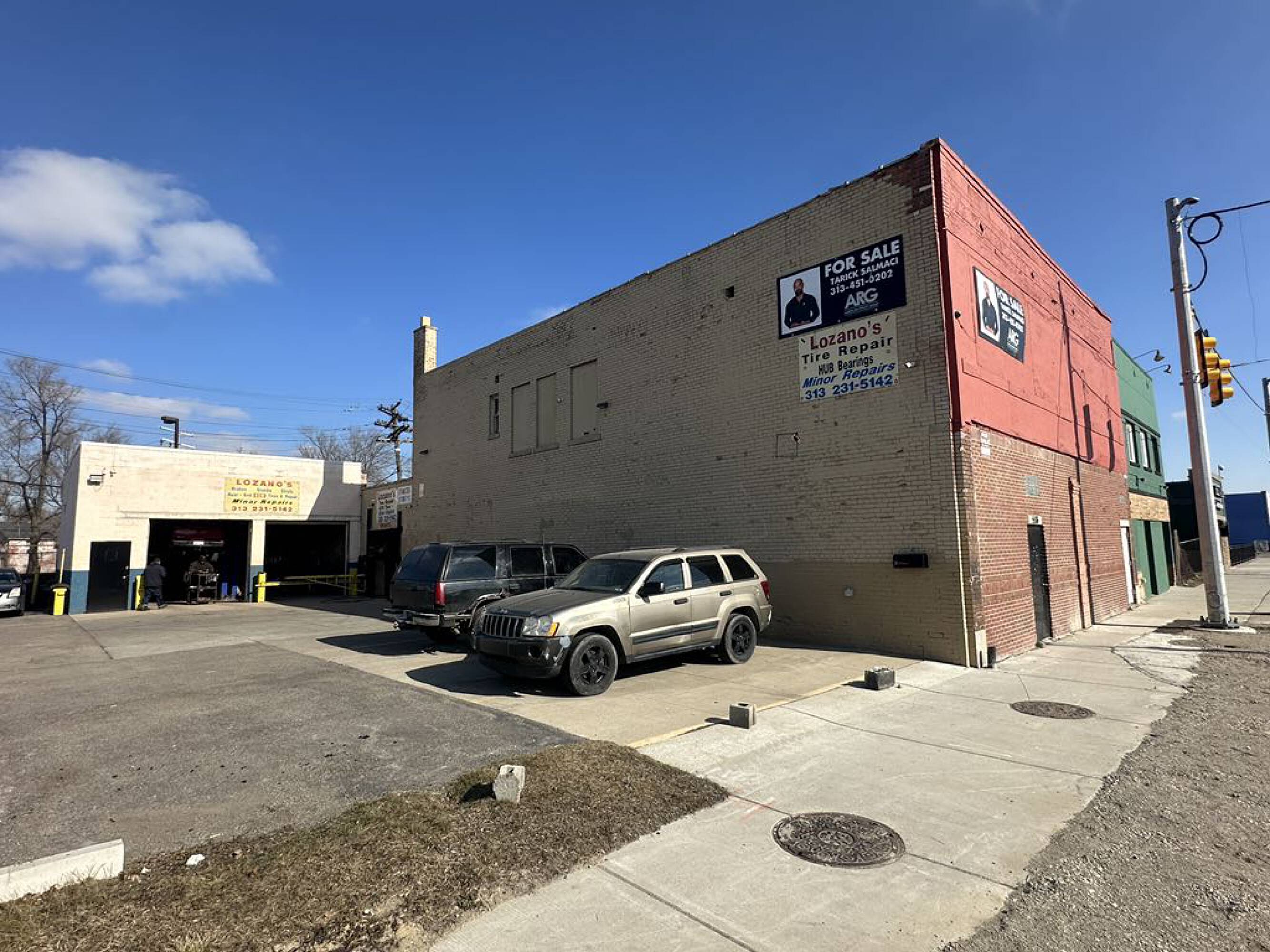 Mixed-use building with auto repair shop in Southwest Detroit.