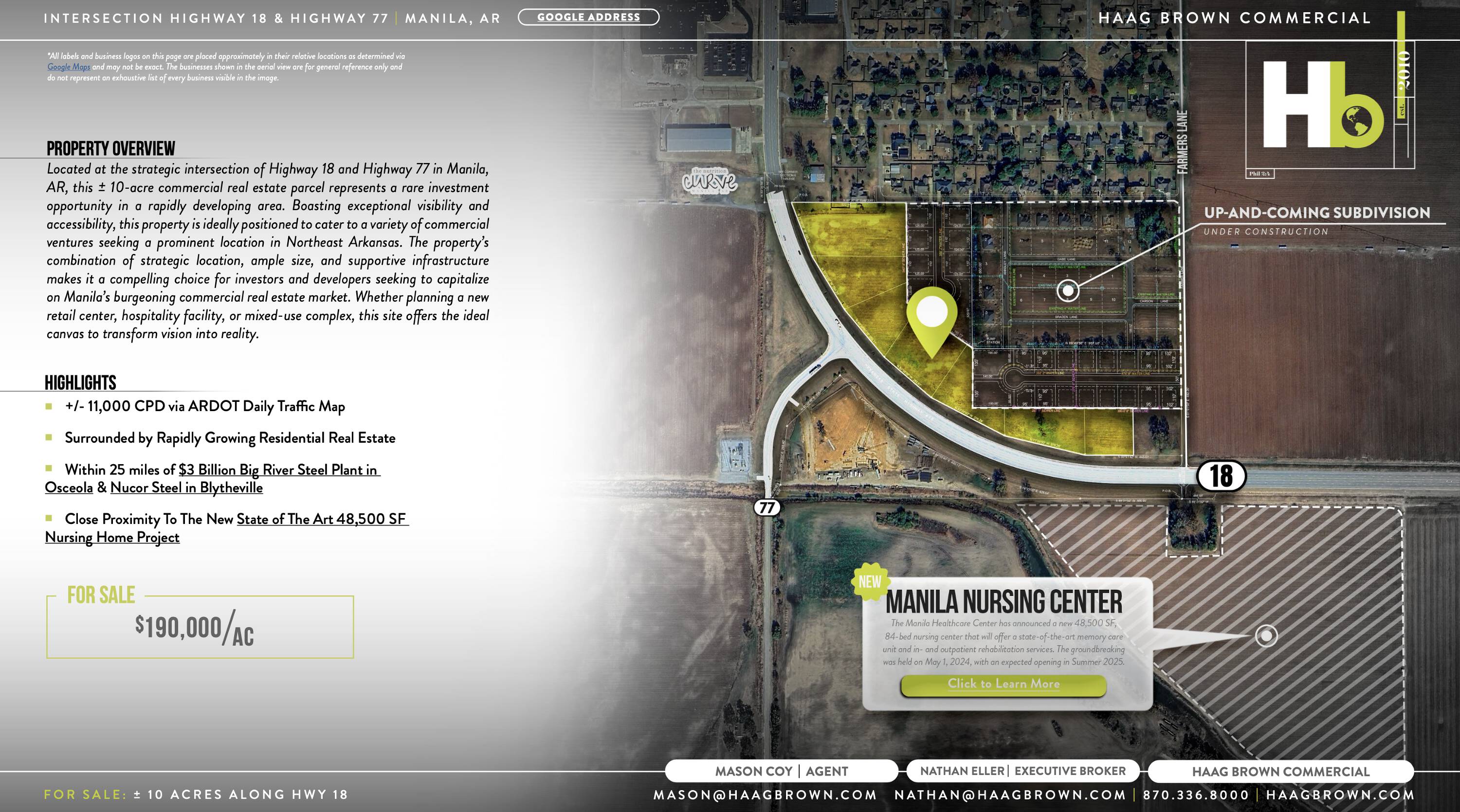 This property features: Strategic location at the intersection of Highway 18 and Highway 77.; 10‑acre commercial real estate parcel.; Exceptional visibility and accessibility.