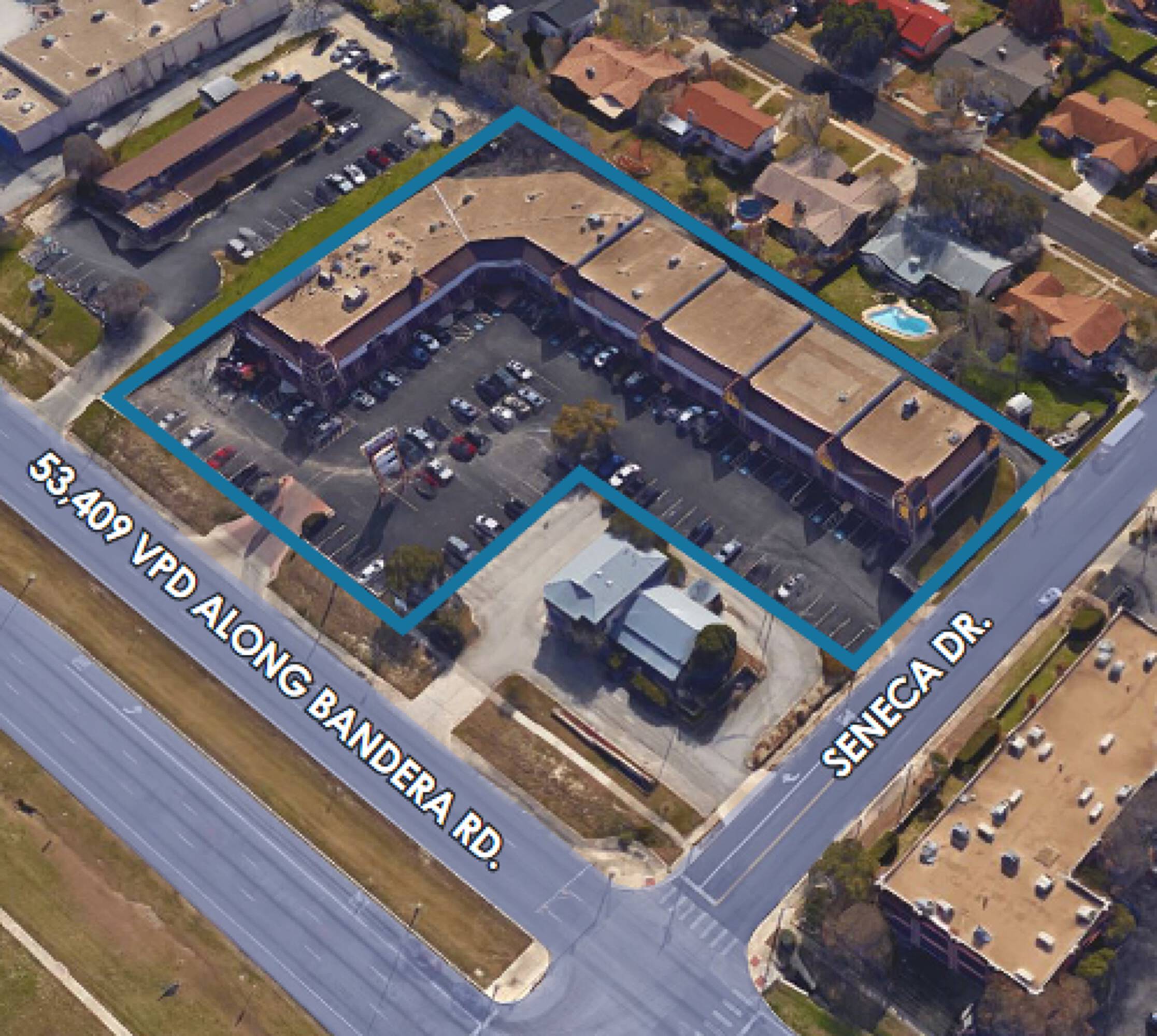 This property features: Prime location at the corner of Bandera Road and Seneca Drive, offering high visibility.; Located in Leon Valley, an area experiencing dynamic growth.; Anchored by Wing Daddy's.