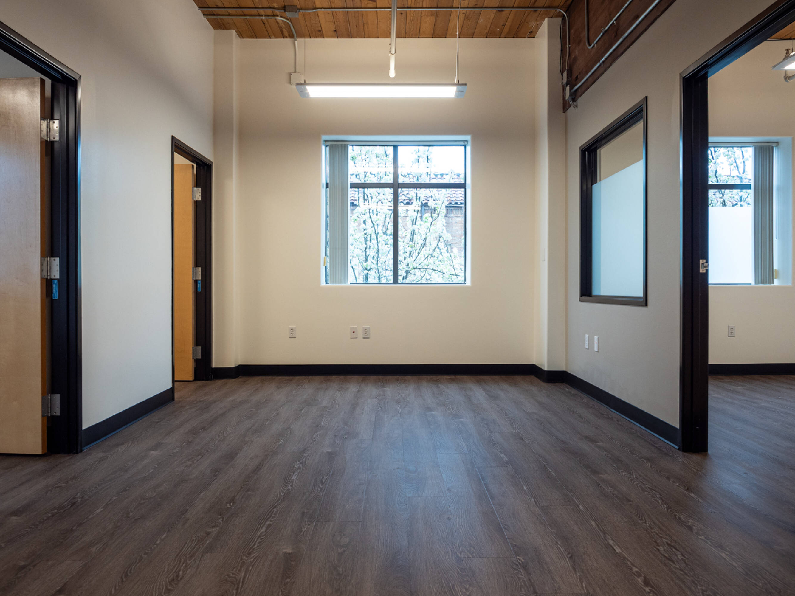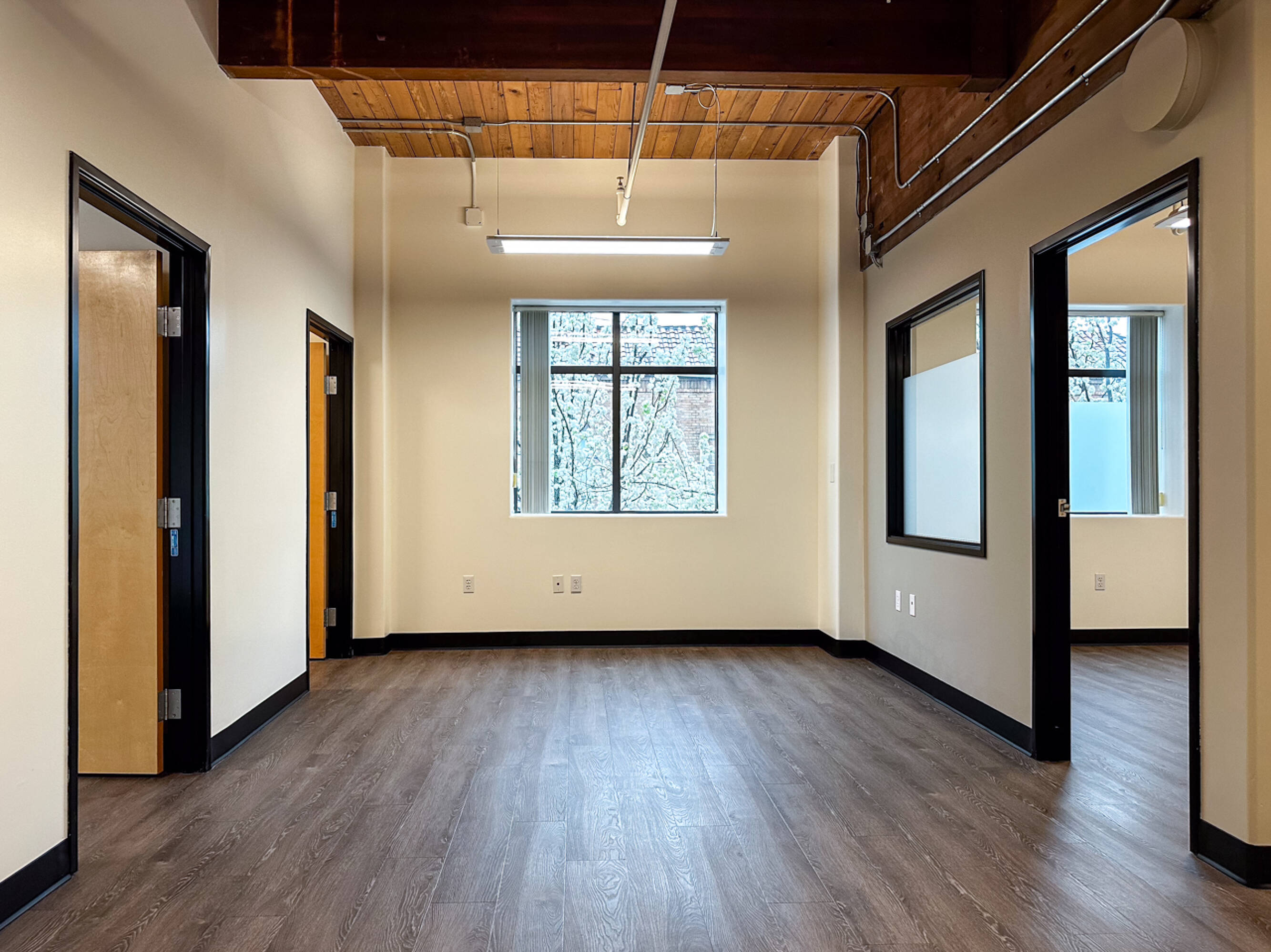 Experience a unique and work environment, this private office features a vaulted...