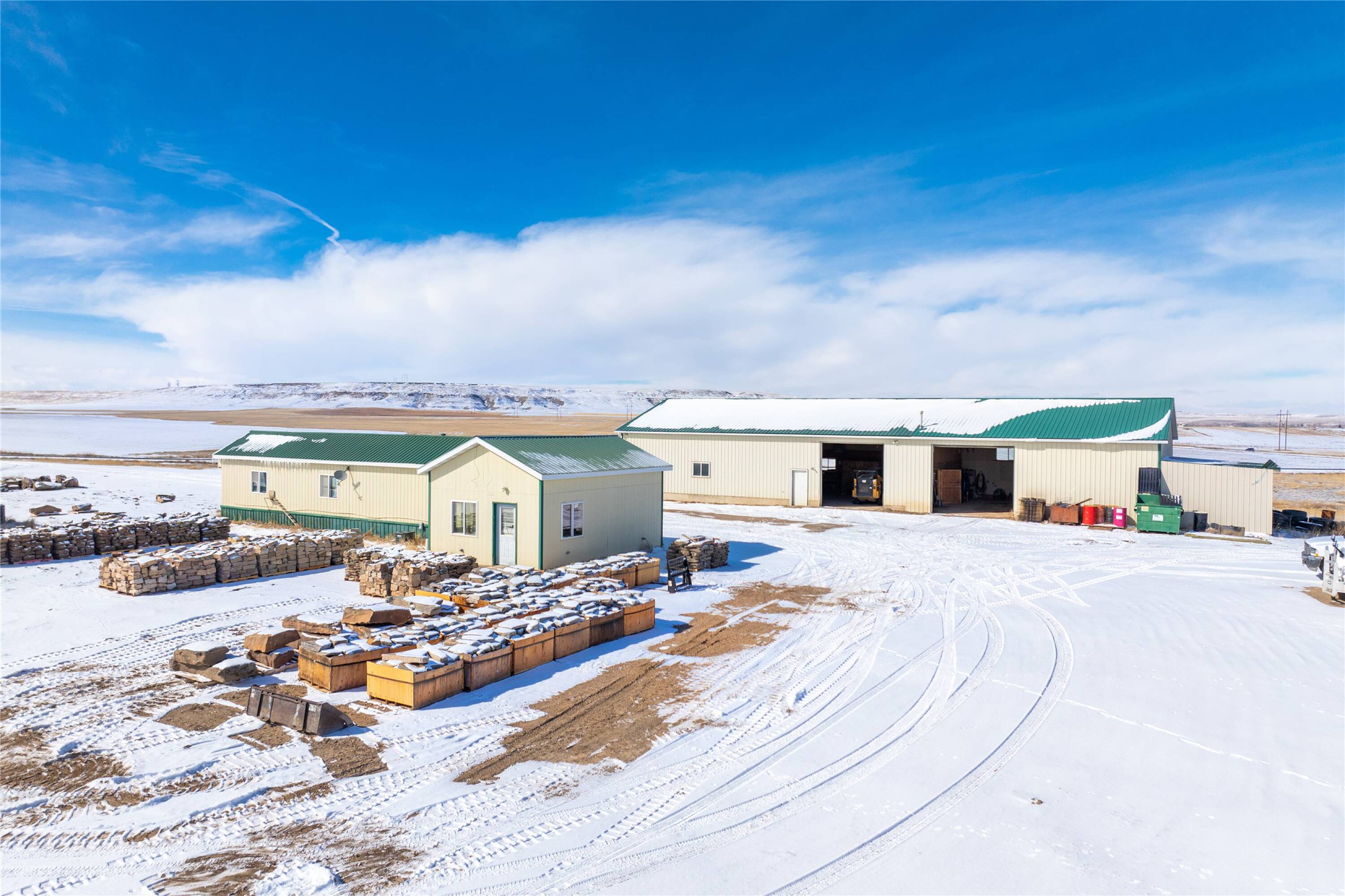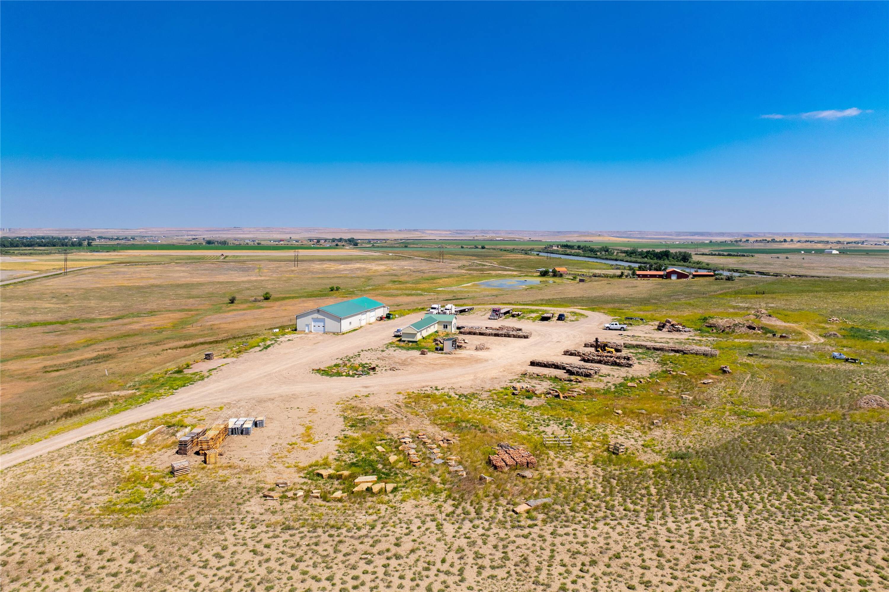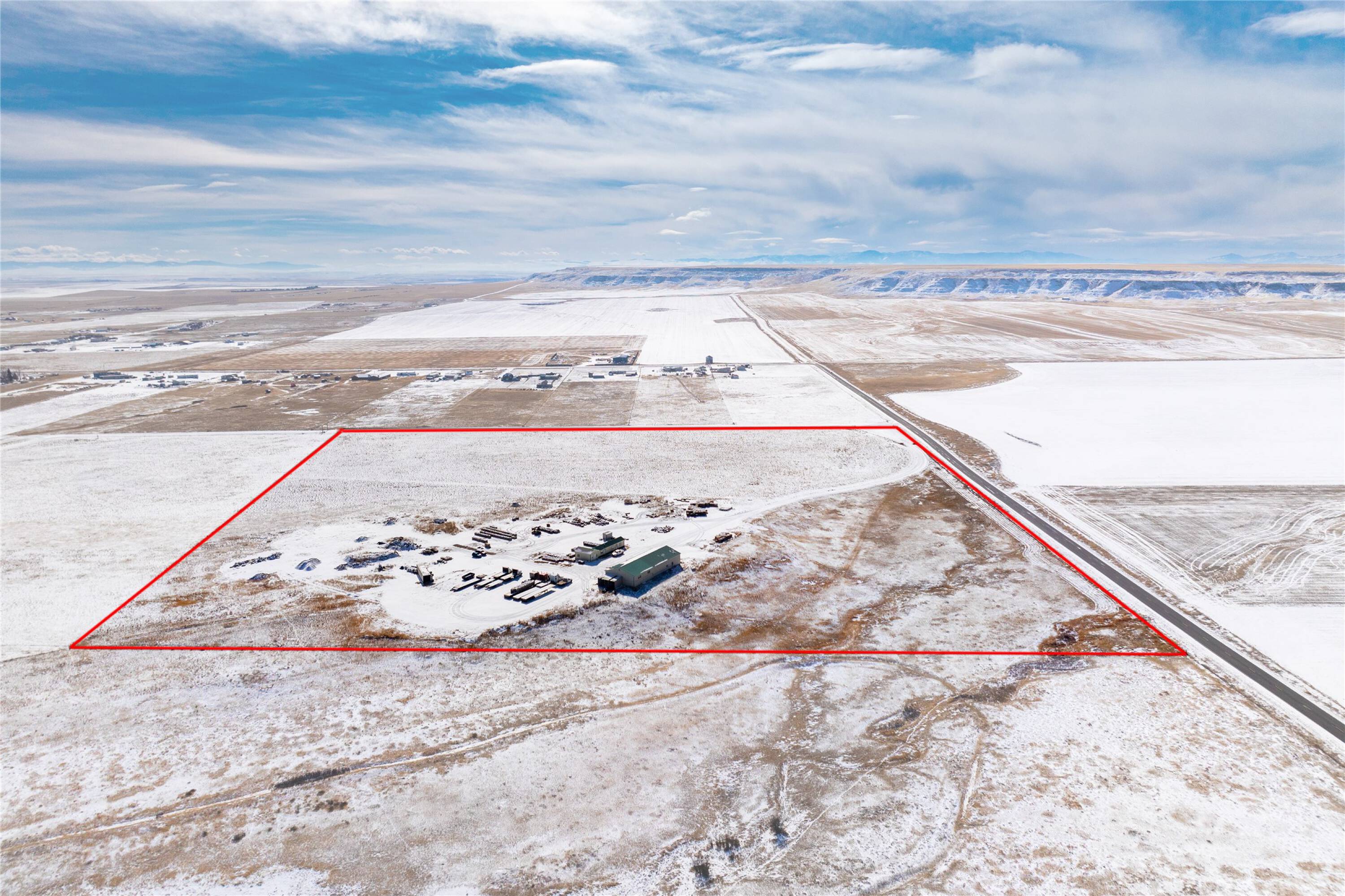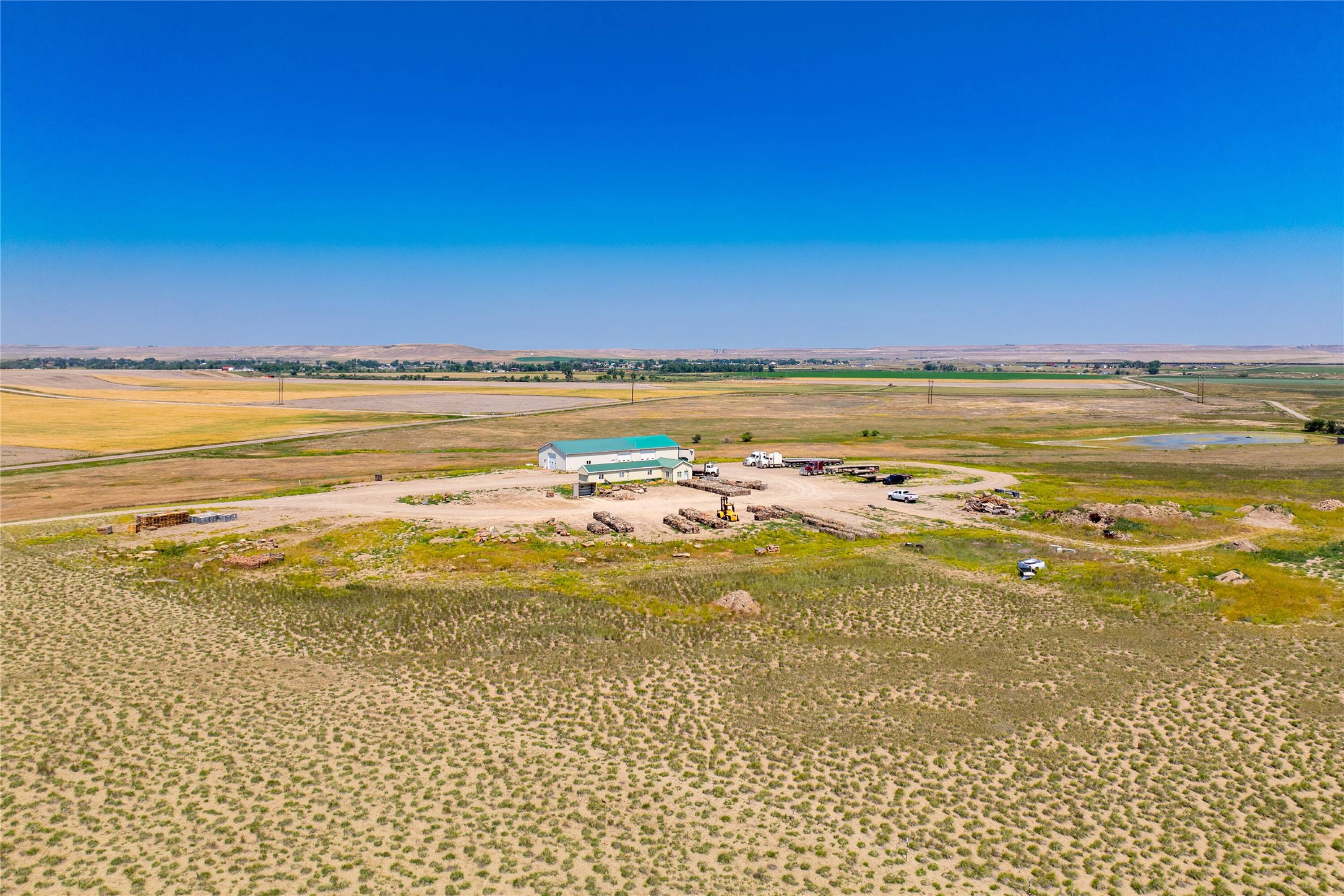 38 acres with shop and admin building for sale.