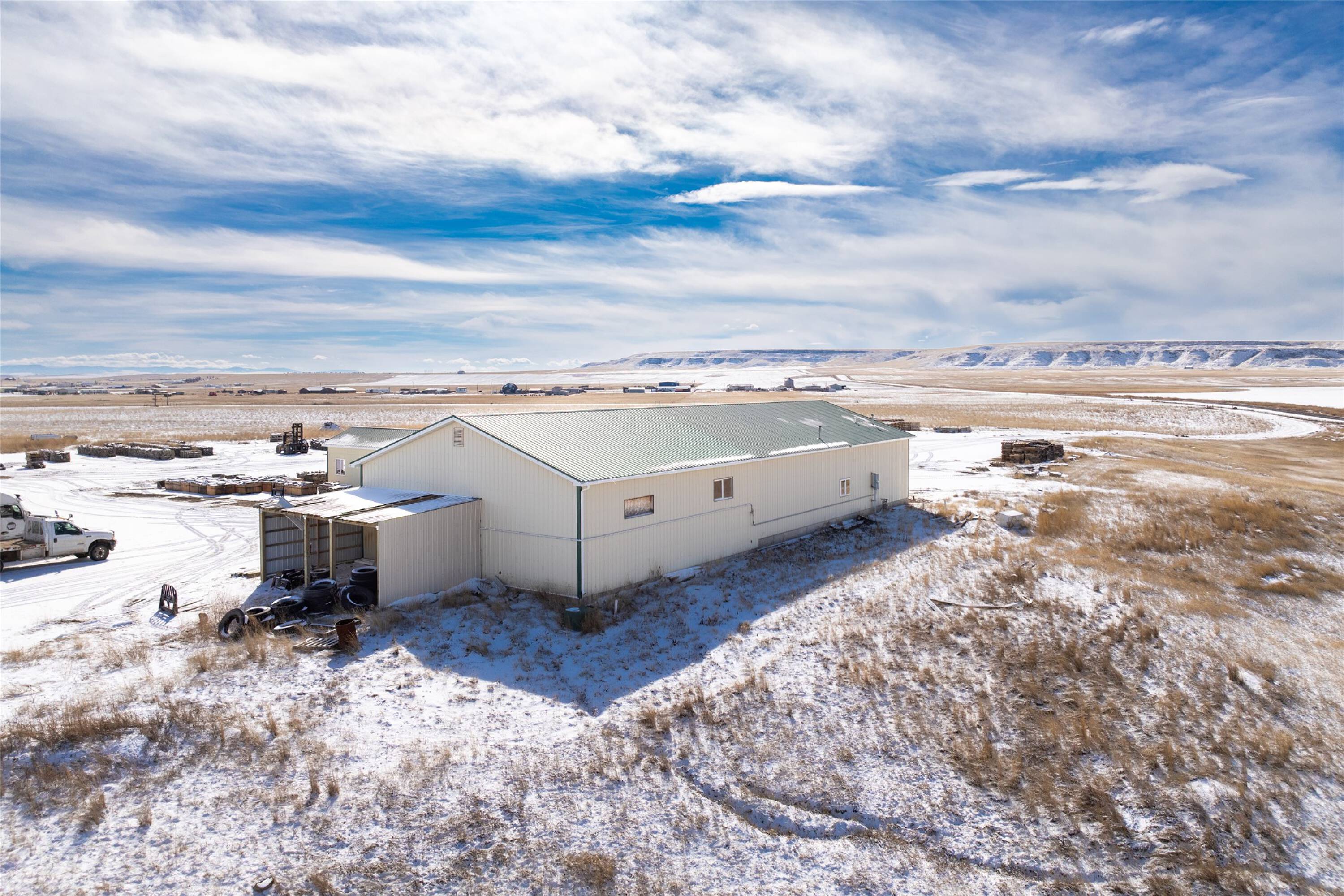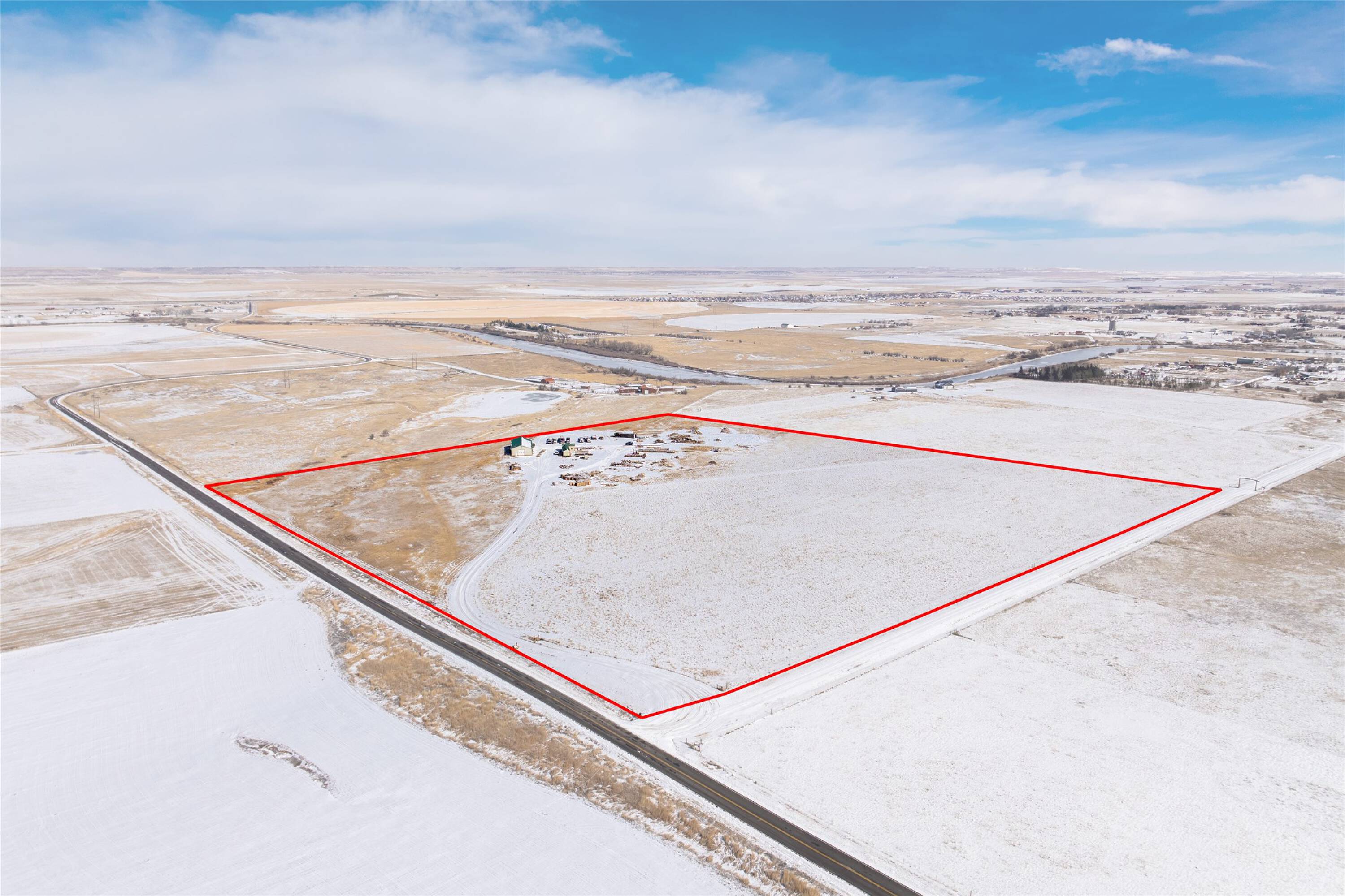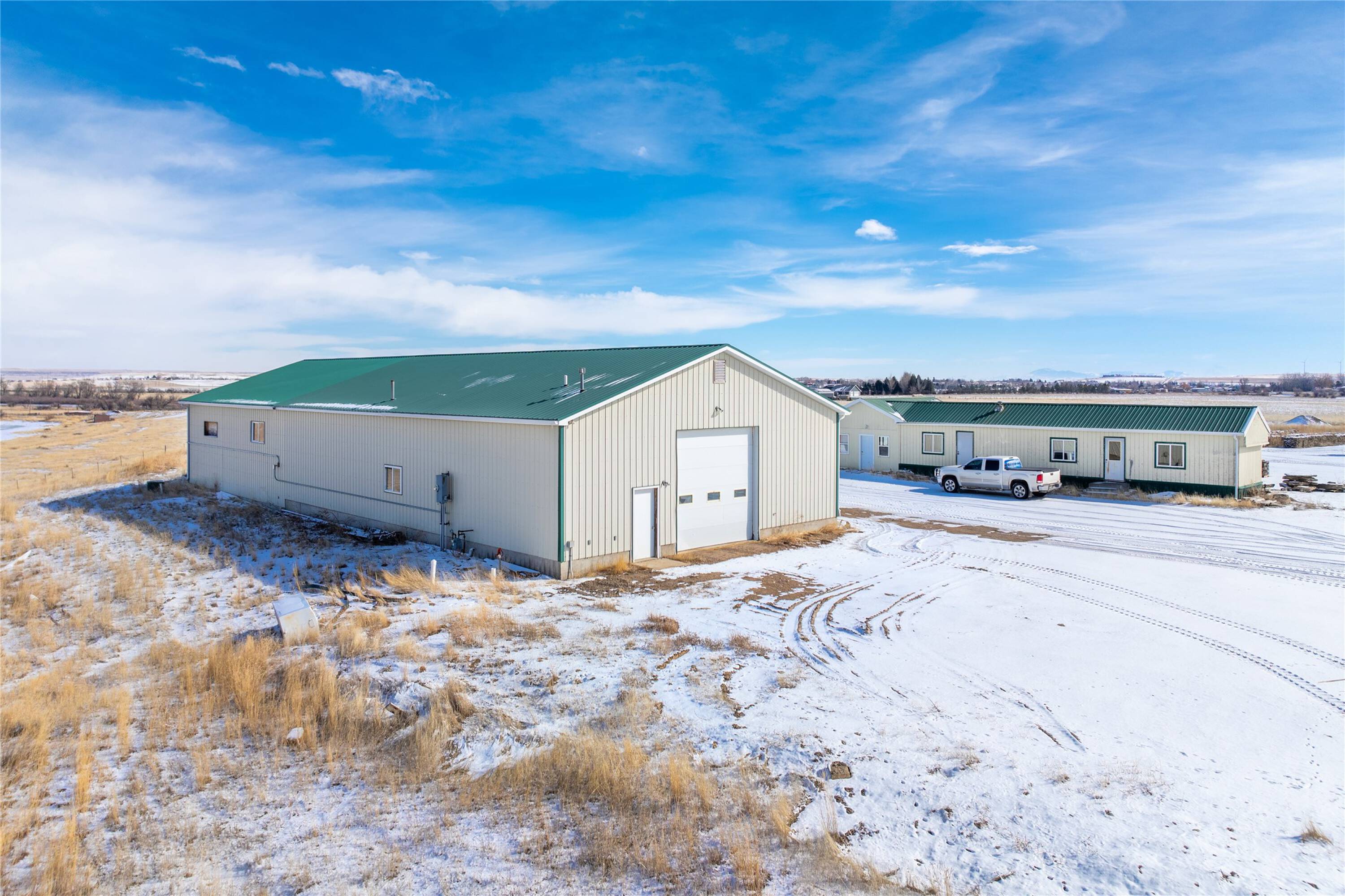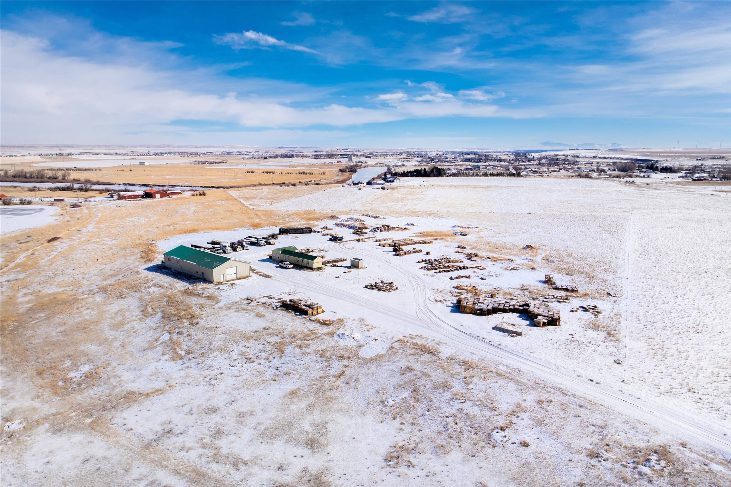 38 acres with shop and admin building for sale.