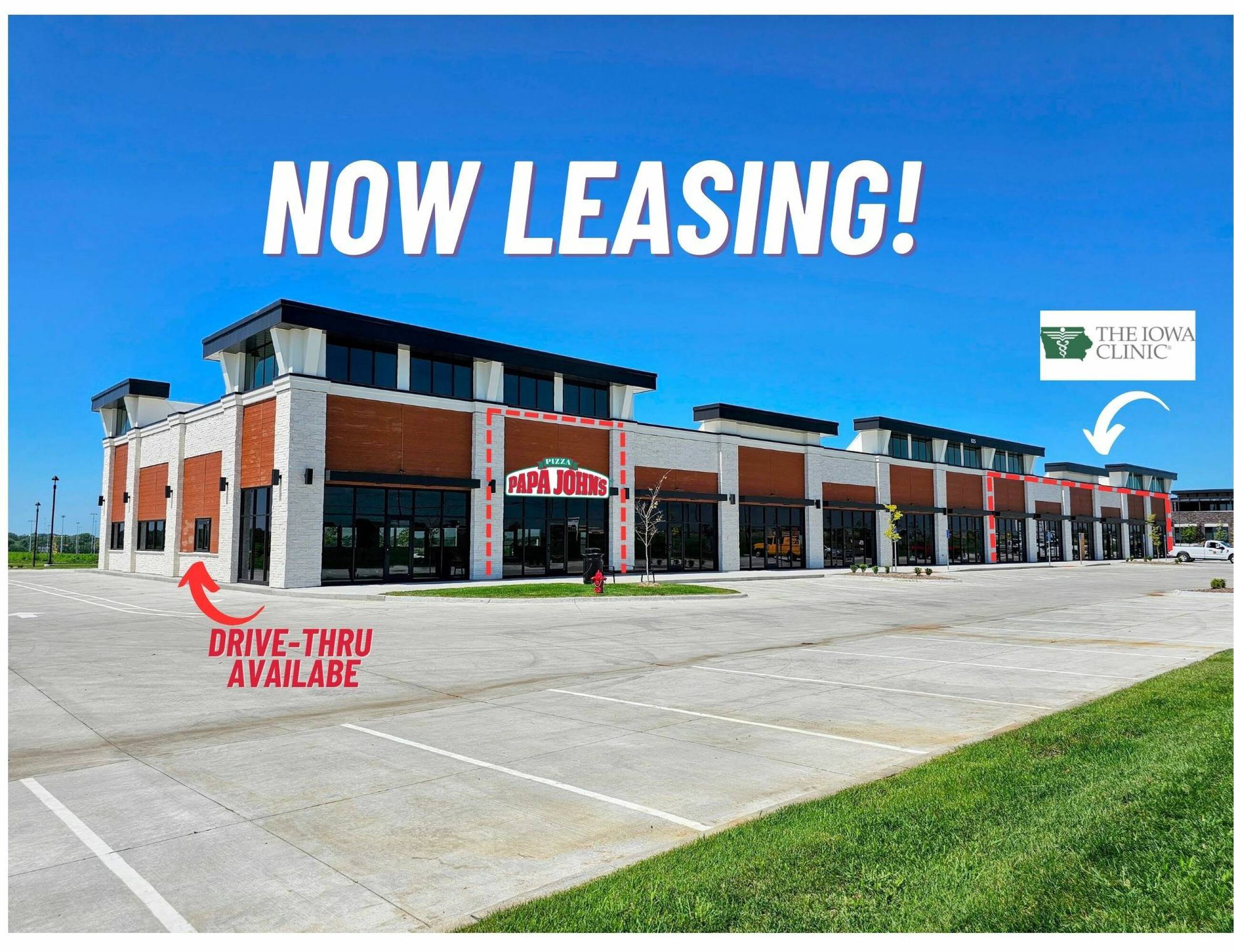 Hope Plaza II is a newly constructed retail strip center situated in Grimes, Iowa, conveniently located off heavily trafficked HWY 141 and just east of Grimes Plex. Grimes Plex is a 50-acre synthetic turf multisport complex located in Hope District, estimated to attract 1.5 million visitors per year. Hope District, currently under construction, will be a 200-acre multi-use entertainment district that will include retail, restaurants, and hotels. The strip center is available for lease or sale. Current tenants include Caribou Coffee, Papa Johns, Iris & Ray's Eye Attic, and The Iowa Clinic. The property is located just to the west off HWY 141 in Grimes, IA.
