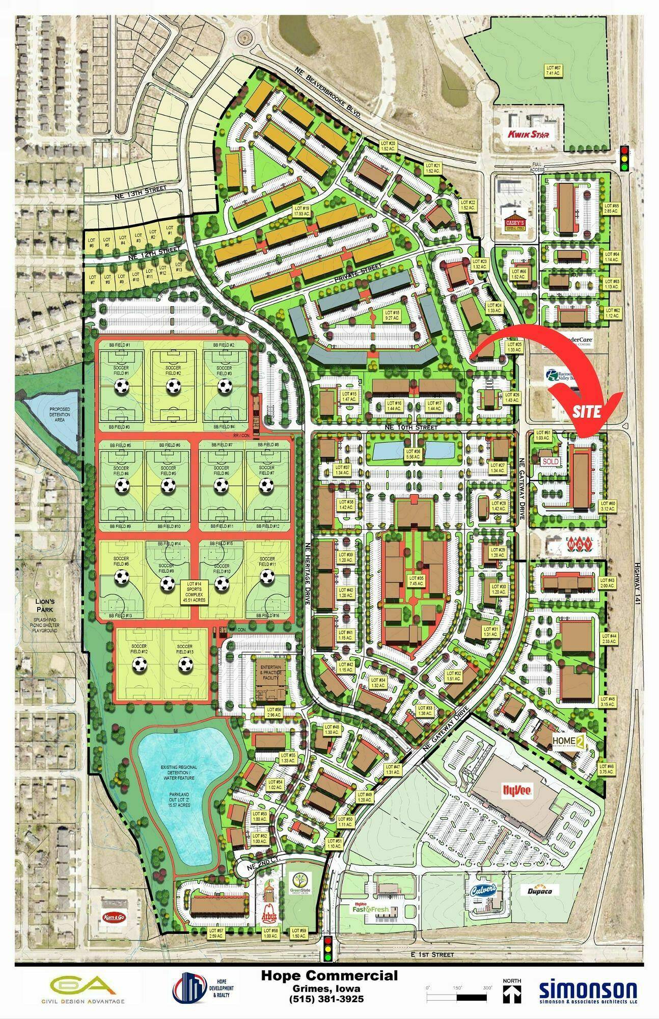 This property features: High‑traffic location off HWY 141; Adjacent to Grimes Plex, a 50‑acre multisport complex with an estimated 1.5 million annual visitors; Part of the Hope District, a 200‑acre multi‑use entertainment district under construction