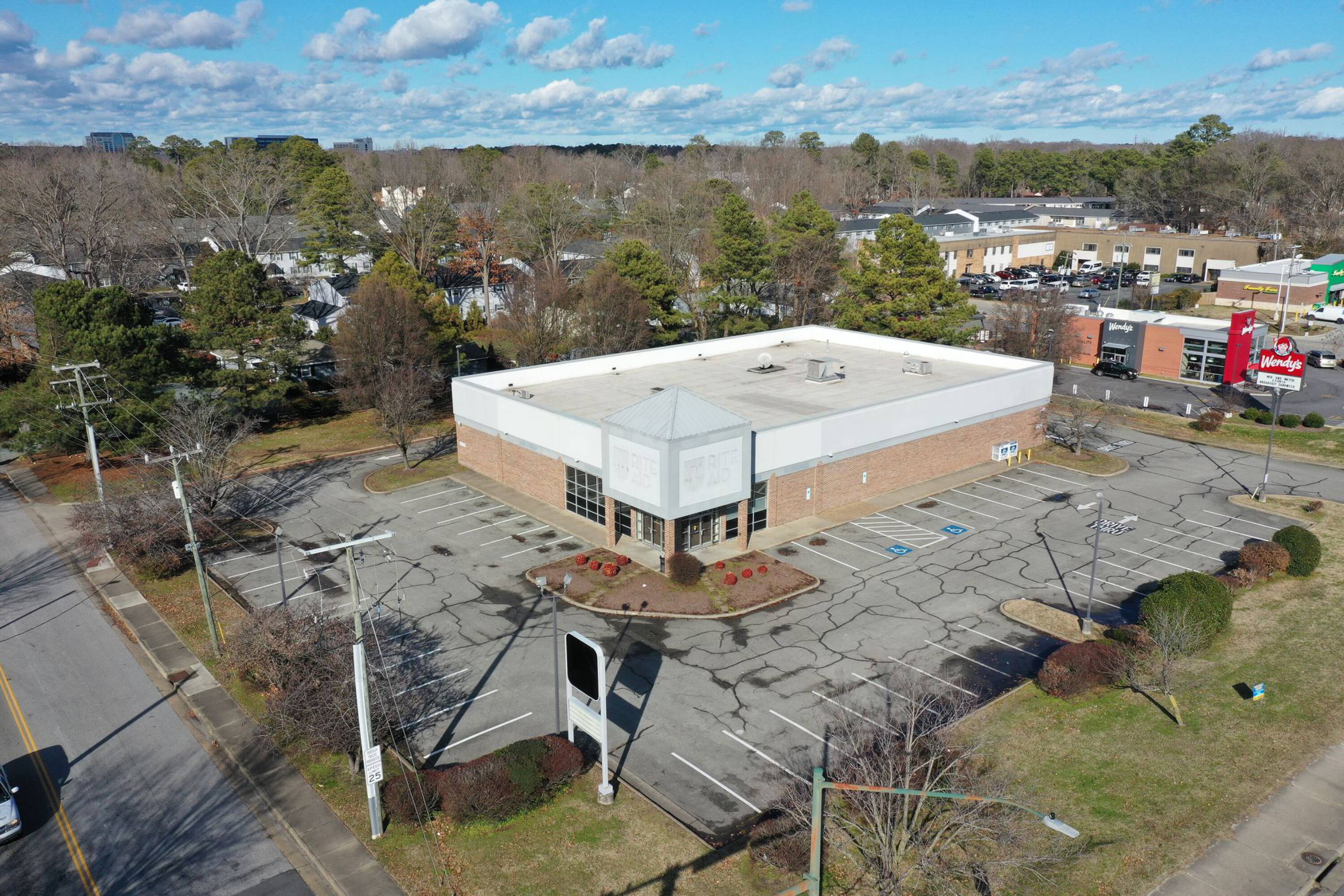 Drug store - Former Rite Aid building for lease at signalized intersection.
