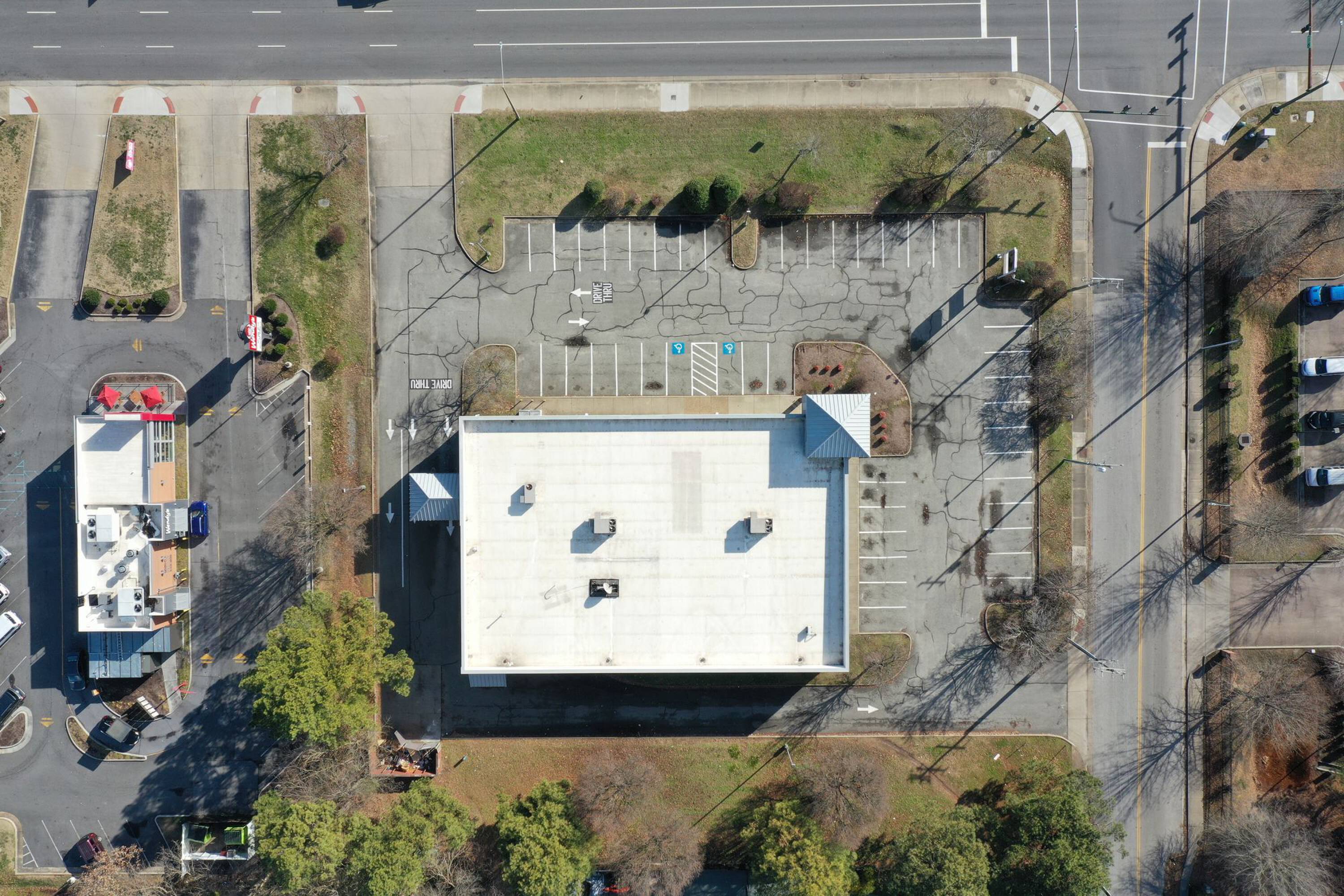 Former Rite Aid building for lease at signalized intersection.