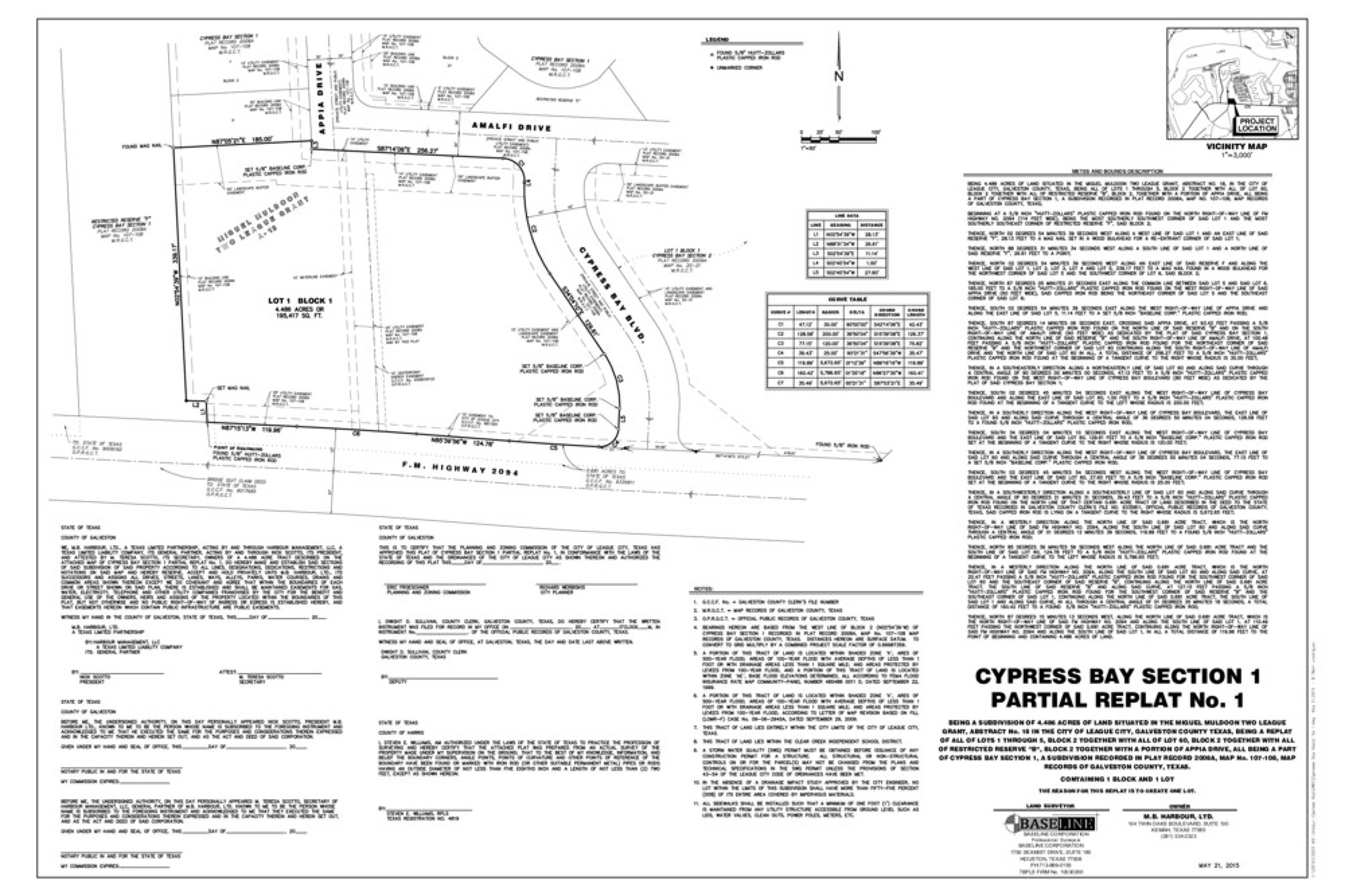This 4.486-acre pad site is located at the entrance of Cypress Bay Subdivision, an upscale residential development containing 54 lots with homes starting in the mid $600s. The property is zoned General Commercial, making it ideal for a restaurant or bar, office, or hotel development. It is in close proximity to the Kemah Boardwalk, more than 500,000 square feet of office space, the South Shore Harbour Hotel, Conference Center, Marina and Golf Course, as well as numerous restaurants and retail shops.