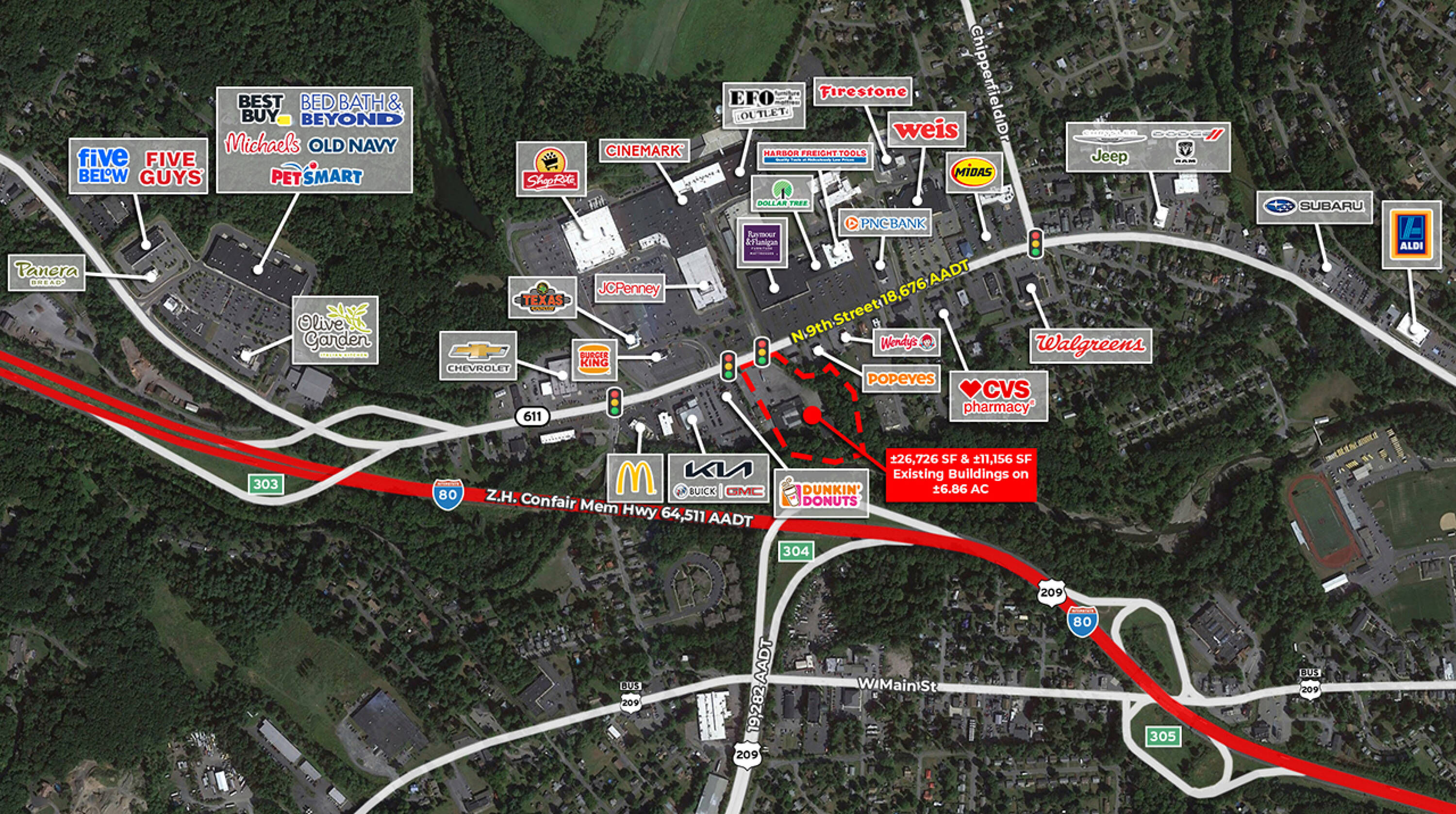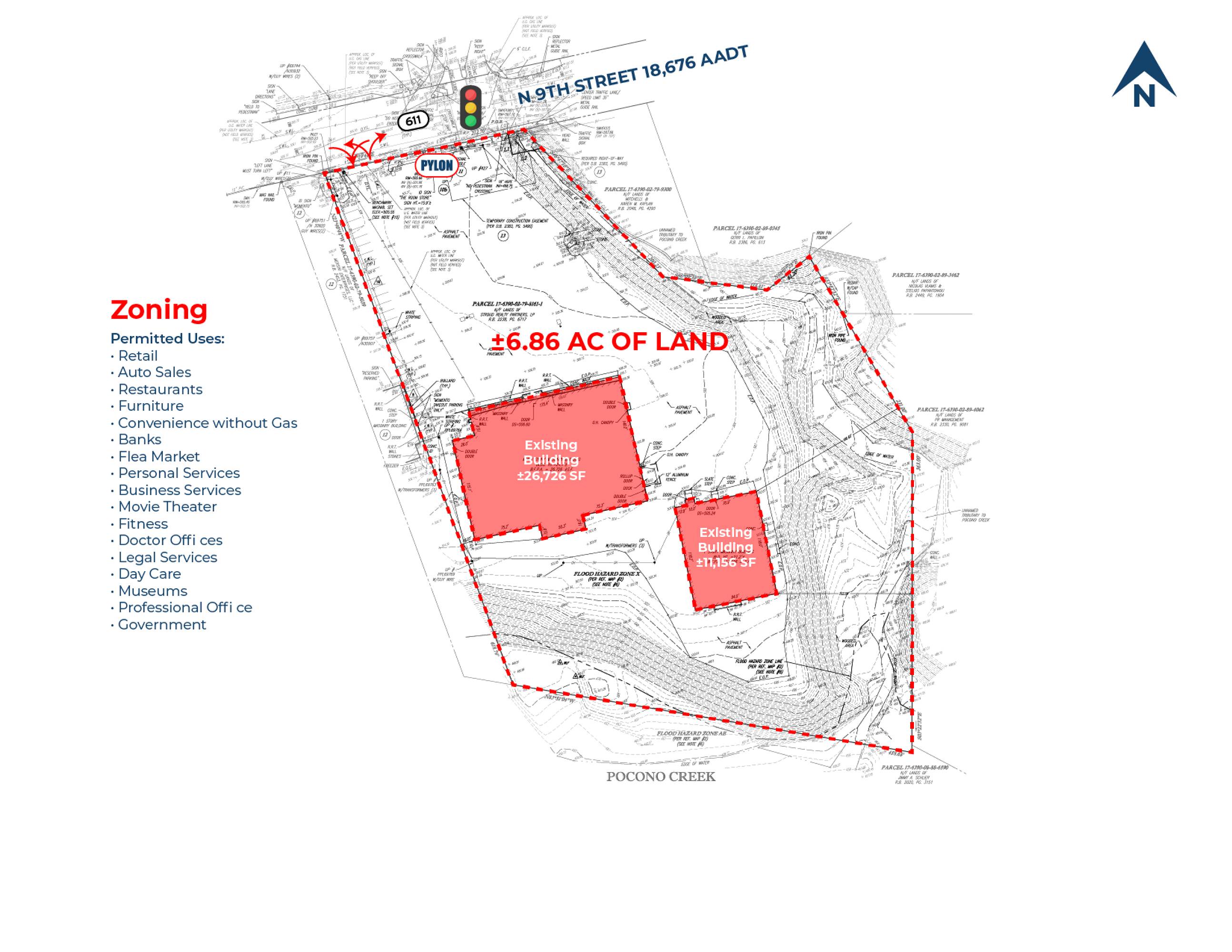 Retail buildings on 6.86 acres of land for sale.