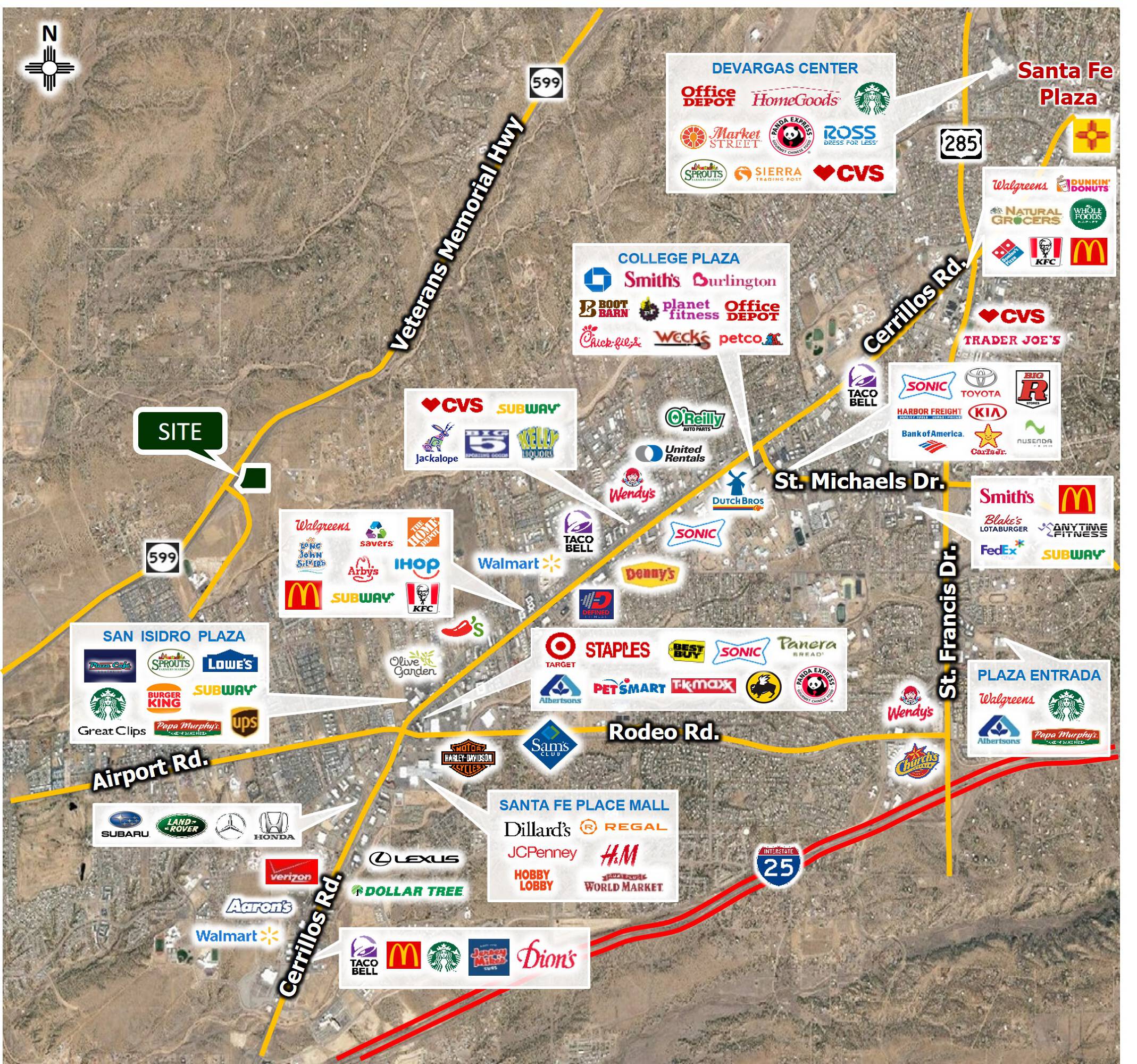 Commercial land available for ground lease in Santa Fe.