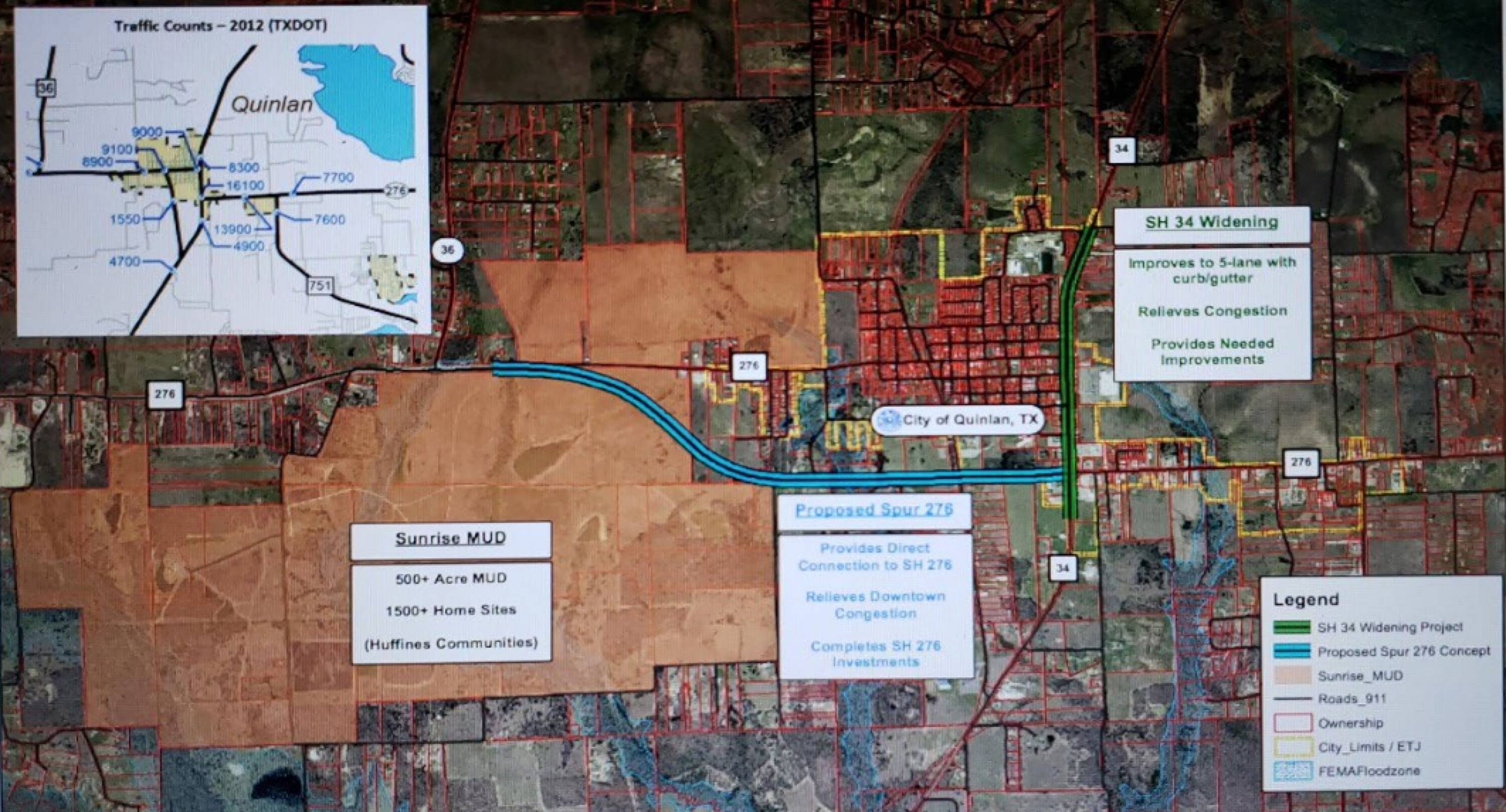 Highly visible commercial land with development potential in Quinlan, TX.