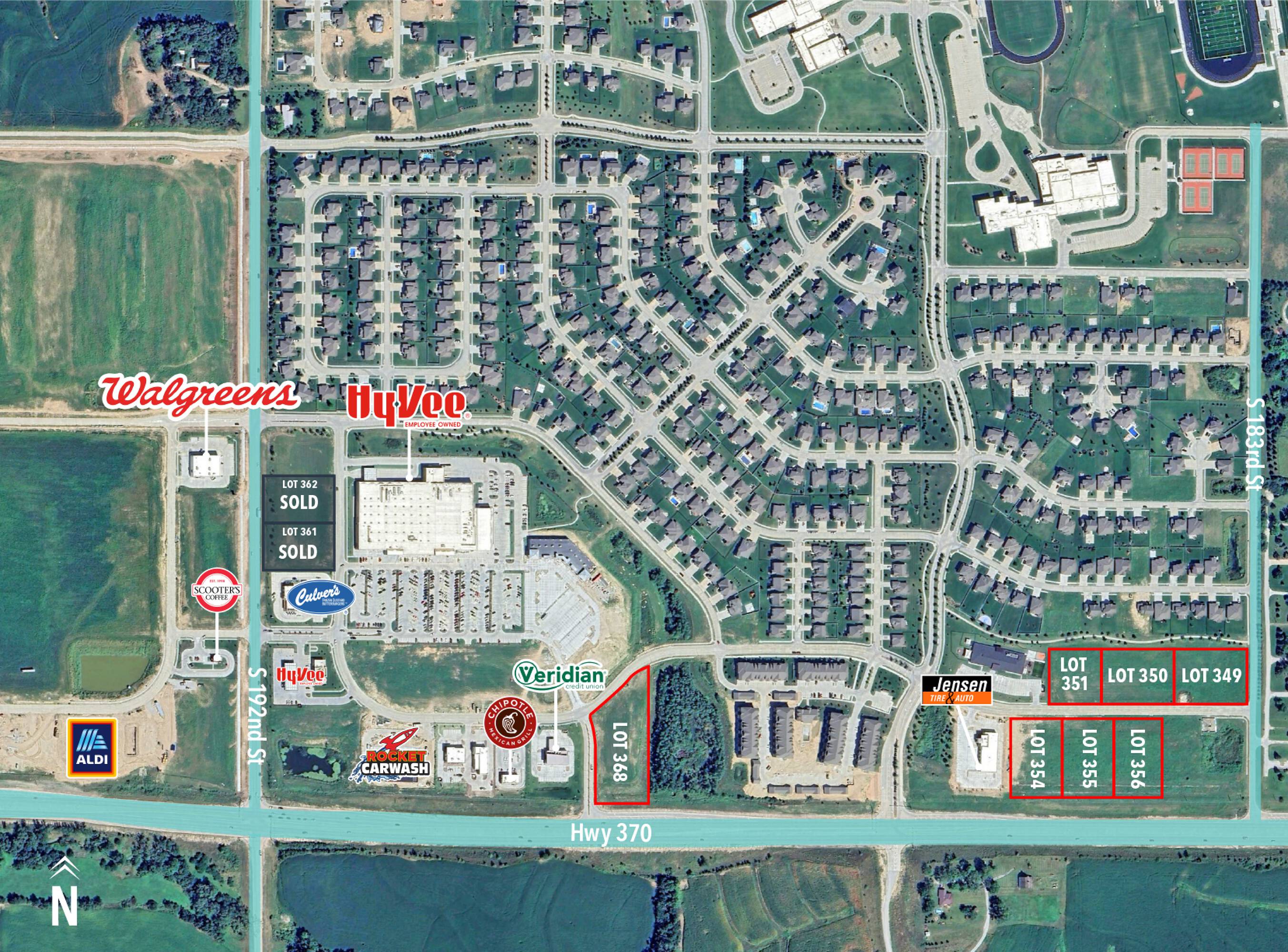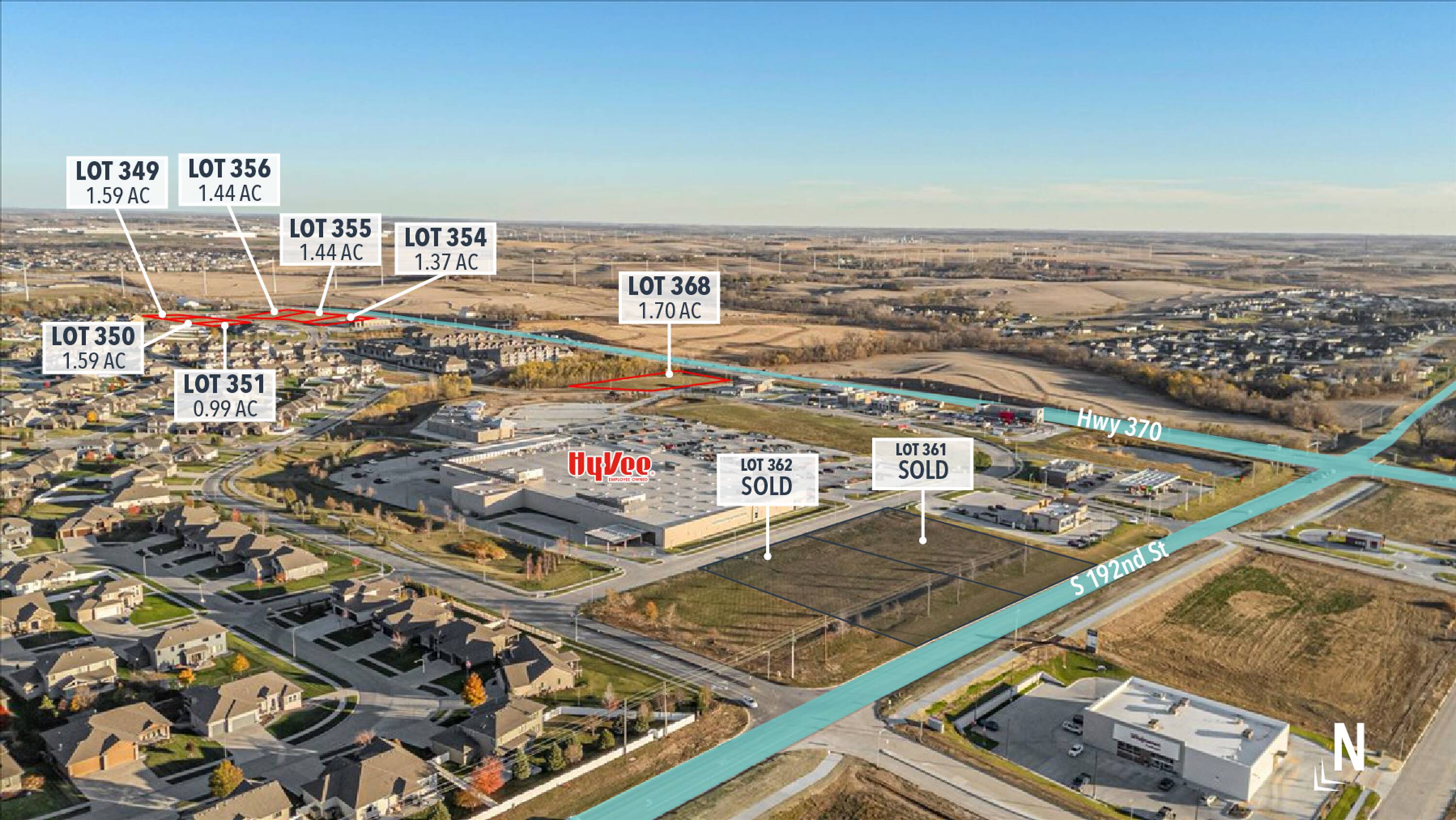 This property features: Prime location near the new Hy‑Vee on 192nd and Hwy 370.; High visibility and significant traffic due to Hy‑Vee.; Ideal for retail, dining, or other commercial uses.