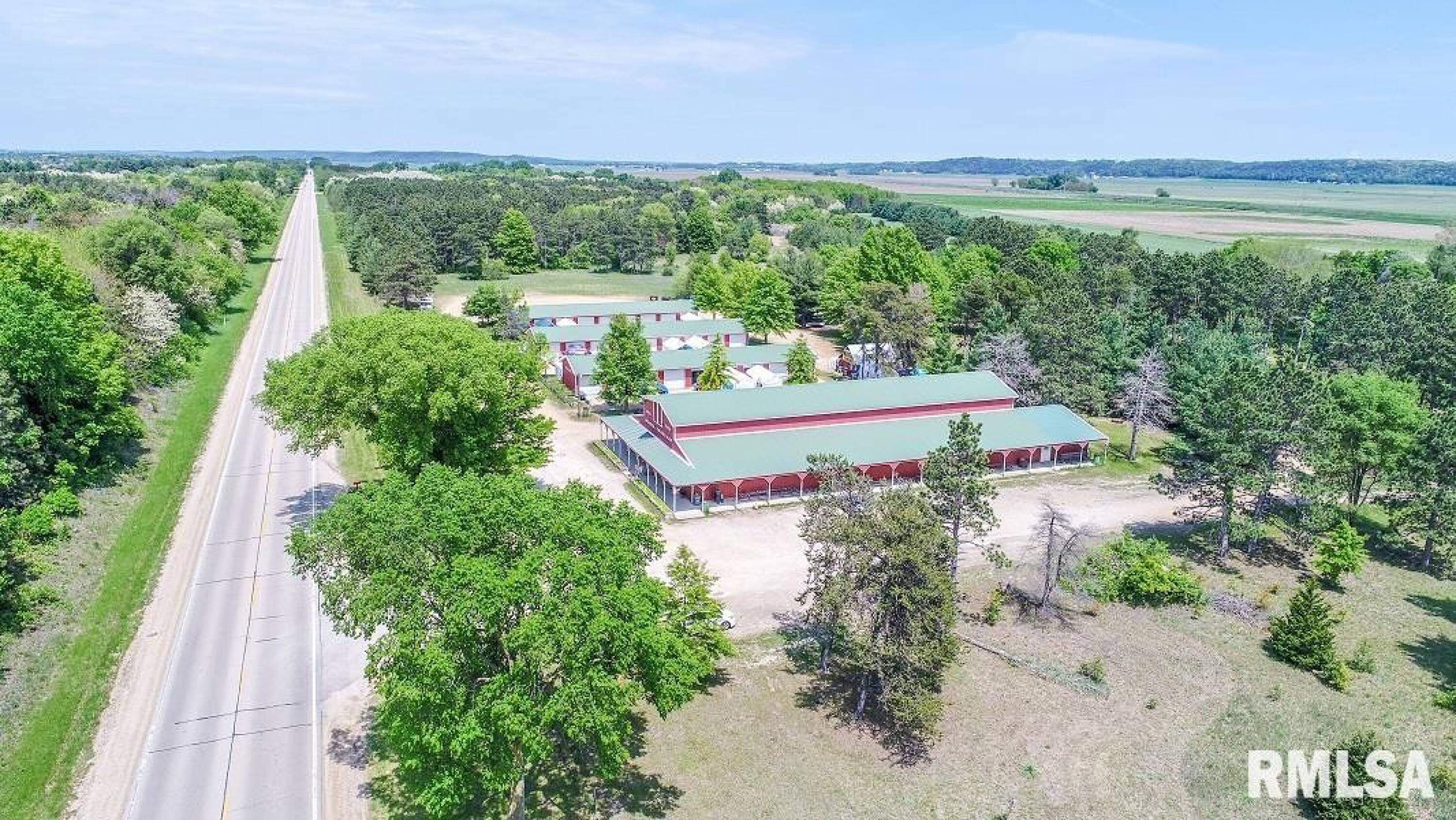 Commercial property with buildings and acreage on Great River Road.