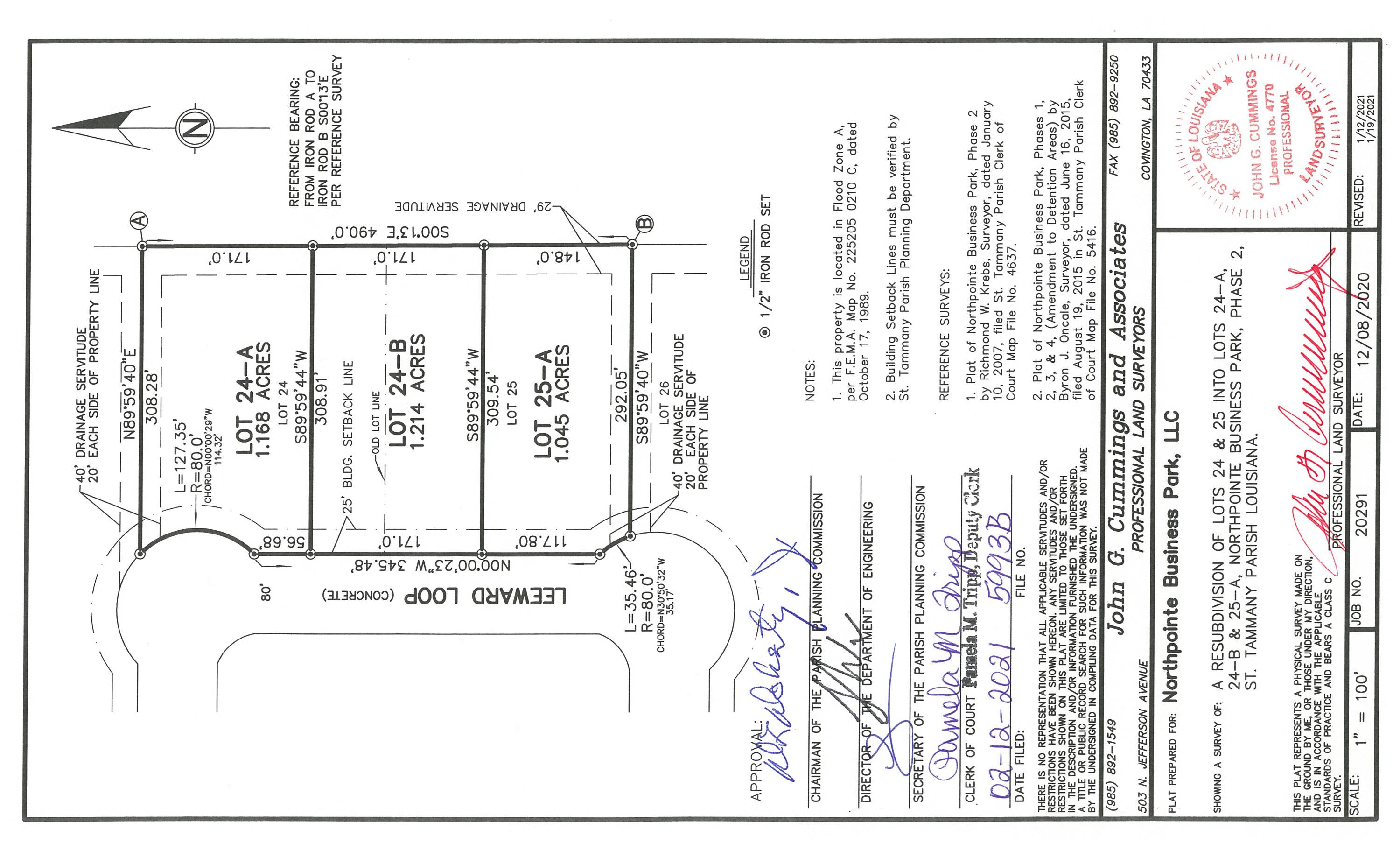 Land parcels available in established business park near I-12.