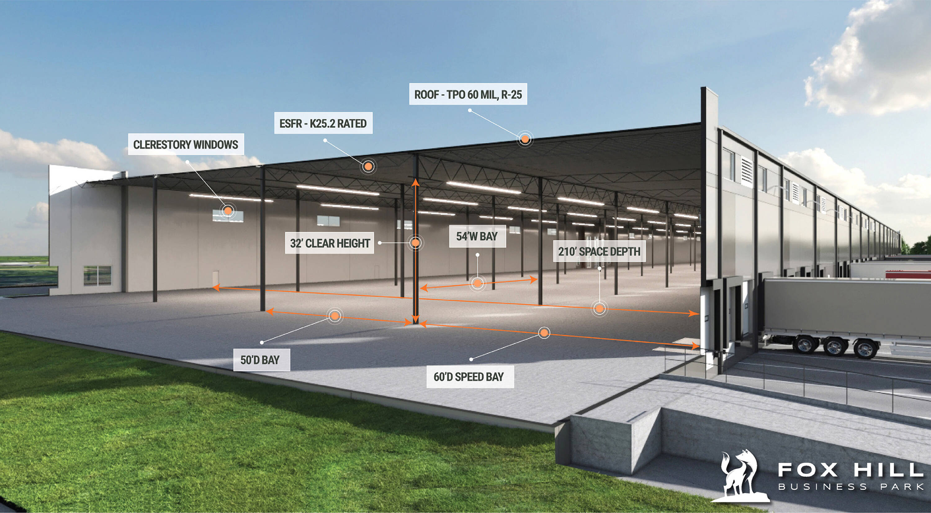Industrial space suitable for manufacturing, distribution, or warehousing.