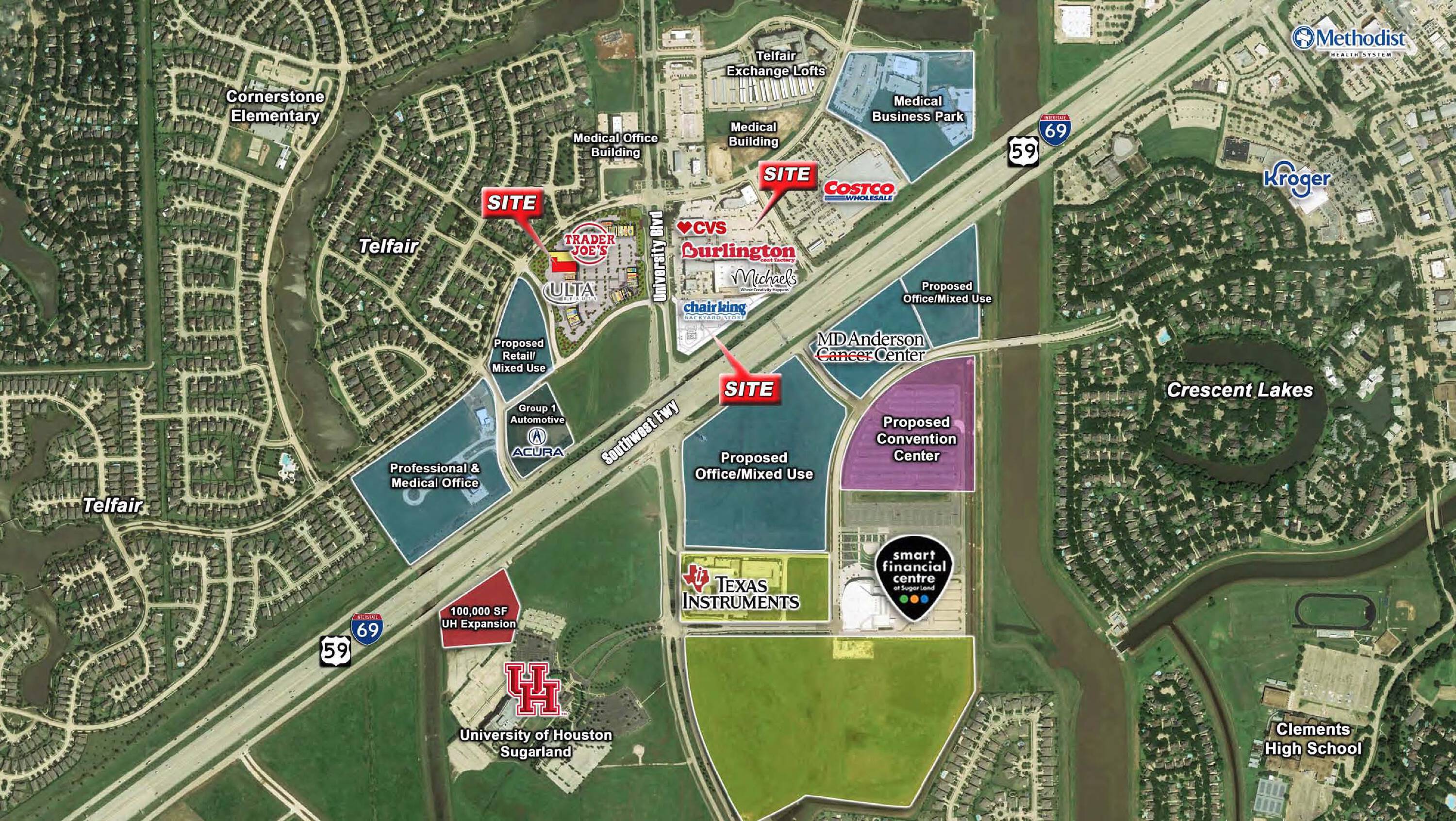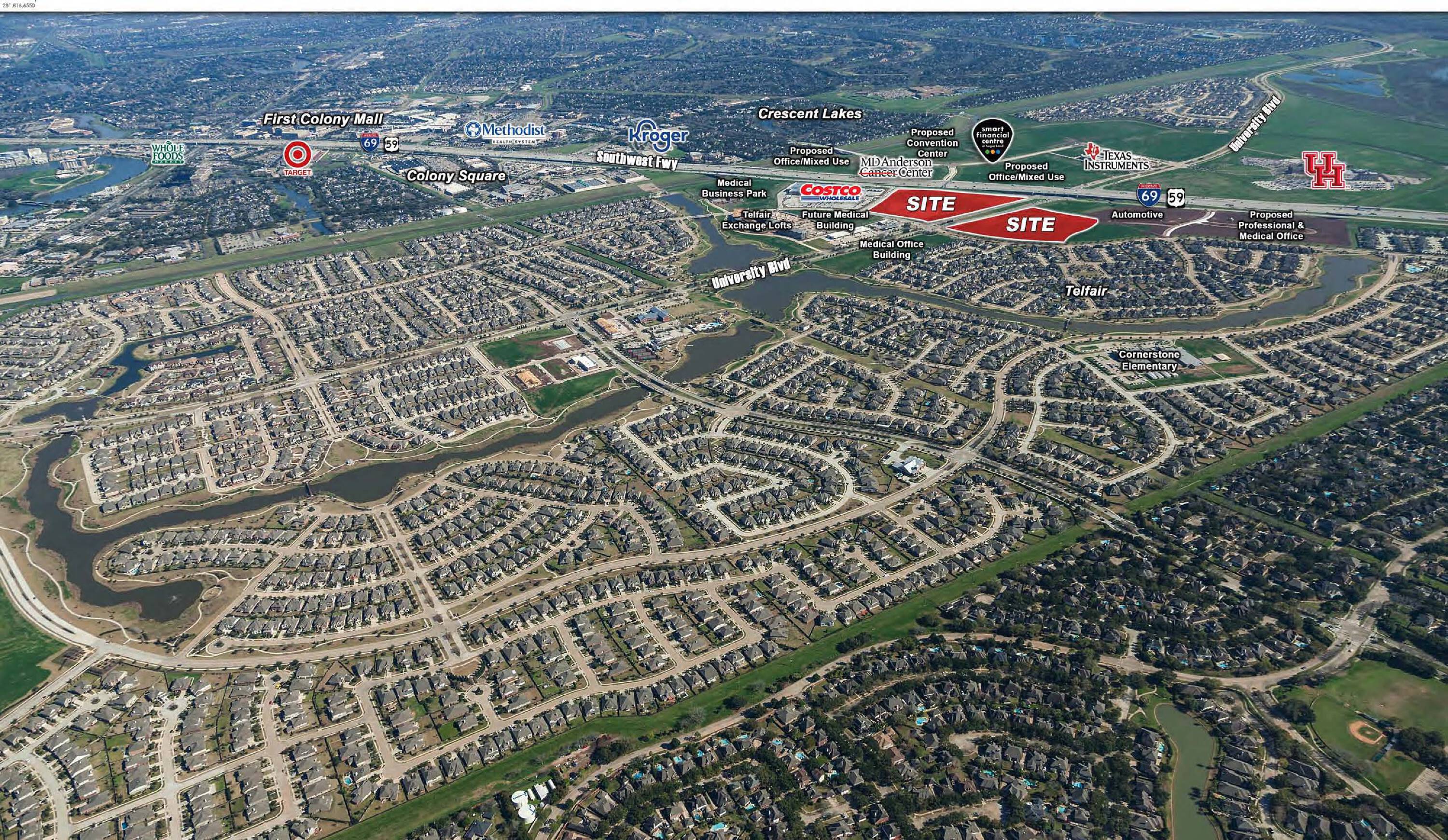 Commercial land available for lease in Sugar Land, Texas.