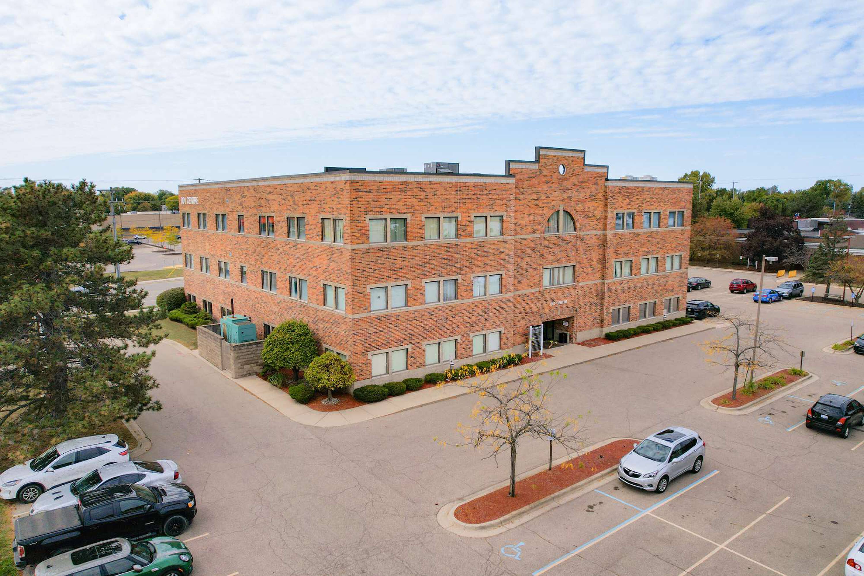 Three-story office building in Lansing, close to downtown.